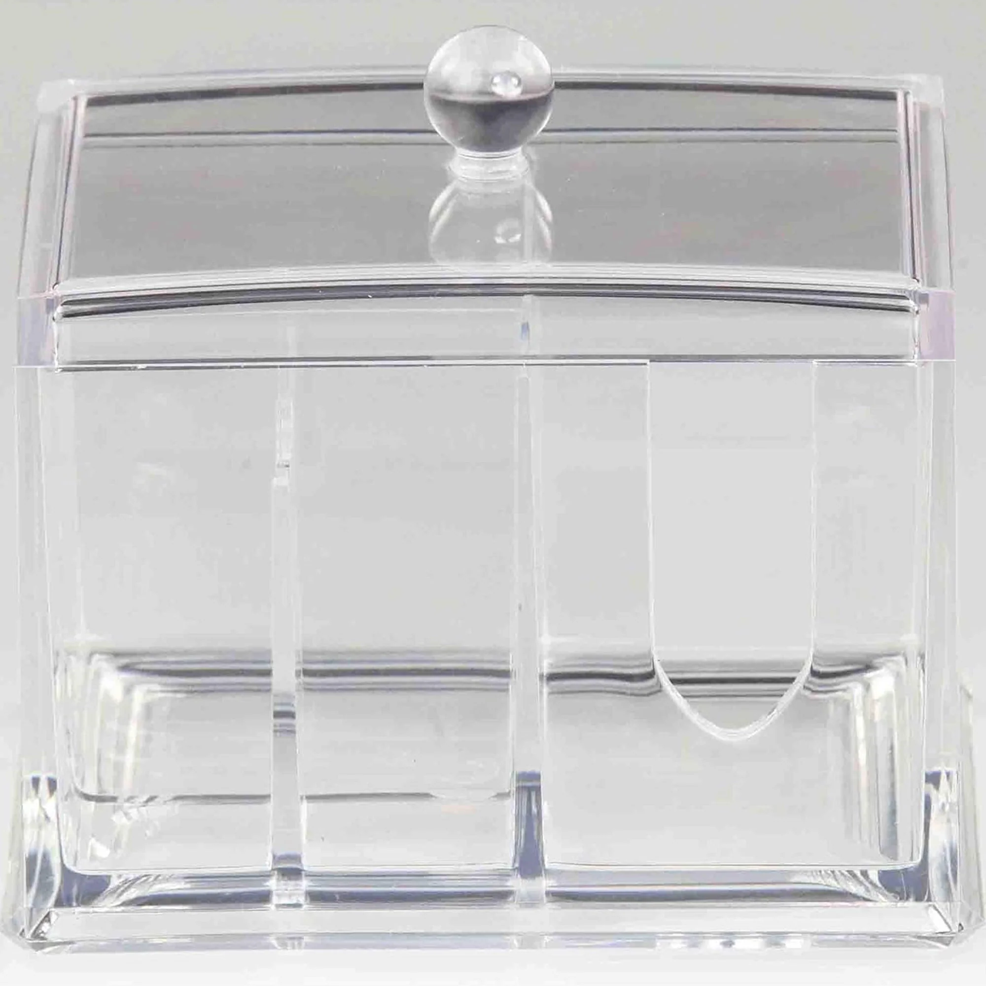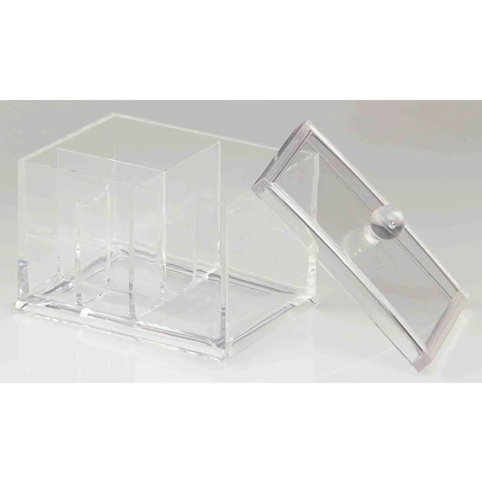 With its innovative one-piece lid design, this holder offers convenience and functionality, keeping your cotton balls, cotton swabs, and cosmetic pads neatly organized and within reach. Its transparent construction adds a modern touch to your space while ensuring easy identification of contents.