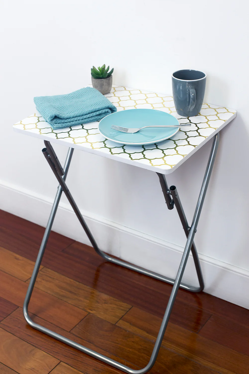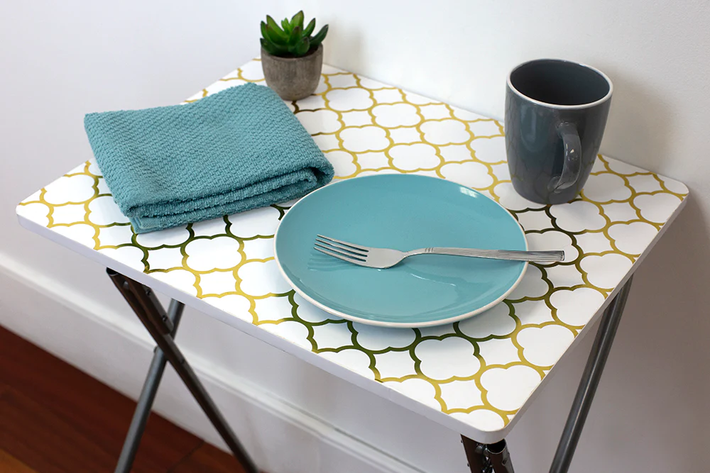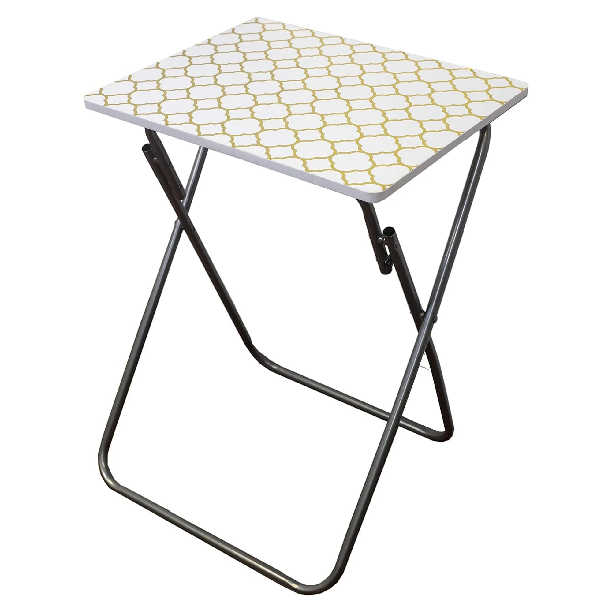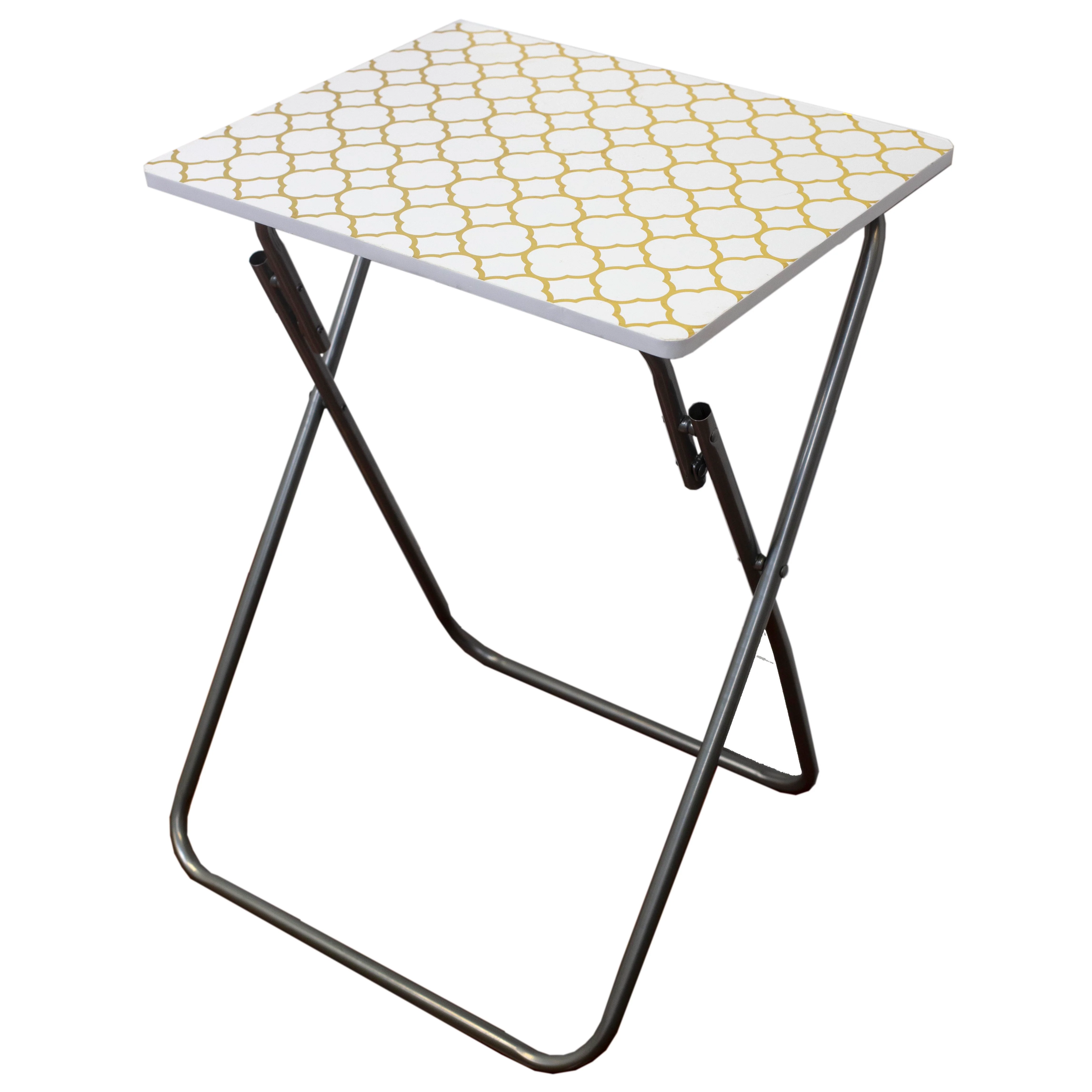 Elevate your home decor with the Home Basics Multi-Purpose Folding Table in Metallic Lattice Gold. Experience convenience, durability, and elegance in one stylish piece.