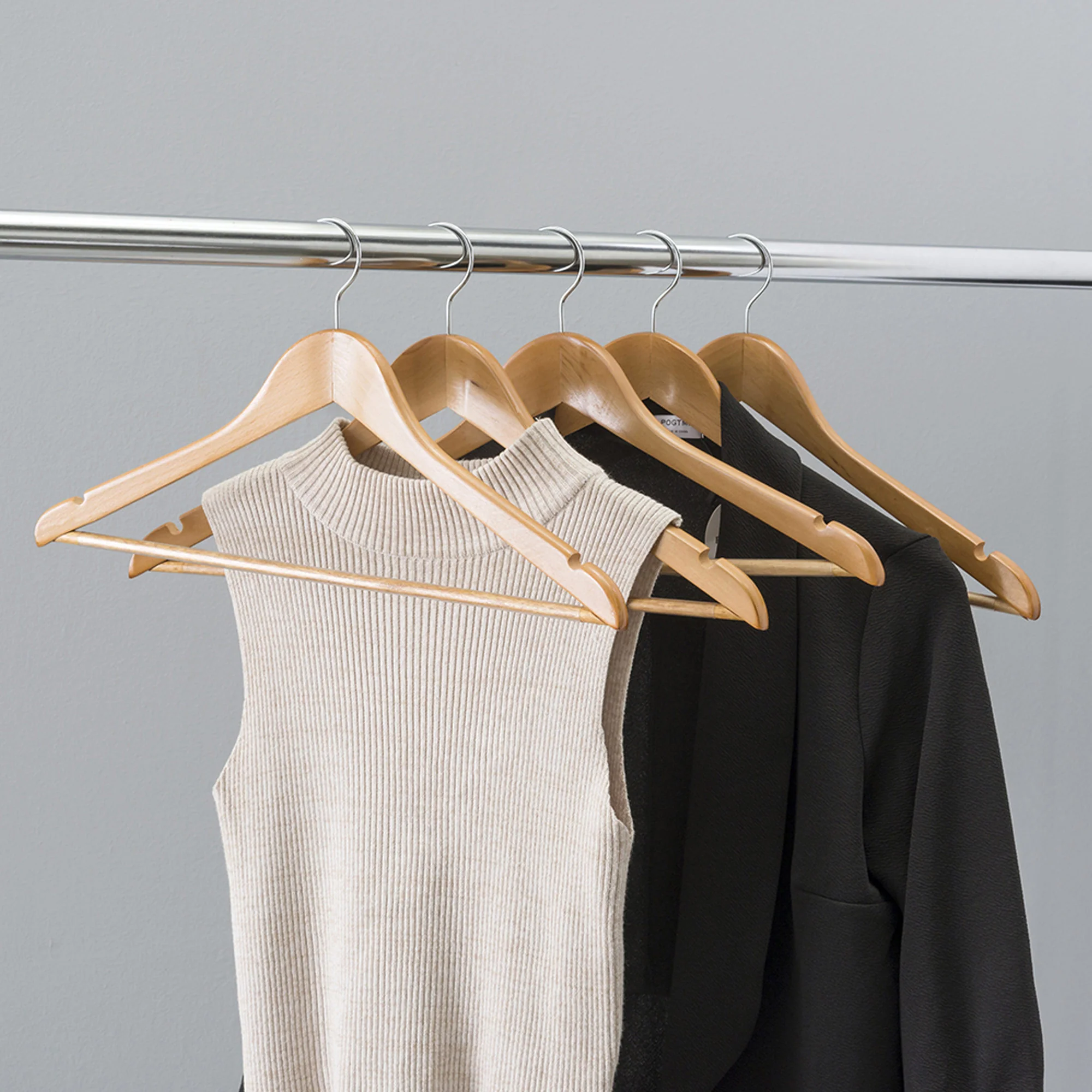 - Durable Construction: Made of solid wood, these hangers boast a smooth finish with no rough spots or splintering. They preserve the quality of your wardrobe while adding a touch of sophistication to your closet.