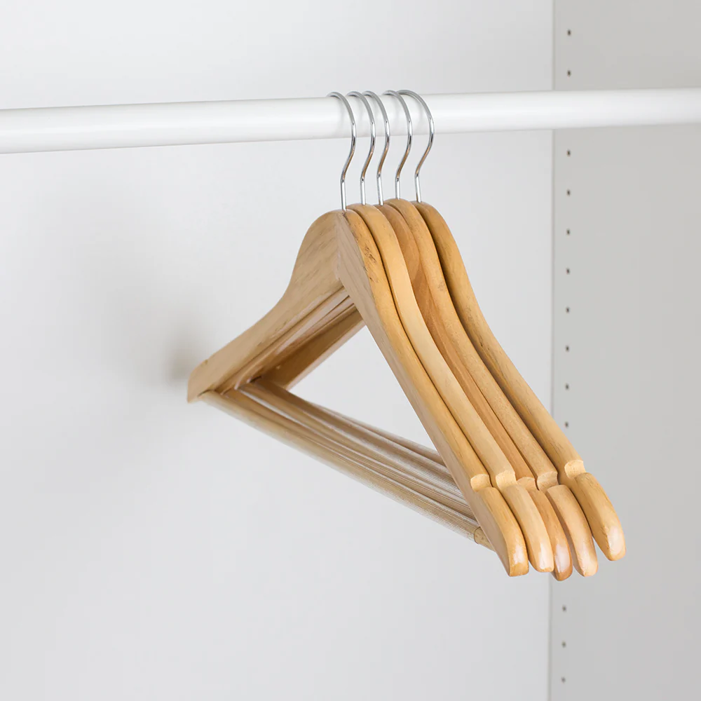 - Precision Cut Indents: Each hanger features notches along the ends to secure your clothes in place, preventing slipping and maintaining their pristine condition.