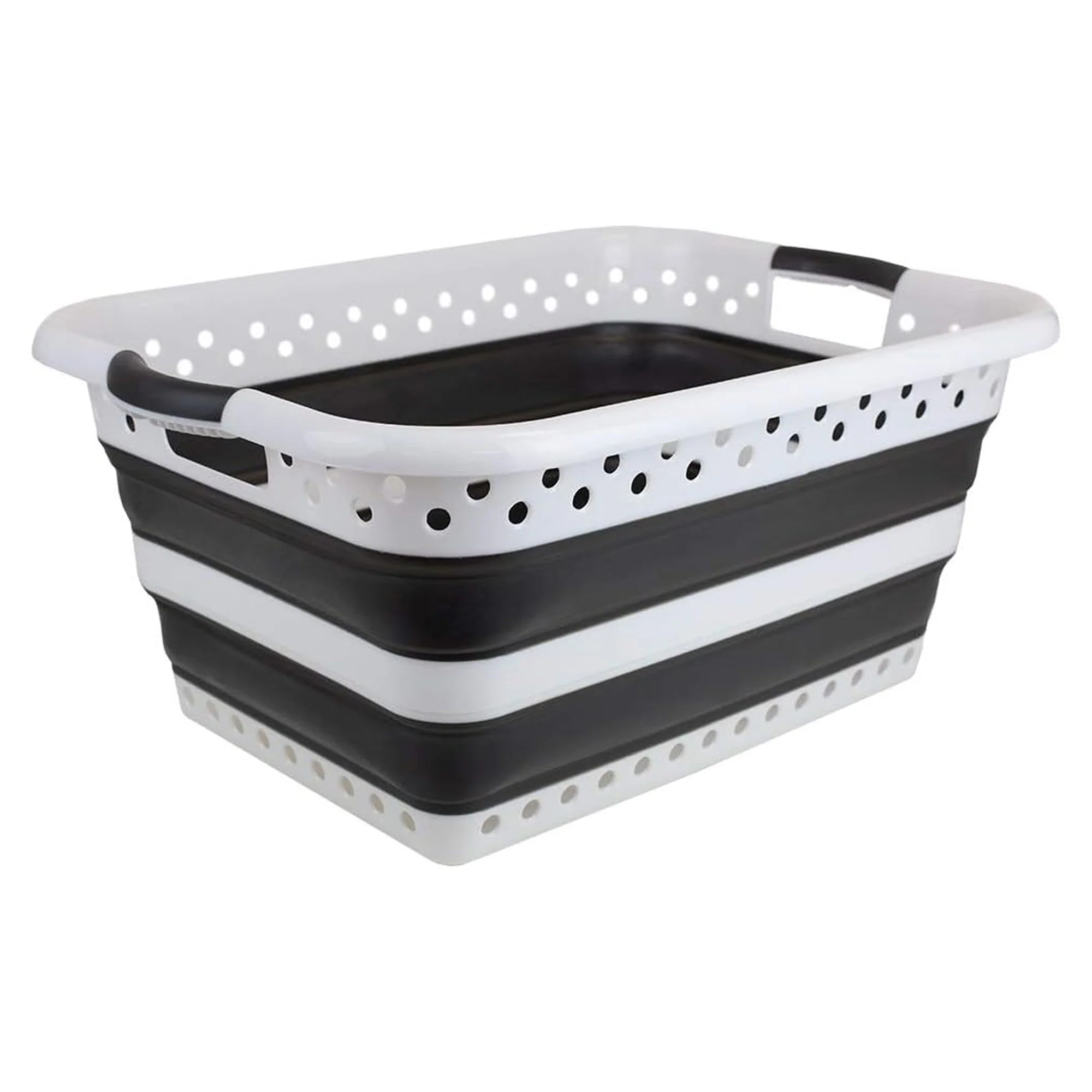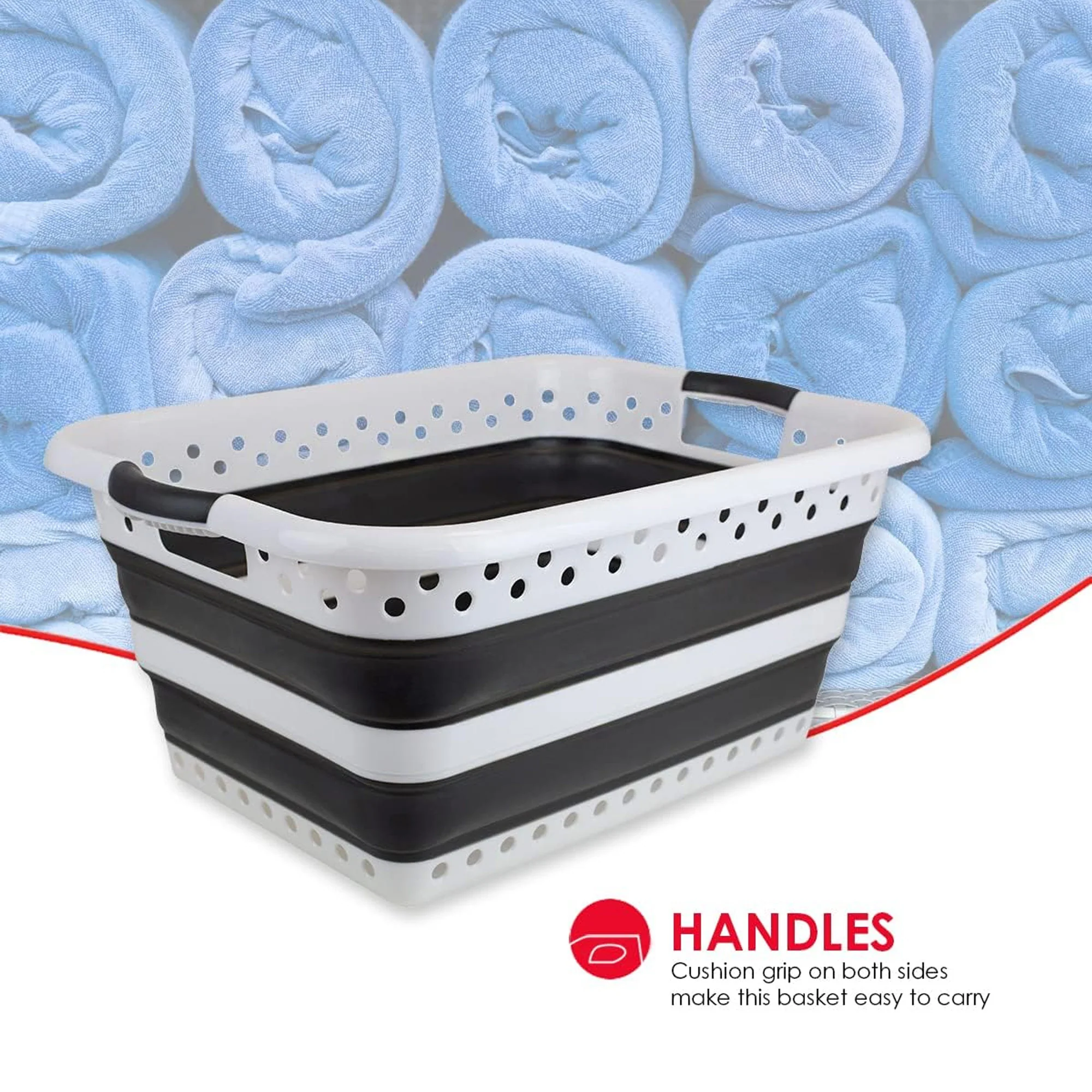 Upgrade your laundry routine with the Home Basics Plastic Collapsible Laundry Basket with Handles, offering convenience and functionality in one compact package.