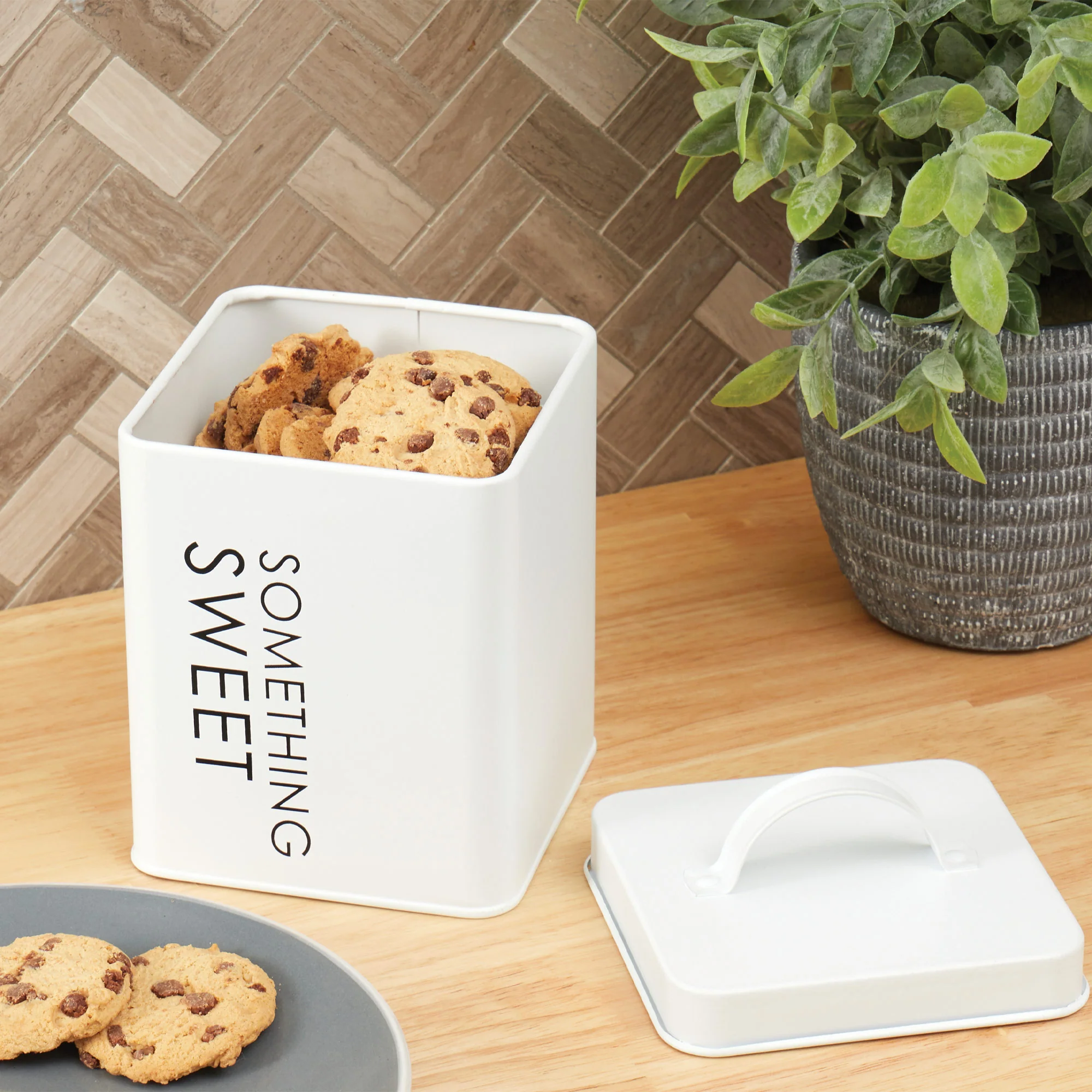 The Home Basics Tin Canister in White is an essential storage solution for keeping your sweet treats organized and within reach. Enjoy the convenience and style of this compact and functional canister in your kitchen.