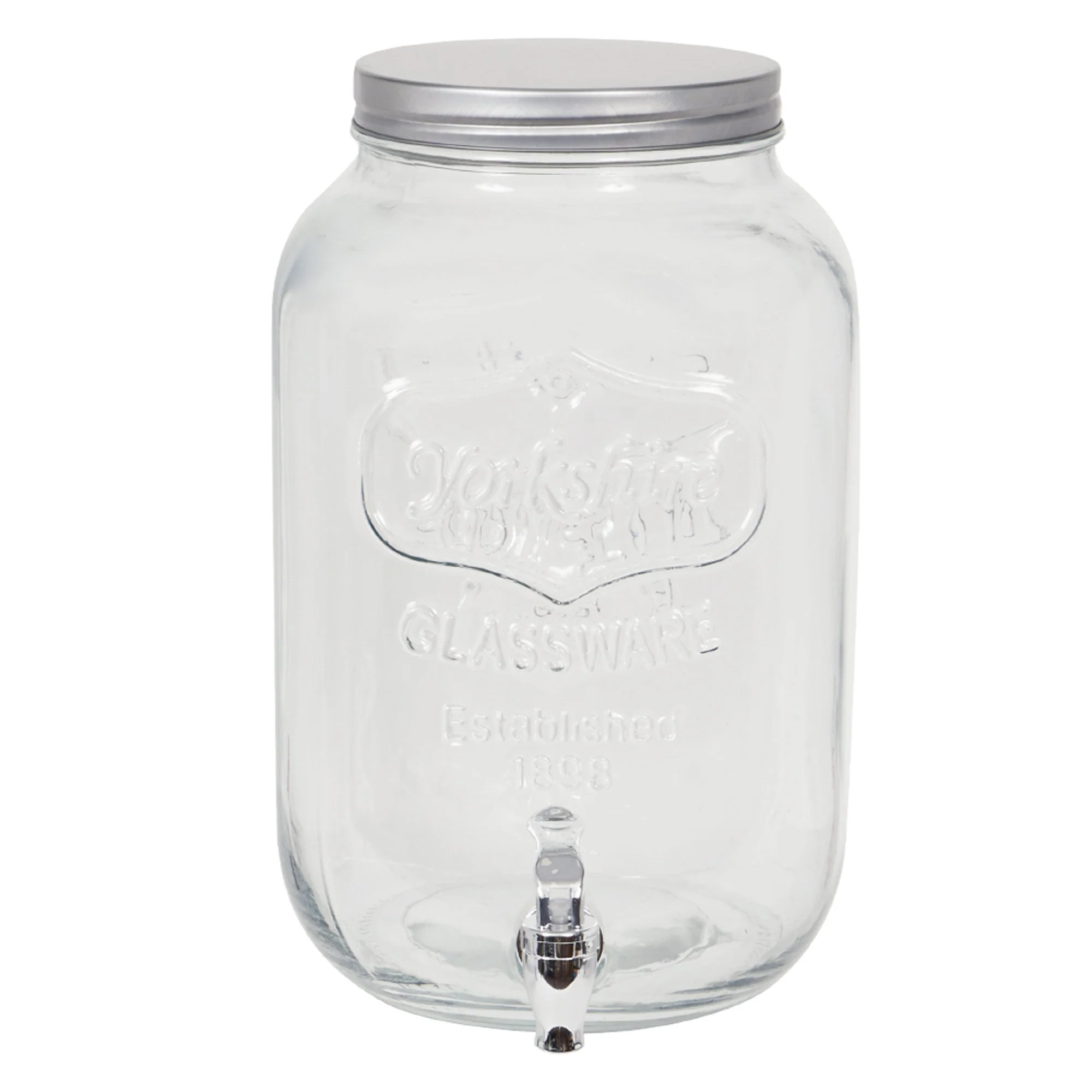 - Material: Glass jar with metal top and plastic spigot