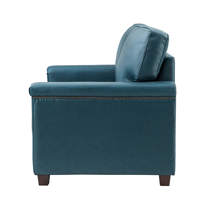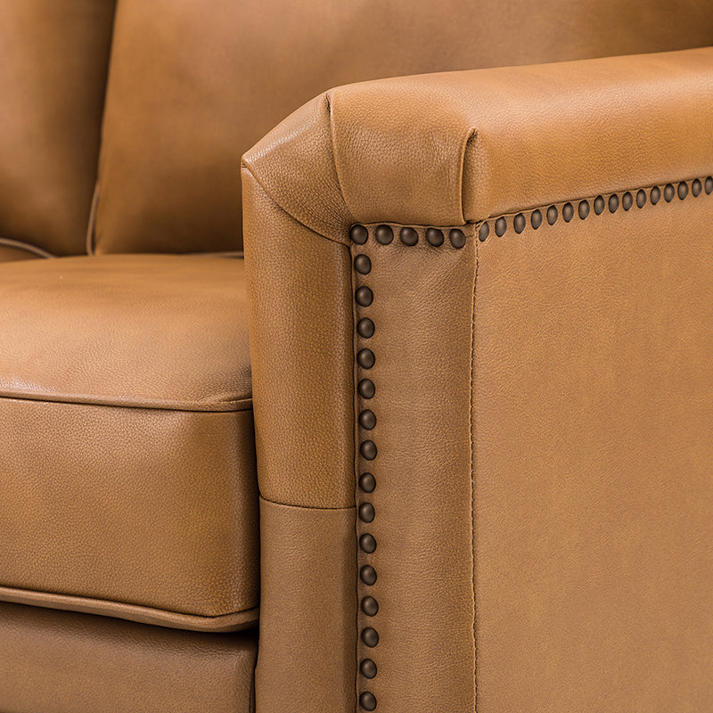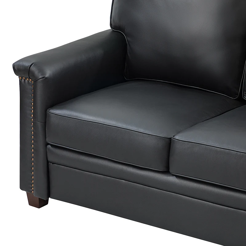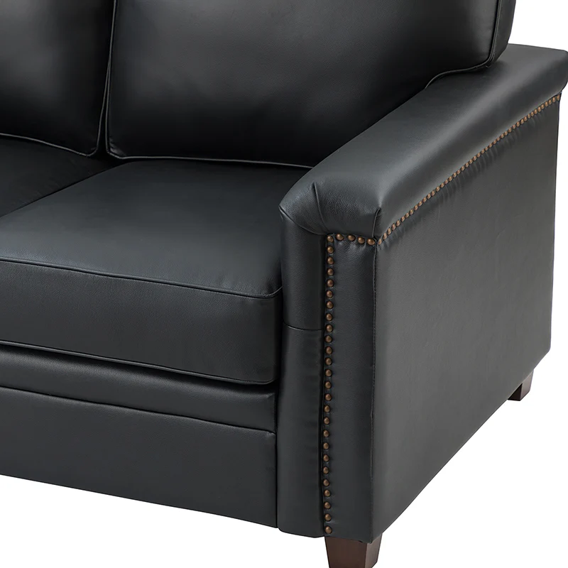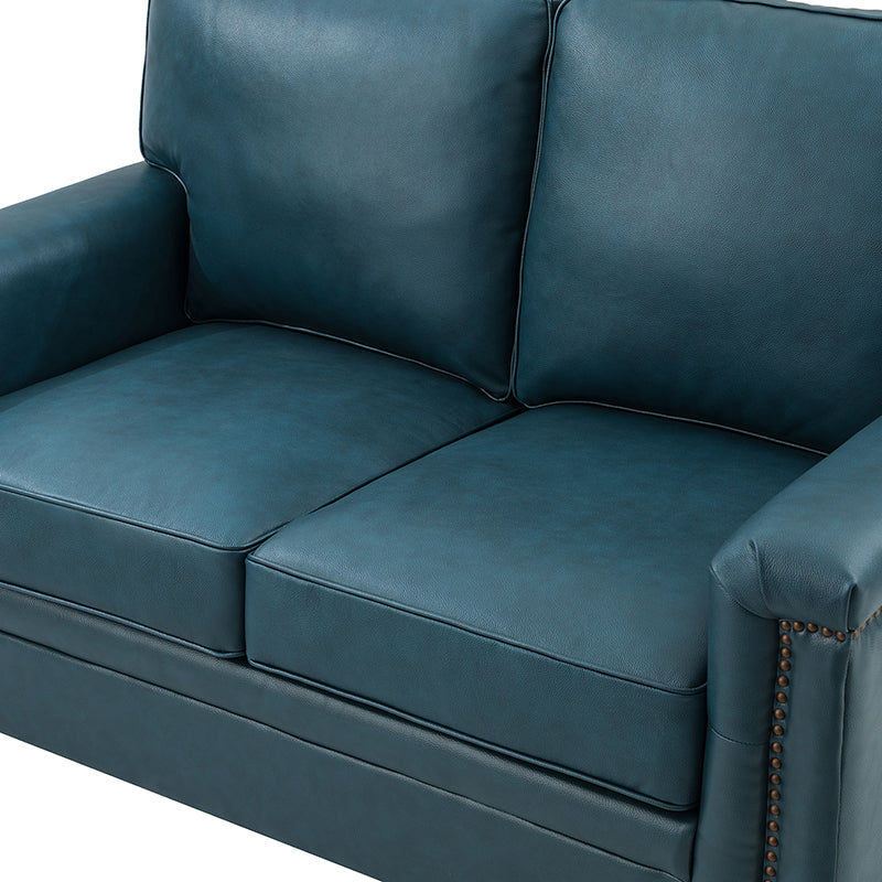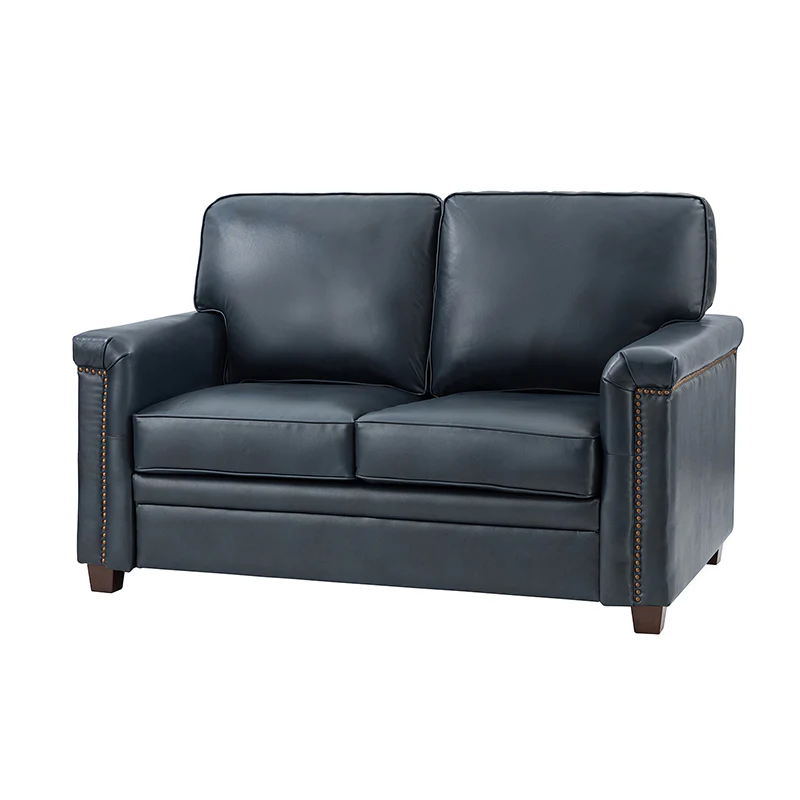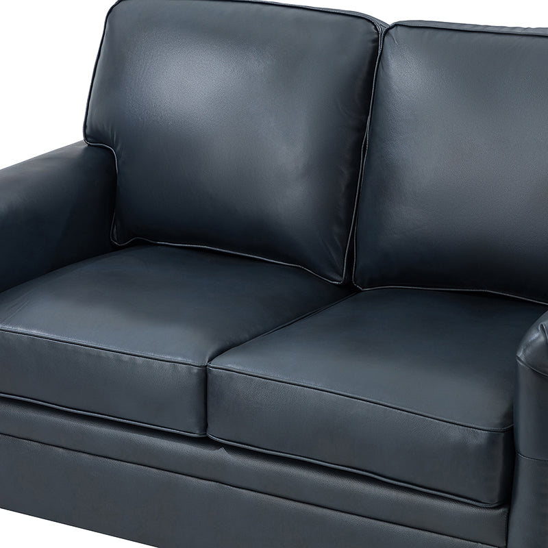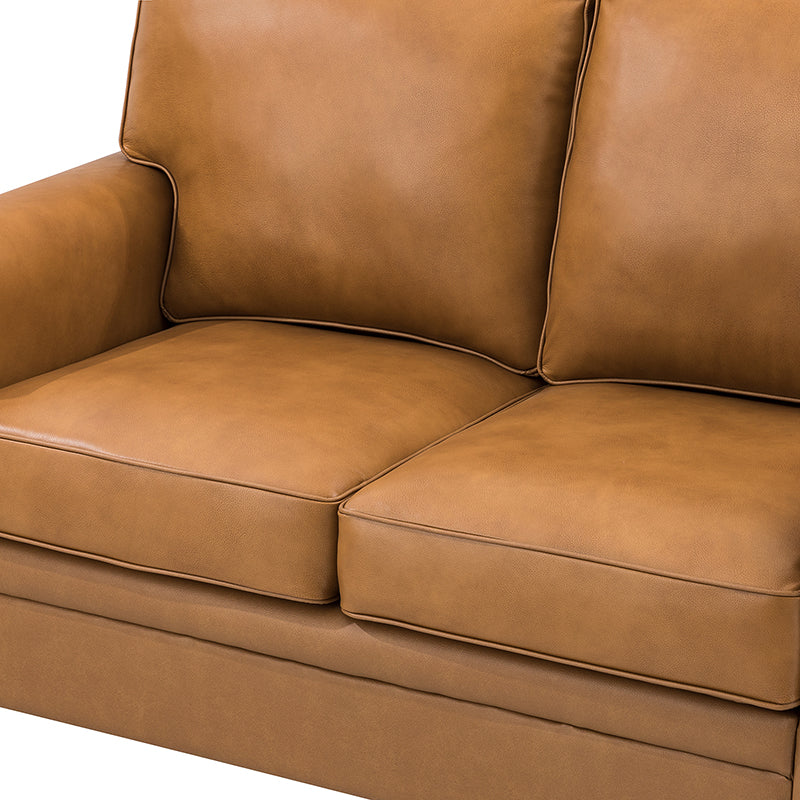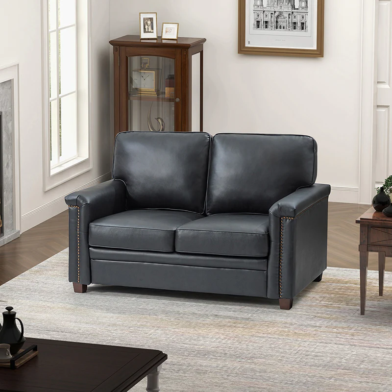 Form meets function in this transitional-style loveseat. It features a sturdy wooden frame and four blocky legs to add a vintage feel to your space. The sofa is also wrapped in refined leather upholstery for a long-lost look and comes in a rich hue that blends with a variety of color schemes. The foam padding gives you extra support whenever you need some time to relax. Quality armrests and cushions round out this classic industrial design. We love how scratch-resistant this loveseat is, making it perfect for homes with pets and kids.