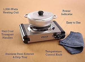 - Features a Temperature Regulating Knob with Heat Distribution Coils