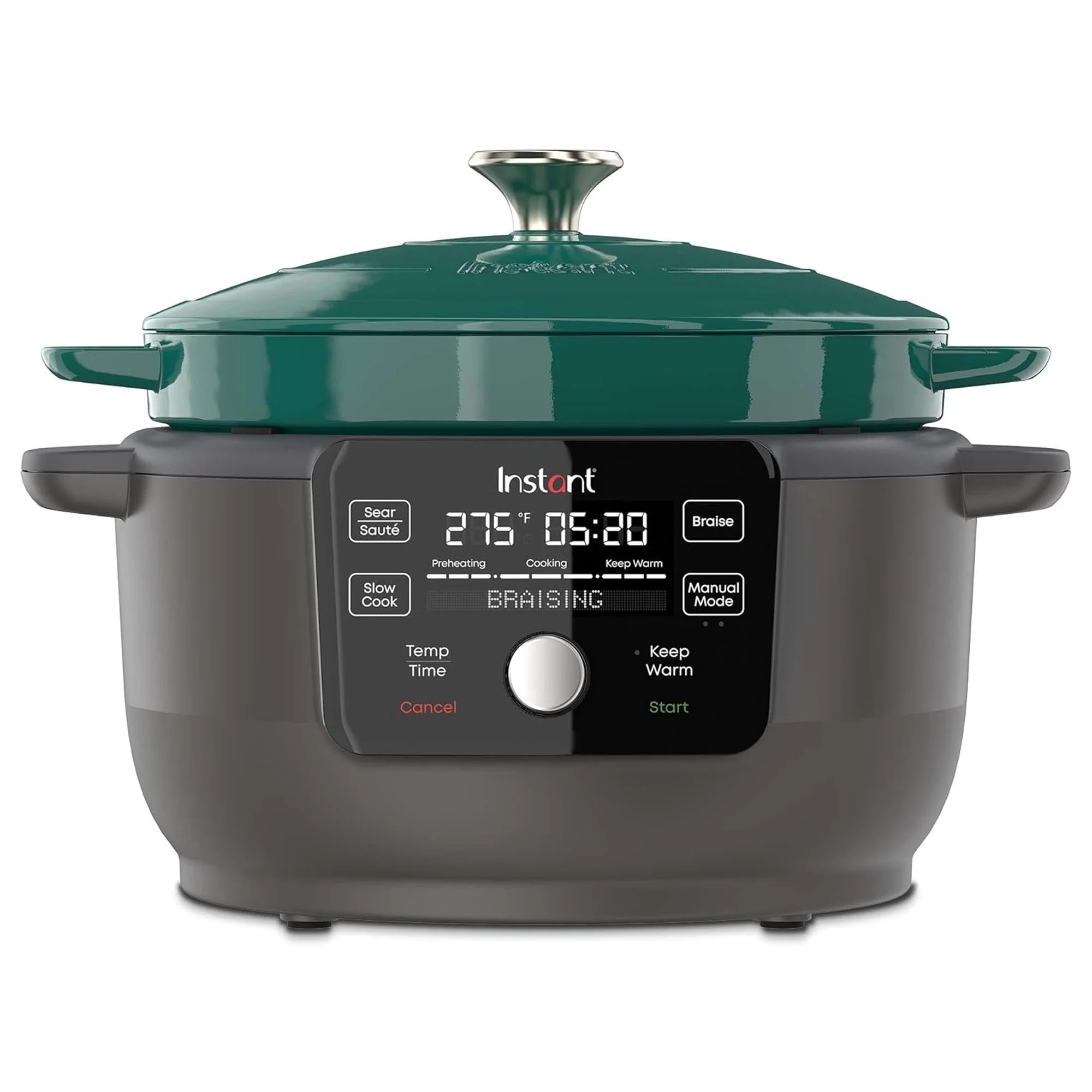 Tired of juggling multiple pots and pans? The Instant Pot Electric Dutch Oven is your kitchen superhero! This 6-quart, emerald green powerhouse combines the beauty of classic cast iron with the convenience of electric cooking. Crafted from durable enameled cast iron, this Dutch oven braises, slow cooks, sears, sautés, and even keeps food warm �?all in one pot!