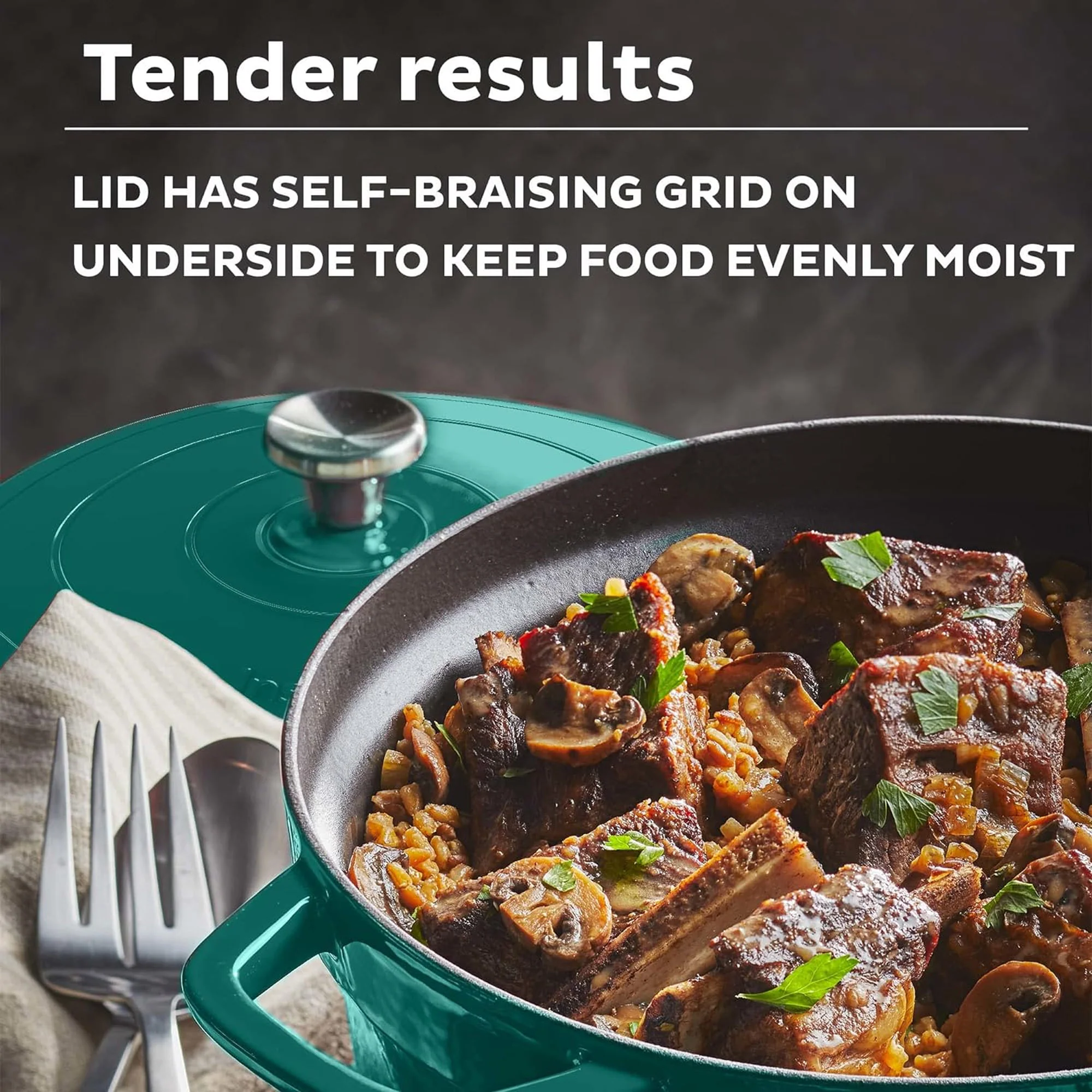 - Cast Iron Muscle: The durable enameled cast iron construction ensures even heat distribution and superior heat retention for perfect results every time.