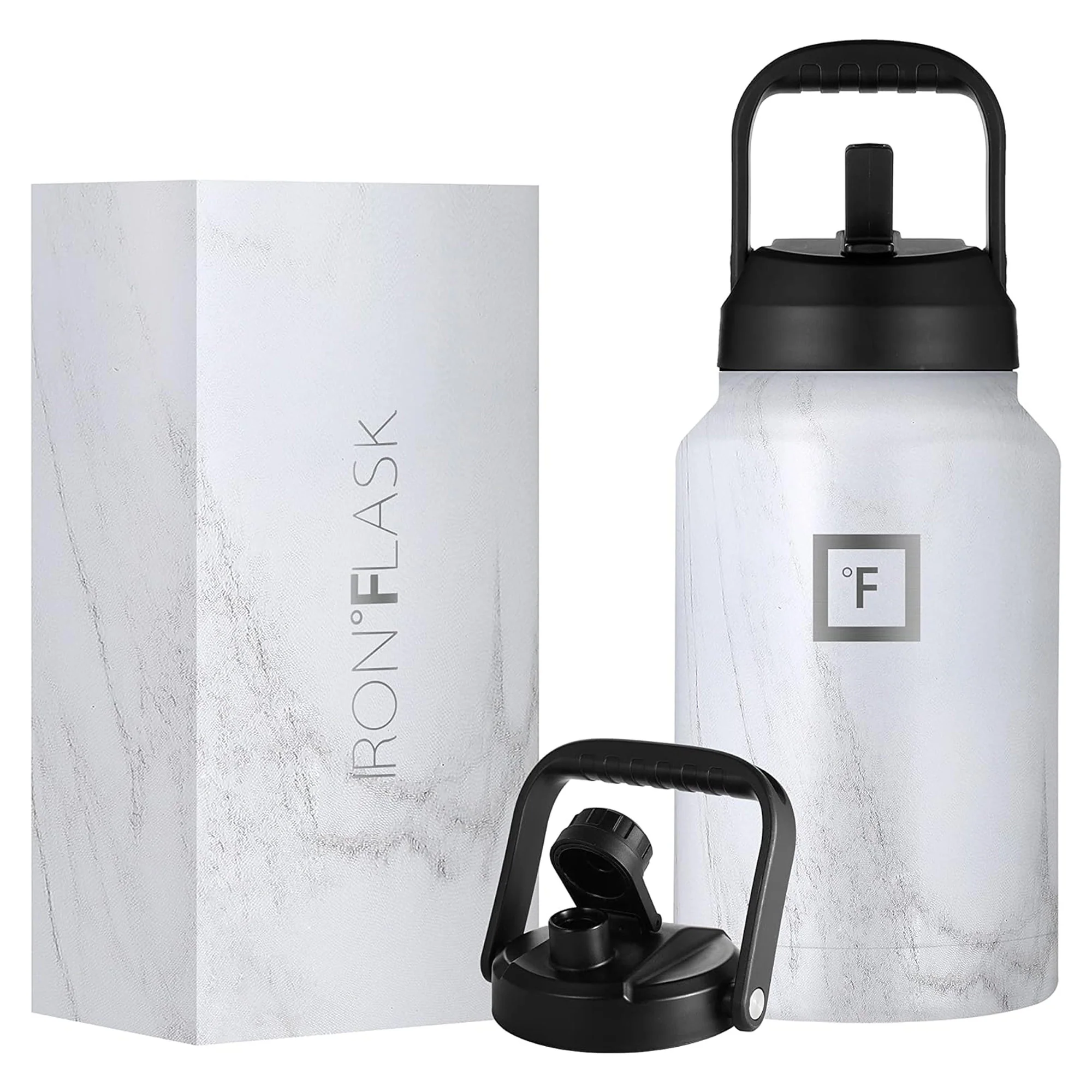 The IRON °FLASK One-Gallon Stainless Steel Water Bottle in Carrara Marble is the perfect blend of style and function, ideal for anyone who wants to stay hydrated and look good doing it.