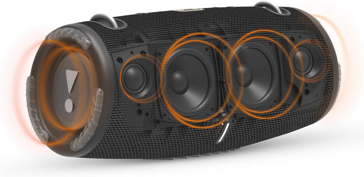 - POWERFUL JBL ORIGINAL PRO SOUND: Four drivers and two JBL Bass Radiators effortlessly deliver dynamic, immersive sound with deep bass and plenty of detail. You'll get lost in the music wherever you are.