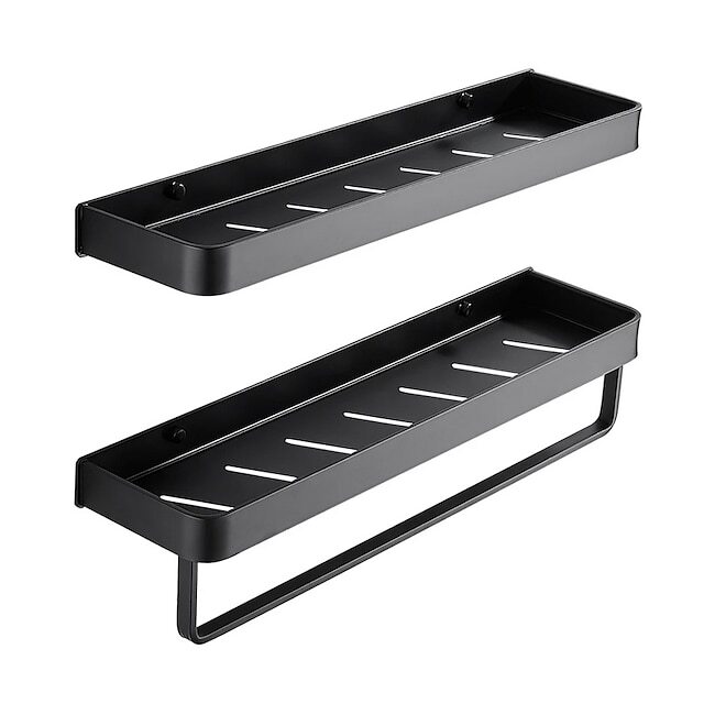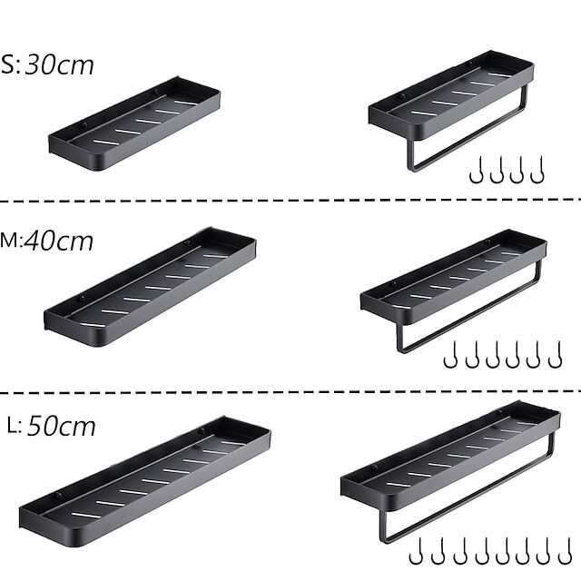 30cm Kitchen Bathroom Shelf Bath Shower Shelf Aluminum Black Bathroom Corner Shelf Wall Mounted Black Aluminum Kitchen Storage Holder