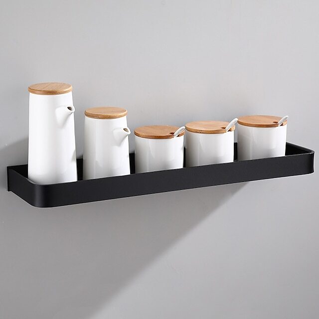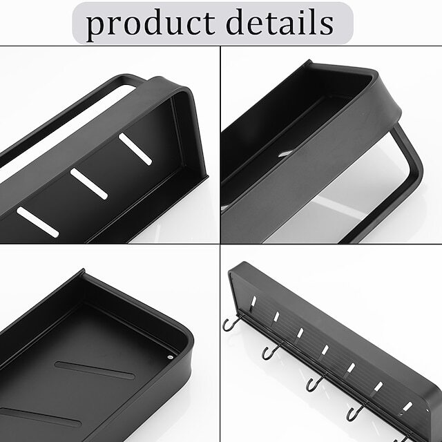 • Kitchen Bathroom Shelf Bath Shower Shelf Aluminum Black Bathroom Corner Shelf Wall Mounted Black Aluminum Kitchen Storage Holder