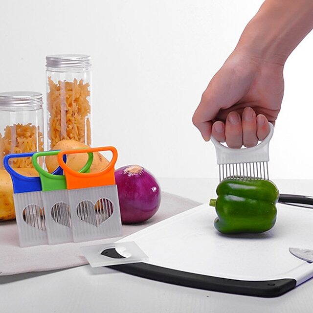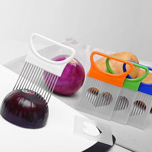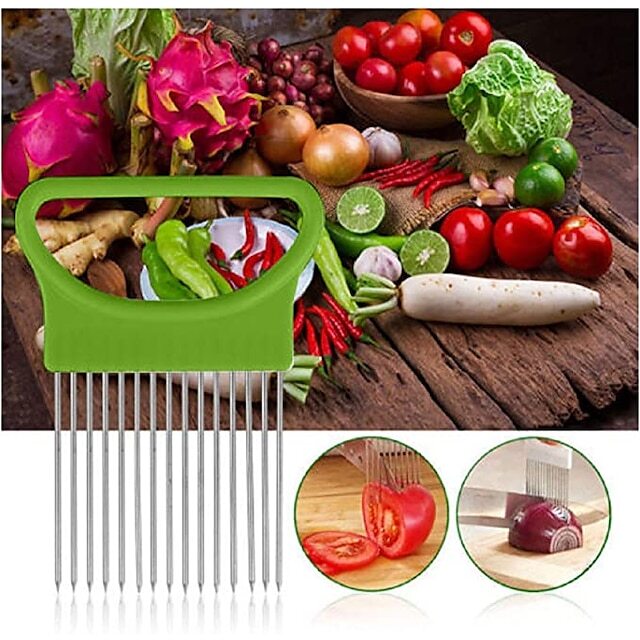 Kitchen Onion Slicer Cut Onion Holder Fork Tomato Vegetable Slicer Cutting Aid Guide Holder Fruit Cutter