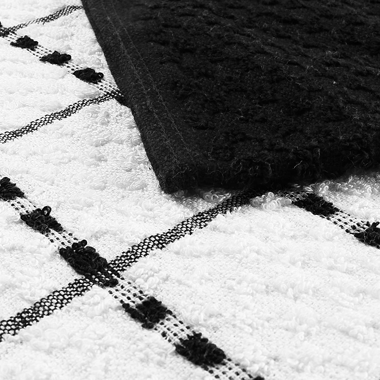 - VALUE PACK- Set includes 12 cotton dish towels with six black and six white dobby weave style kitchen towels measuring 15 x 25 inches