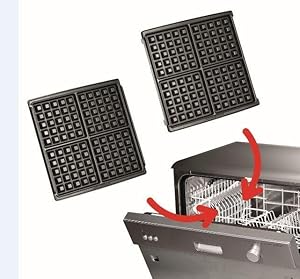 - 𝐄𝐚𝐬𝐲 𝐓𝐨 𝐂𝐥𝐞𝐚𝐧: Waffle iron with removable, dishwasher safe die cast plates with a nonstick coating for effortless food release and quick cleanup.
