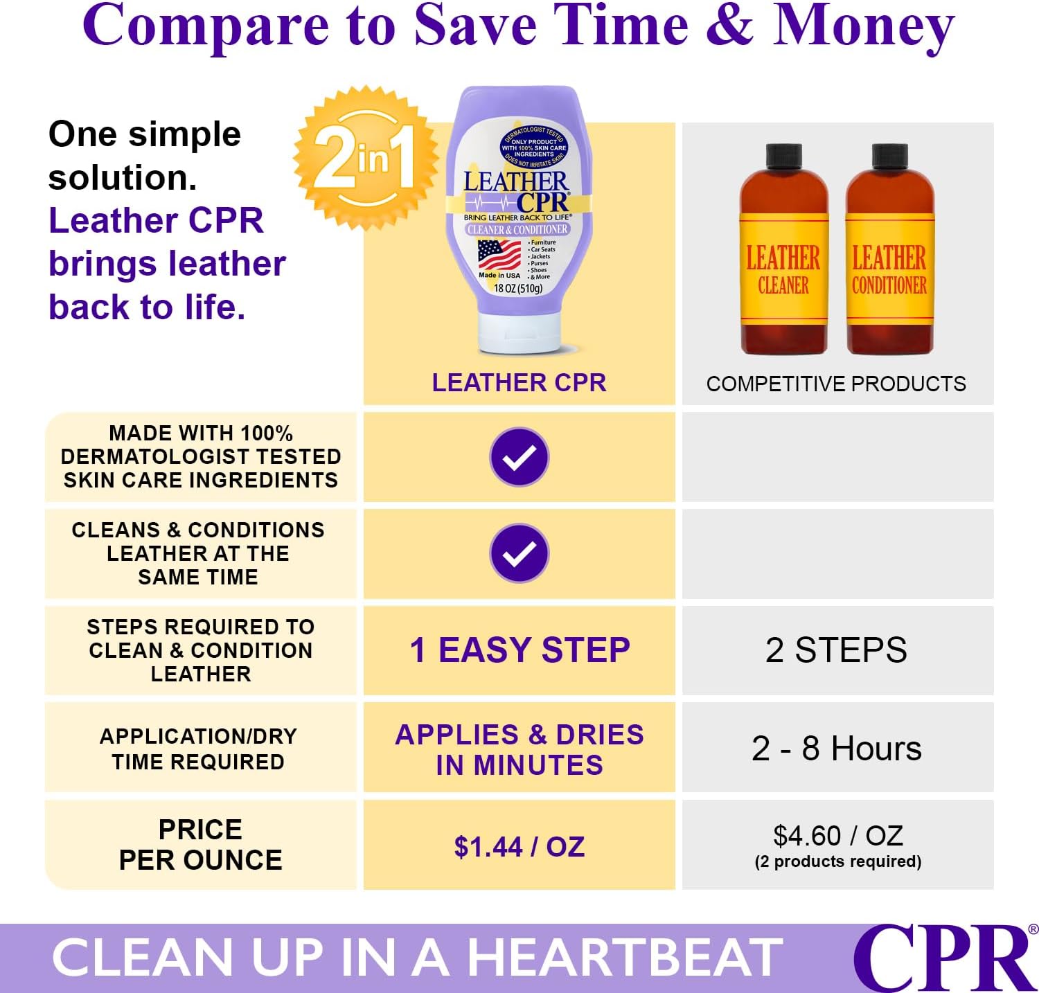 • BEST LEATHER UPHOLSTERY CLEANER - Want to give your leather items a new life? Leather CPR is the best leather cleaner and conditioner in the market, which will make your leather feel like new.