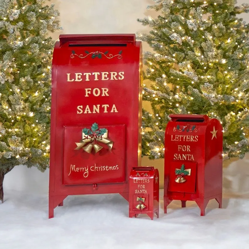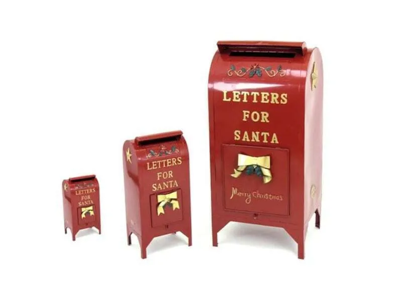 Bring the Christmas Spirit into your store with this Set of 3 Christmas Mailboxes. Each has a small front door that provides easy access to the letters to Santa held within. They come in 3 sizes and are economically shipped nested inside the large. They are a wonderful holiday decoration, sure to excite adult and children patrons alike.