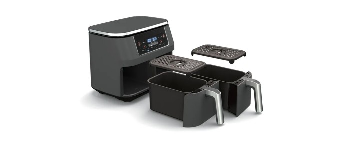 SEPARATE HEATING ZONES: 2 independent 4-quart zones have their own cooking baskets, cyclonic fans, and rapid heaters.
