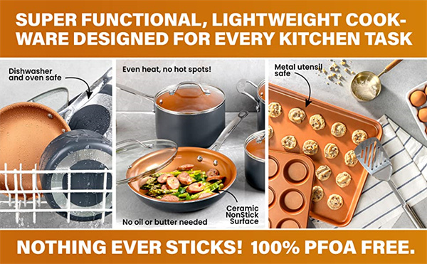 Metal Utensil Safe: The coating of the pan is infused with diamonds, the strongest material on earth which makes it durable enough to withstand metal utensils, spatulas, spoons, whisks and even electric beaters while delivering years of outstanding, nonstick use