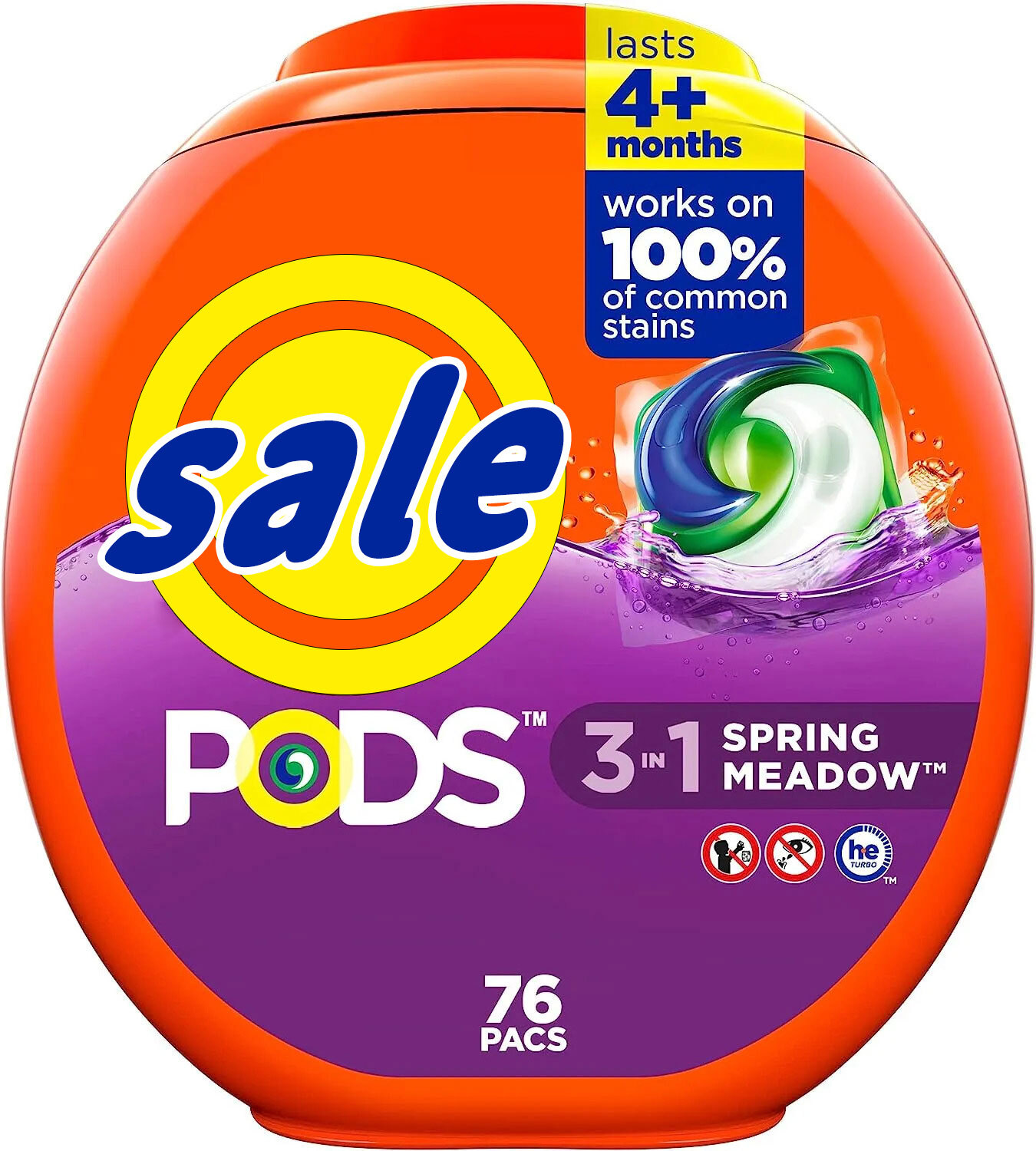 • Liquid Laundry Detergent Soap Pacs, HE Compatible, Powerful 3-in-1 Clean in one Step, Spring Meadow Scent, 76 Count