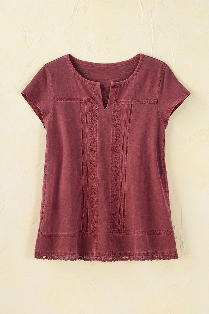 Love is in the details, from the lace trim on the front to the boho-inspired accent seams. Soft and light in slub knit, with a slight A-line shape for great drape.