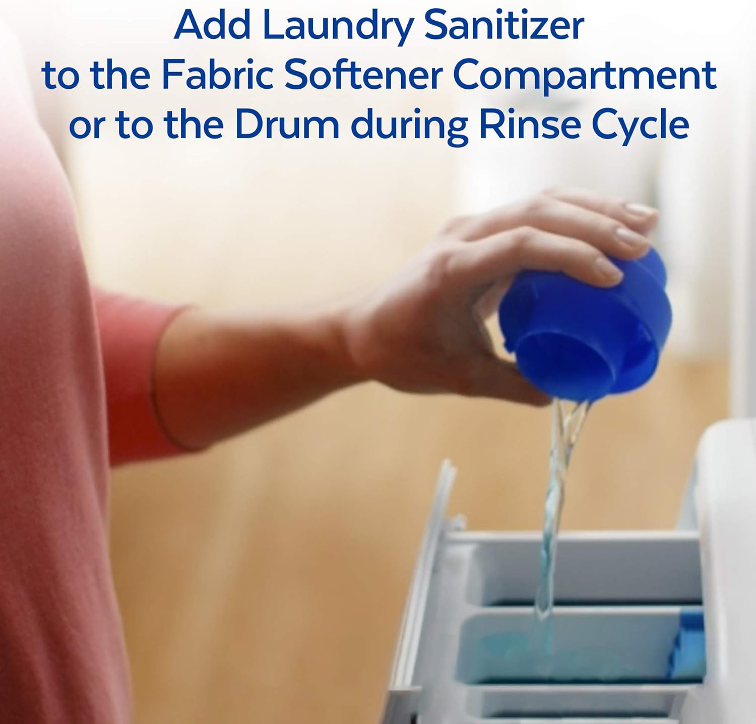 Our clothes are in constant contact with bacteria throughout our day-to-day activities, for example through contact with contaminated surfaces, other people and our own bodies. Bacteria can spread from one fabric to another in the laundry basket, from the washing-machine drum to the next load. Some of these bacteria can survive following the wash cycle. When it comes to certain laundry loads such as children's clothes or sportswear, you want to eliminate bacteria that may cause illnesses and create lingering bad smells. But detergents alone don't actually kill all bacteria. Introducing Lysol Laundry Sanitizer, an additive specially designed to kill 99.9% of bacteria in laundry. Simply add Lysol Laundry Sanitizer to your rinse cycle. It does not contain any chlorine bleach and even works in cold water so is safe to use on most fabrics including whites, colors and darks.
