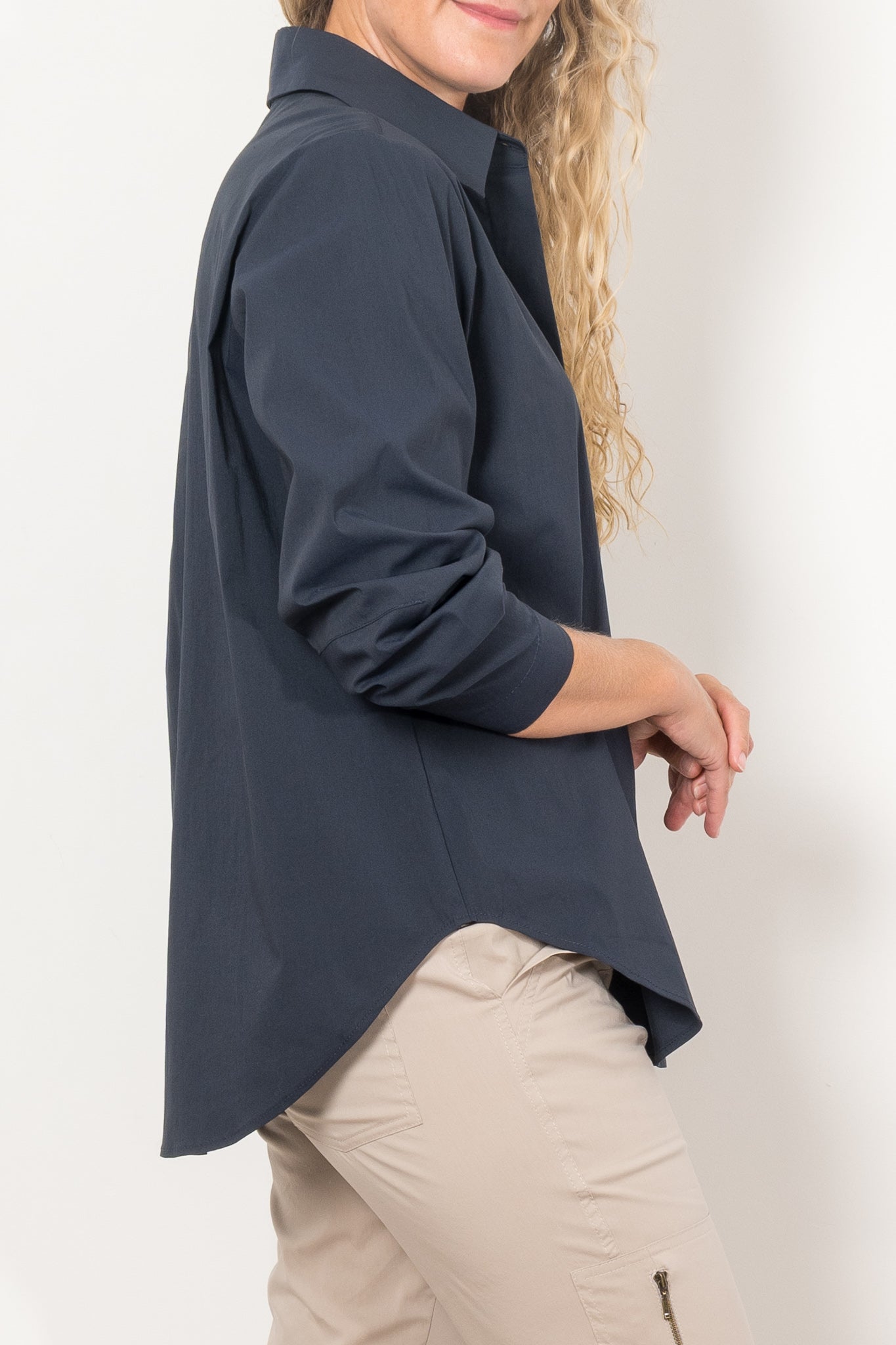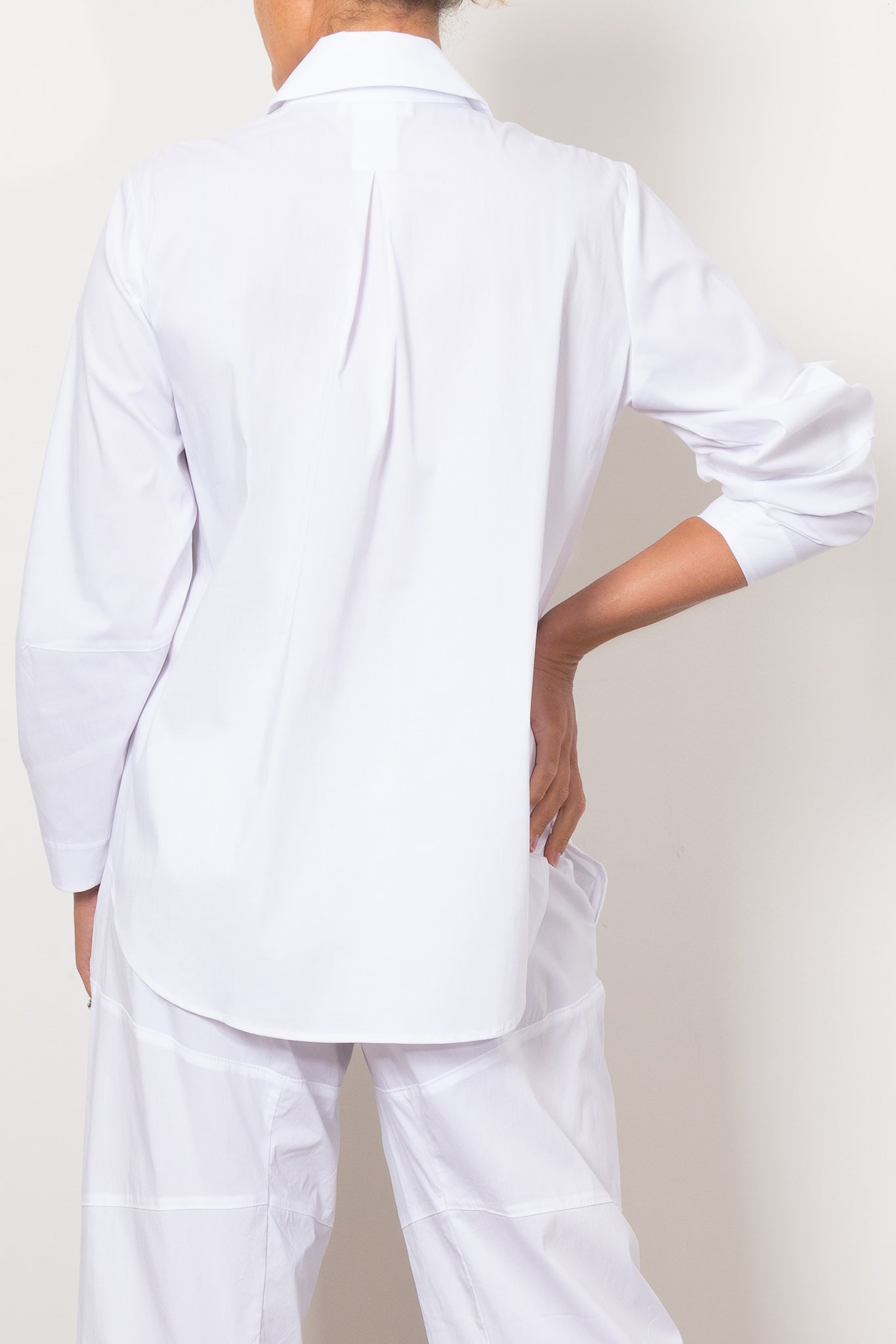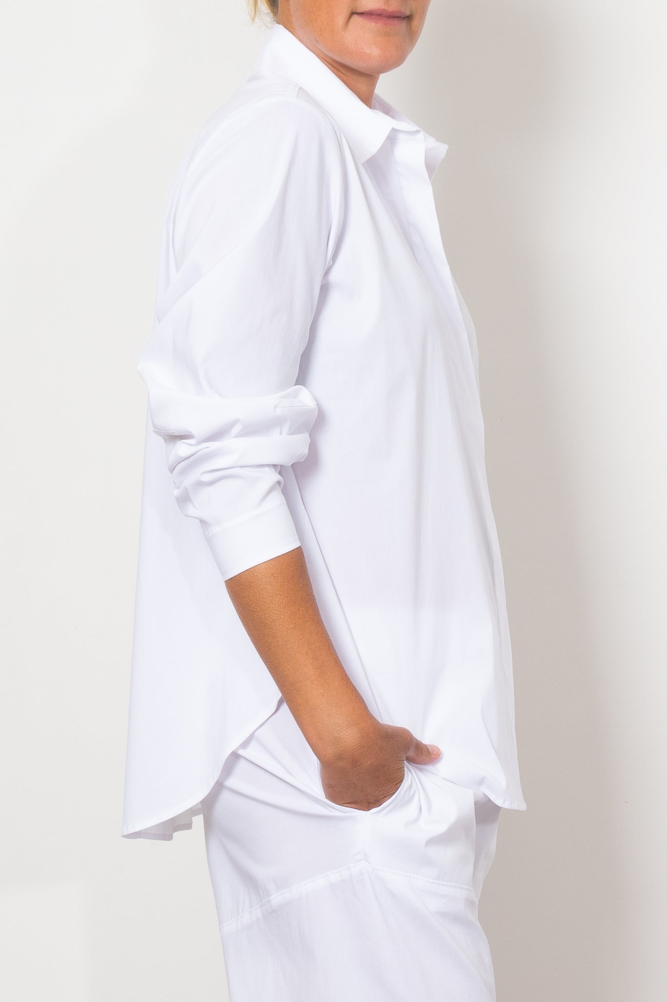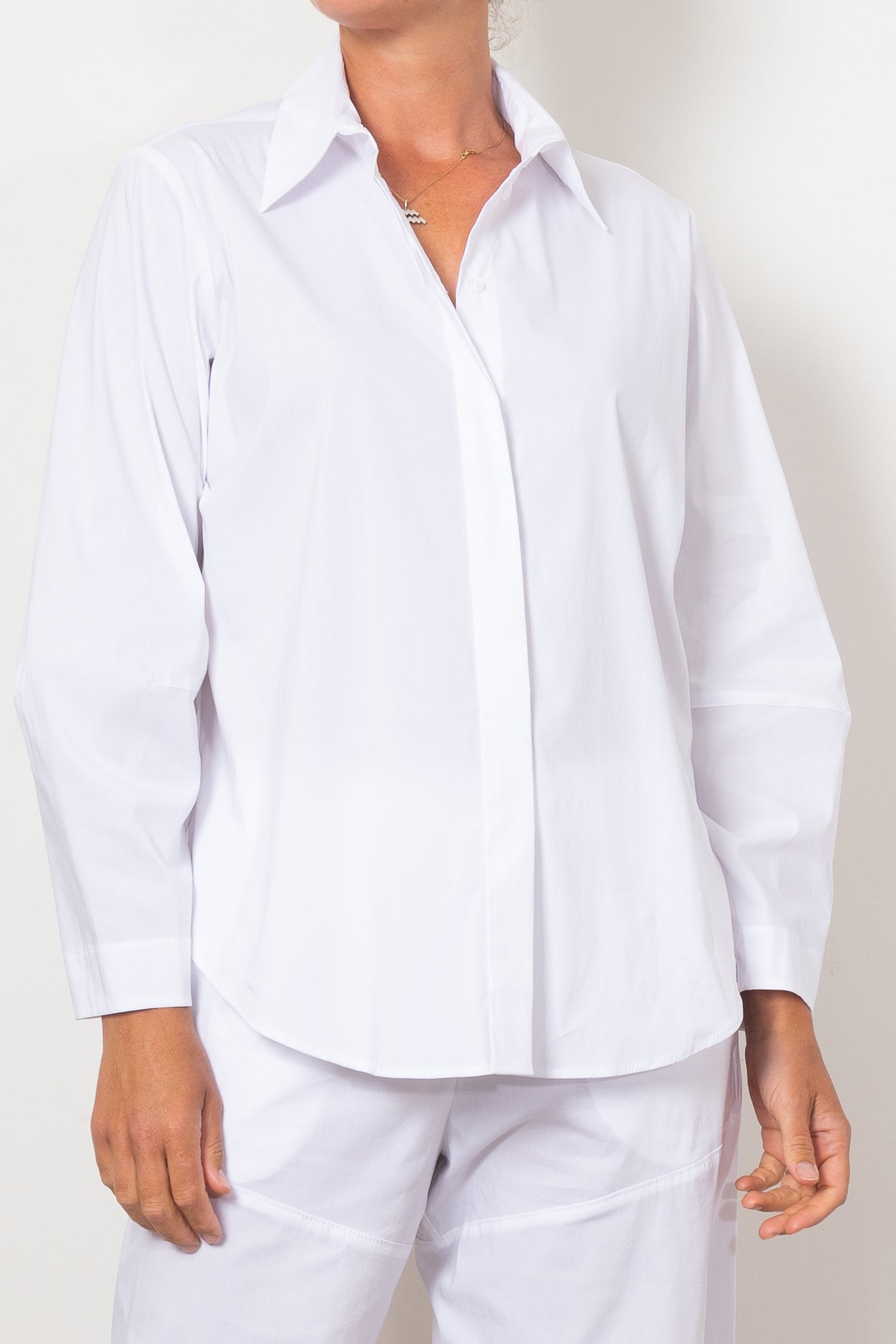 The Mela Purdie Dart Shirt Microprene is a must-have for any wardrobe. Cut from a European-made, high-stretch Microprene fabric, this versatile shirt offers a crisp, polished look. With a crisp collar, concealed front placket, and curved hemline, it's perfect for any occasion. Made with care in Australia.