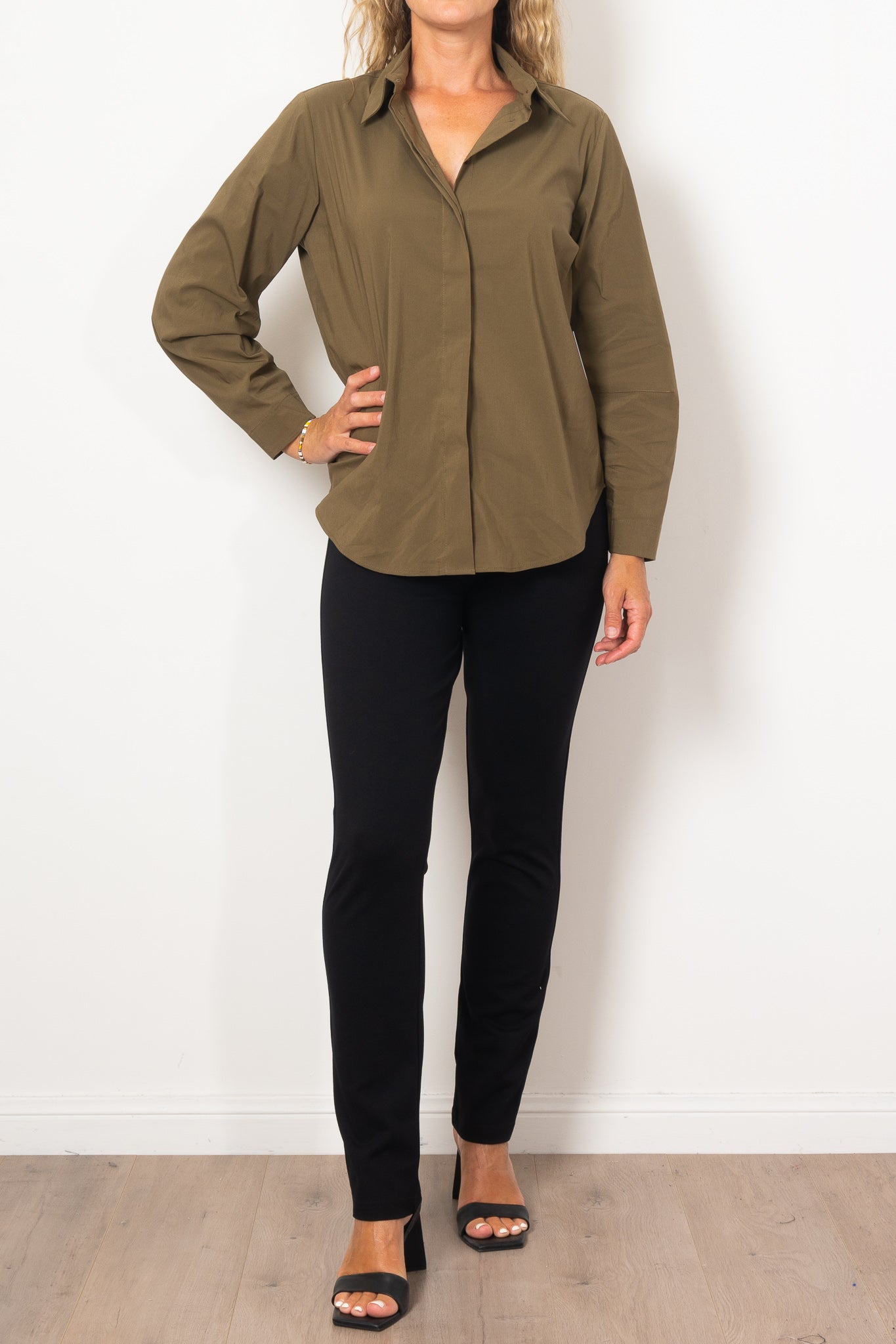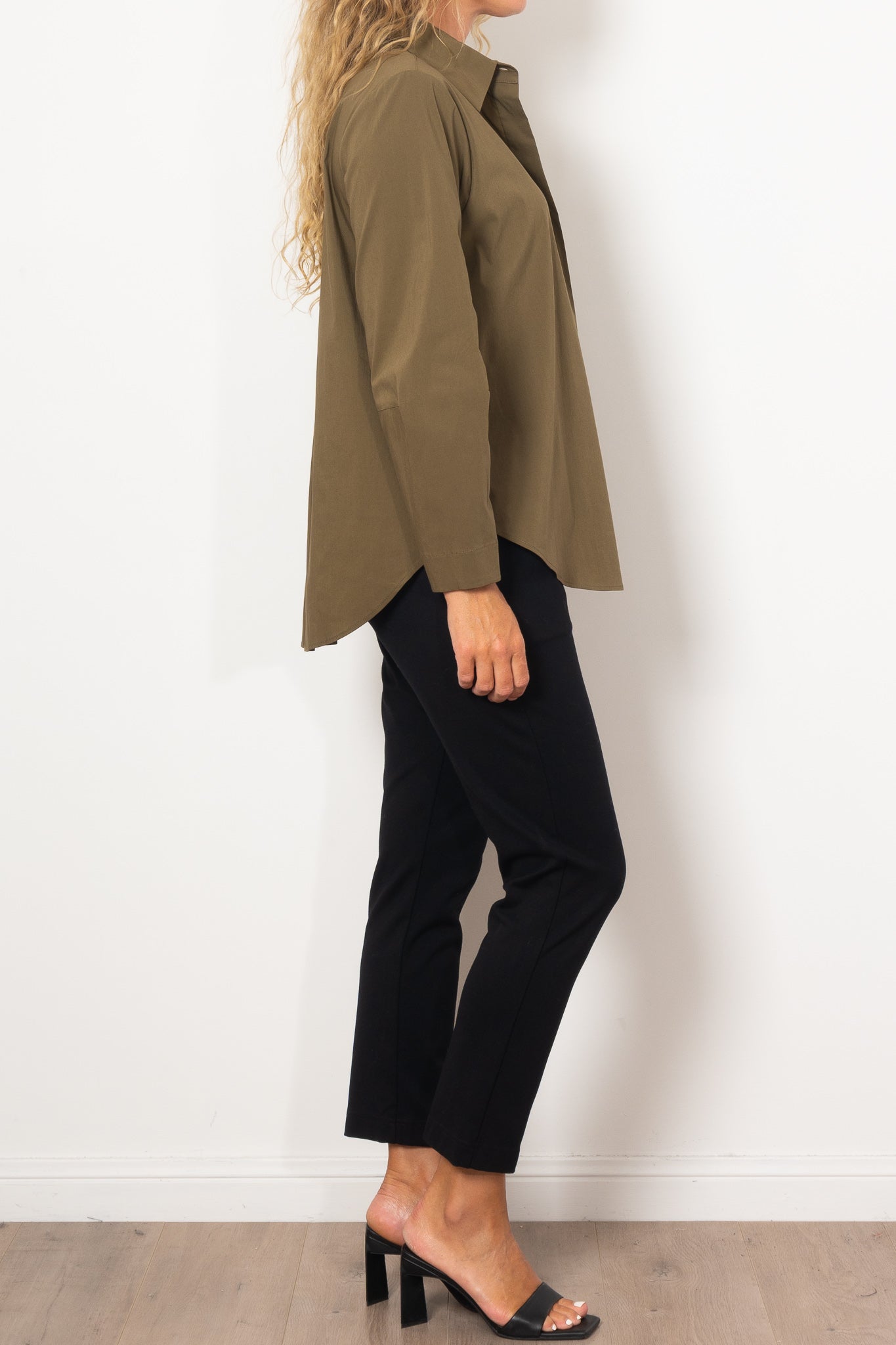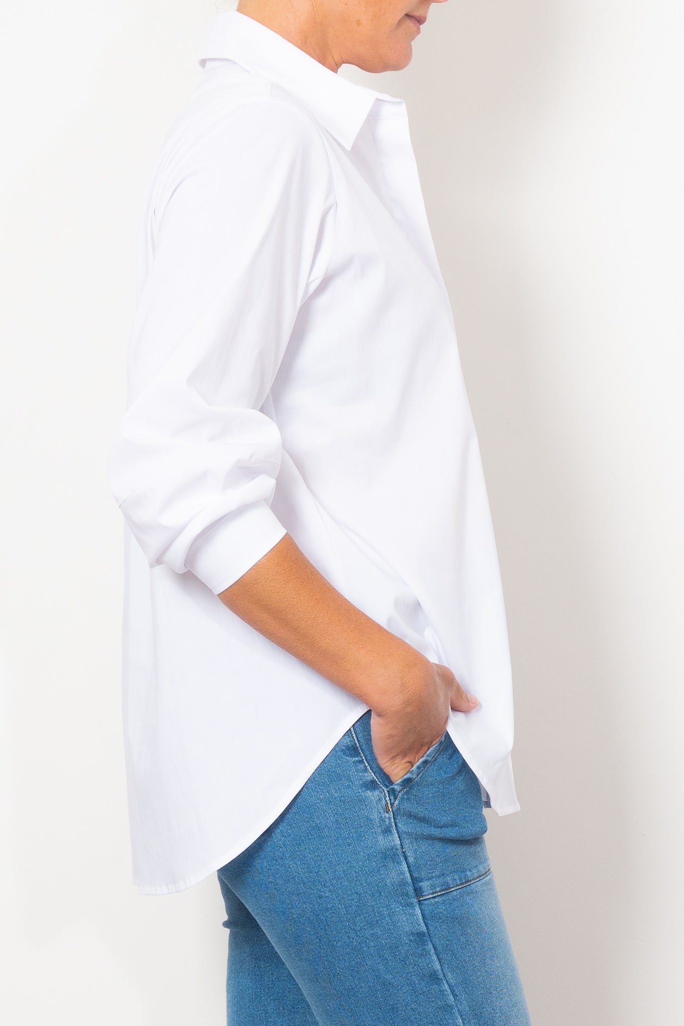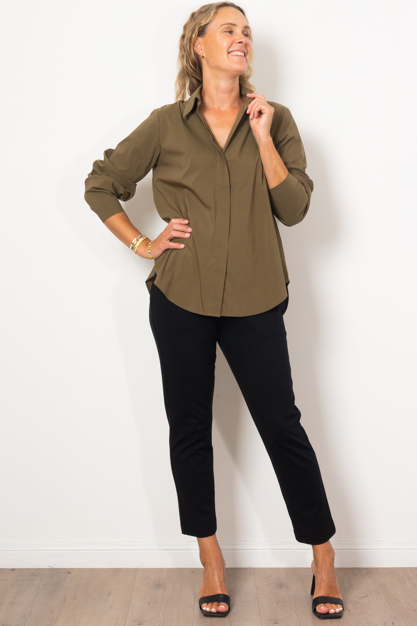 The Mela Purdie Dart Shirt Microprene is a must-have for any wardrobe. Cut from a European-made, high-stretch Microprene fabric, this versatile shirt offers a crisp, polished look. With a crisp collar, concealed front placket, and curved hemline, it's perfect for any occasion. Made with care in Australia.