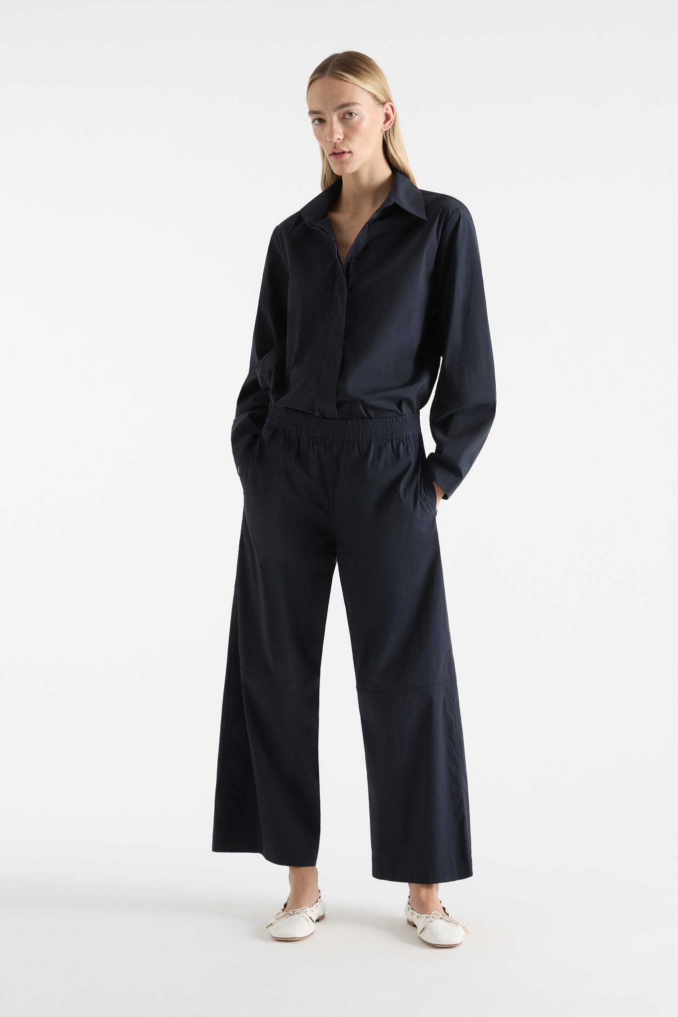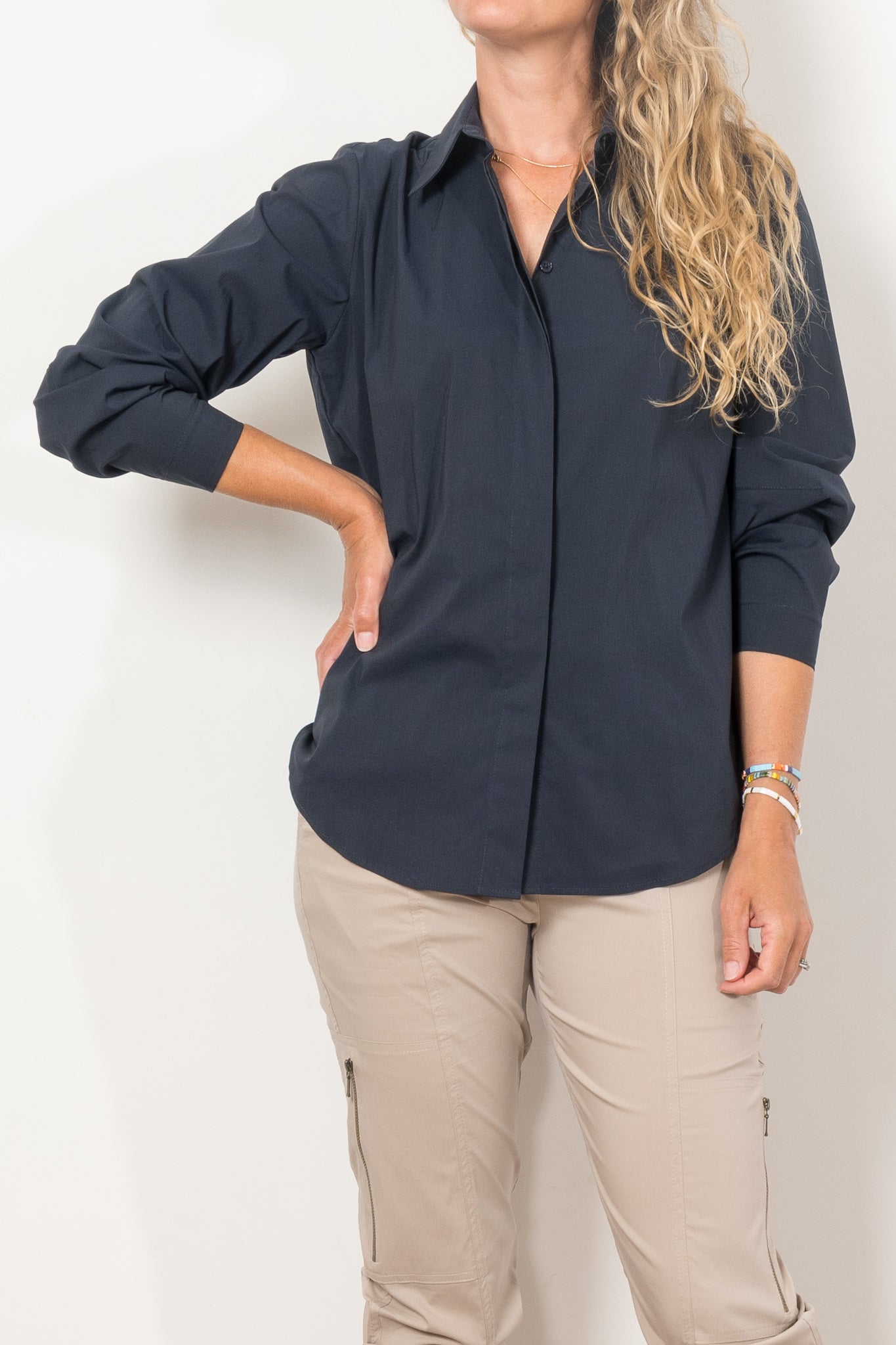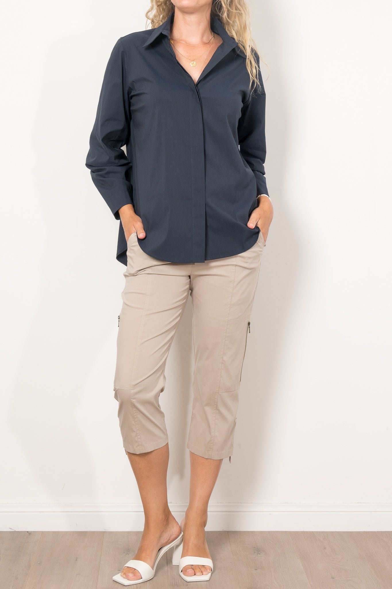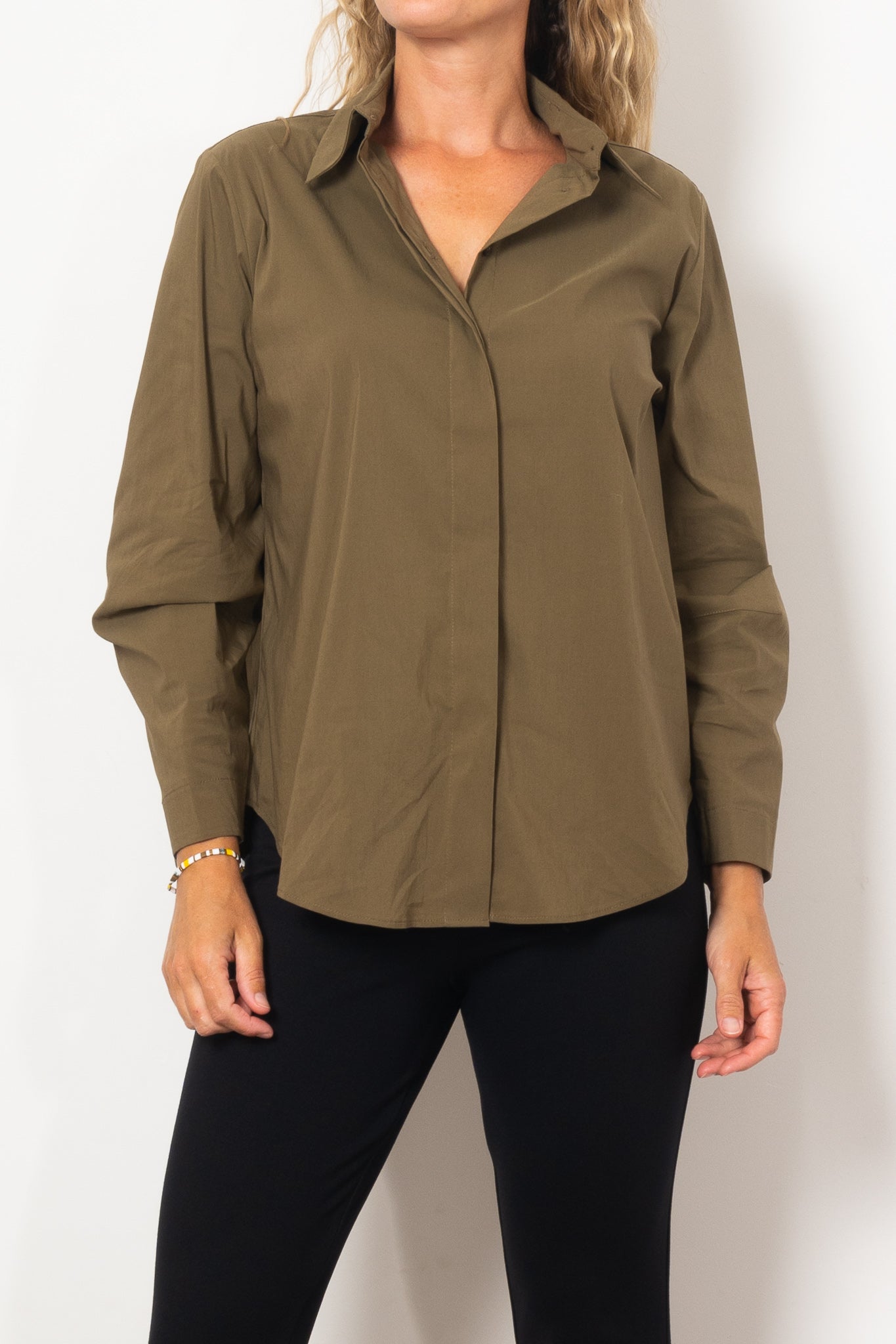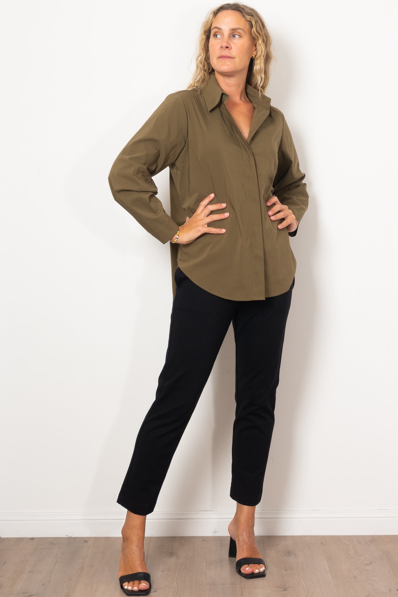 The Mela Purdie Dart Shirt Microprene is a must-have for any wardrobe. Cut from a European-made, high-stretch Microprene fabric, this versatile shirt offers a crisp, polished look. With a crisp collar, concealed front placket, and curved hemline, it's perfect for any occasion. Made with care in Australia.
