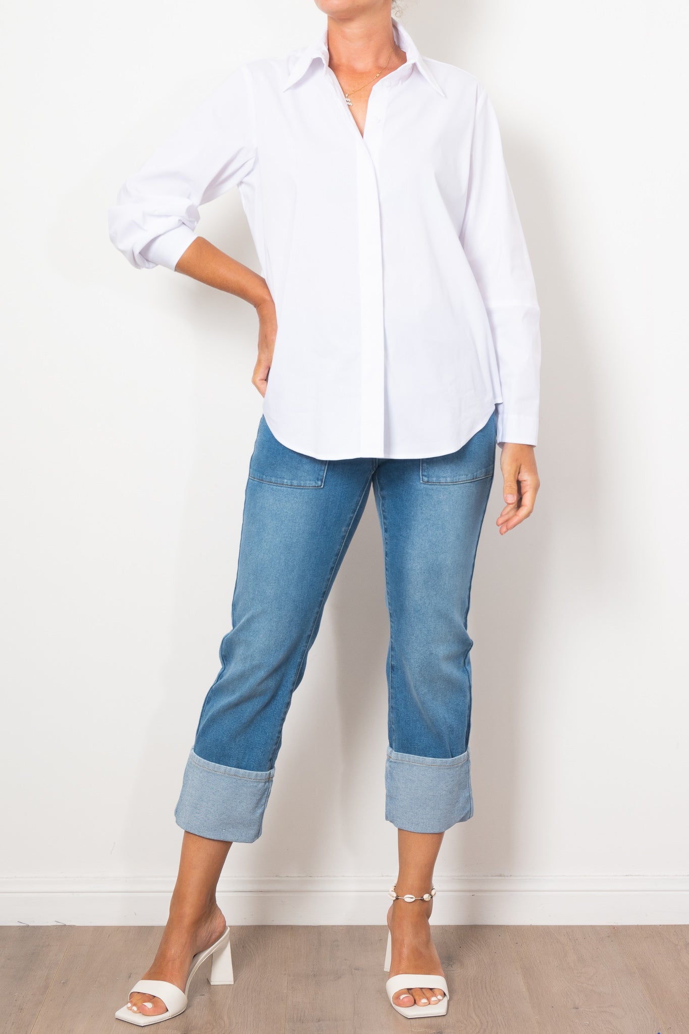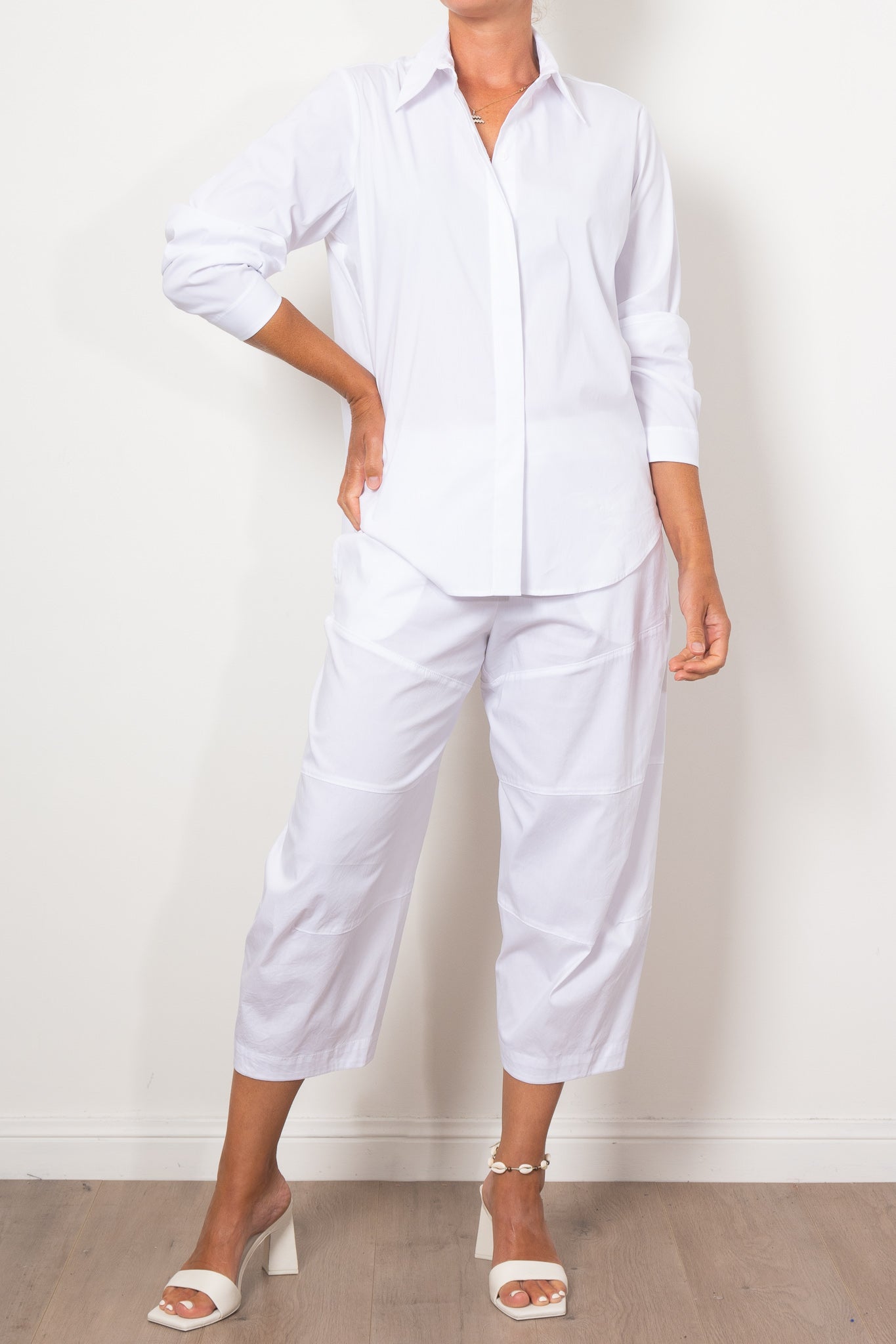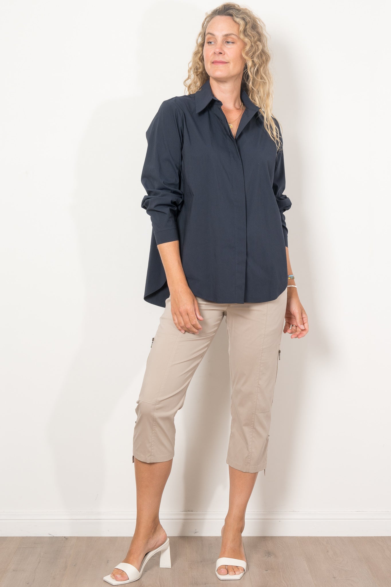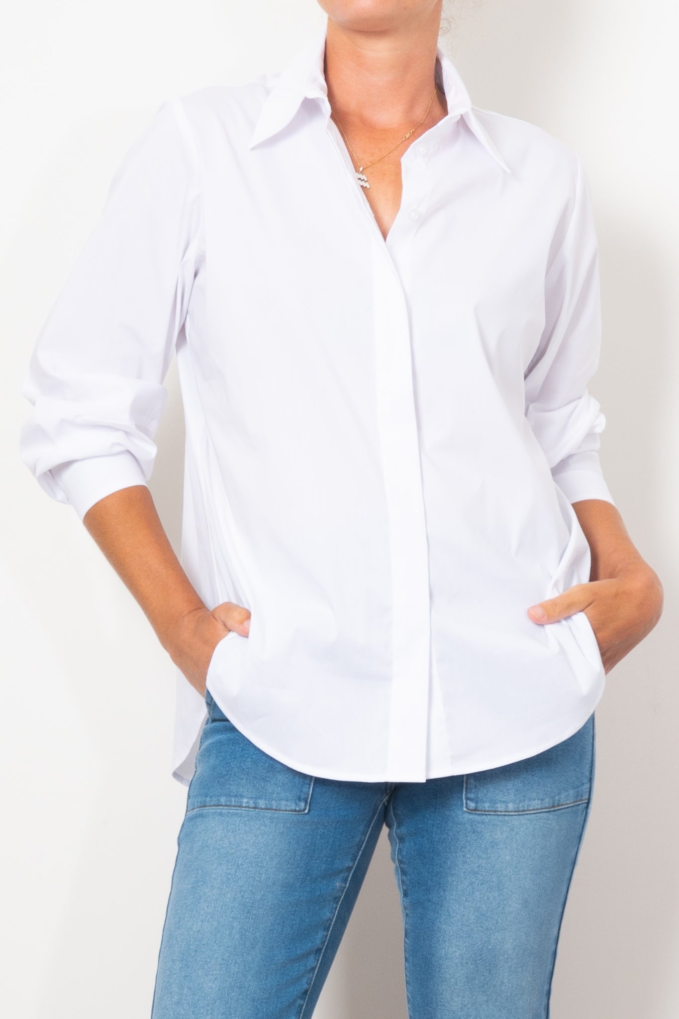 The Mela Purdie Dart Shirt Microprene is a must-have for any wardrobe. Cut from a European-made, high-stretch Microprene fabric, this versatile shirt offers a crisp, polished look. With a crisp collar, concealed front placket, and curved hemline, it's perfect for any occasion. Made with care in Australia.