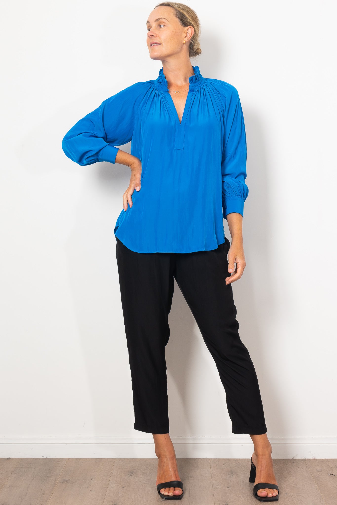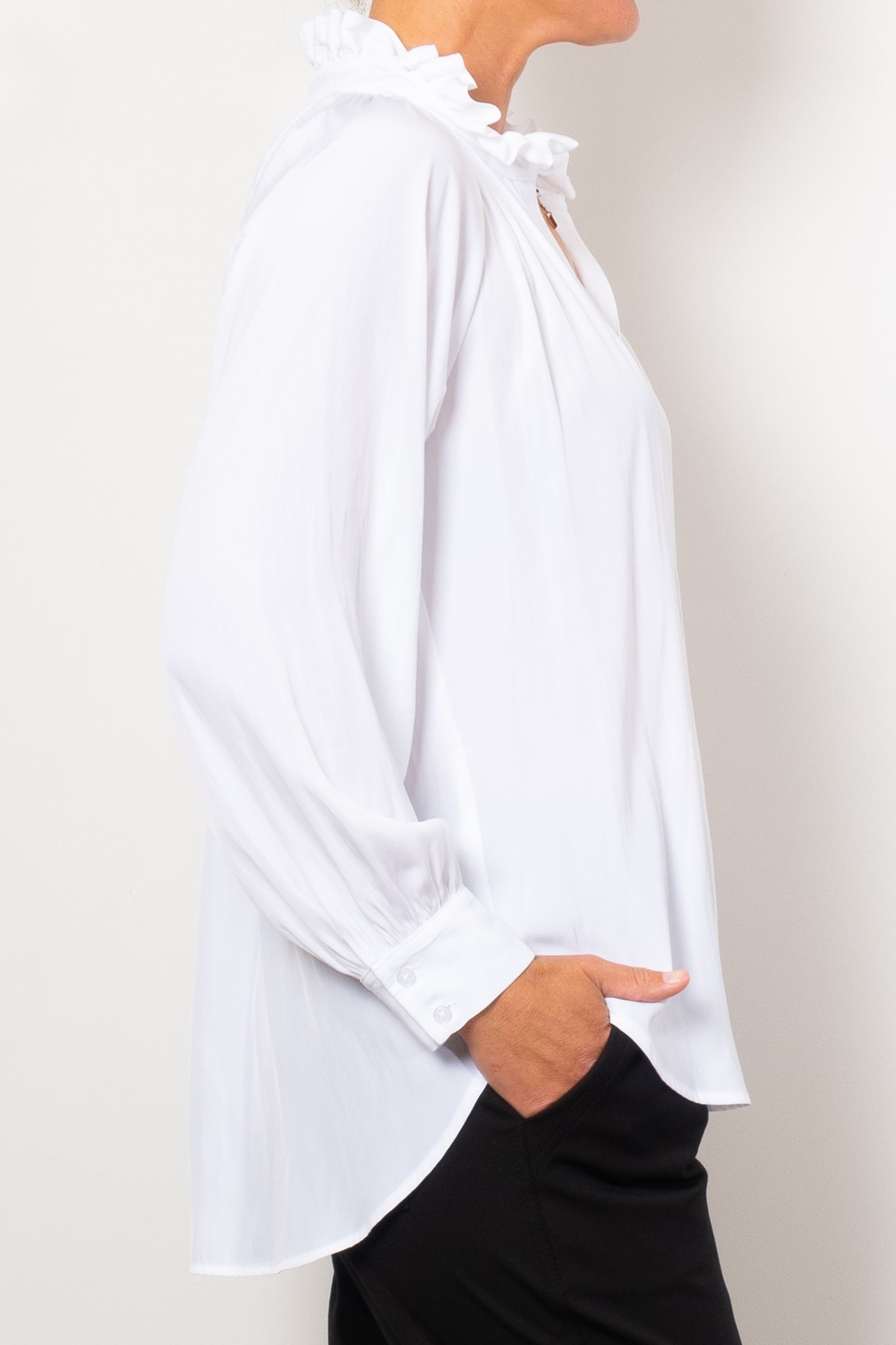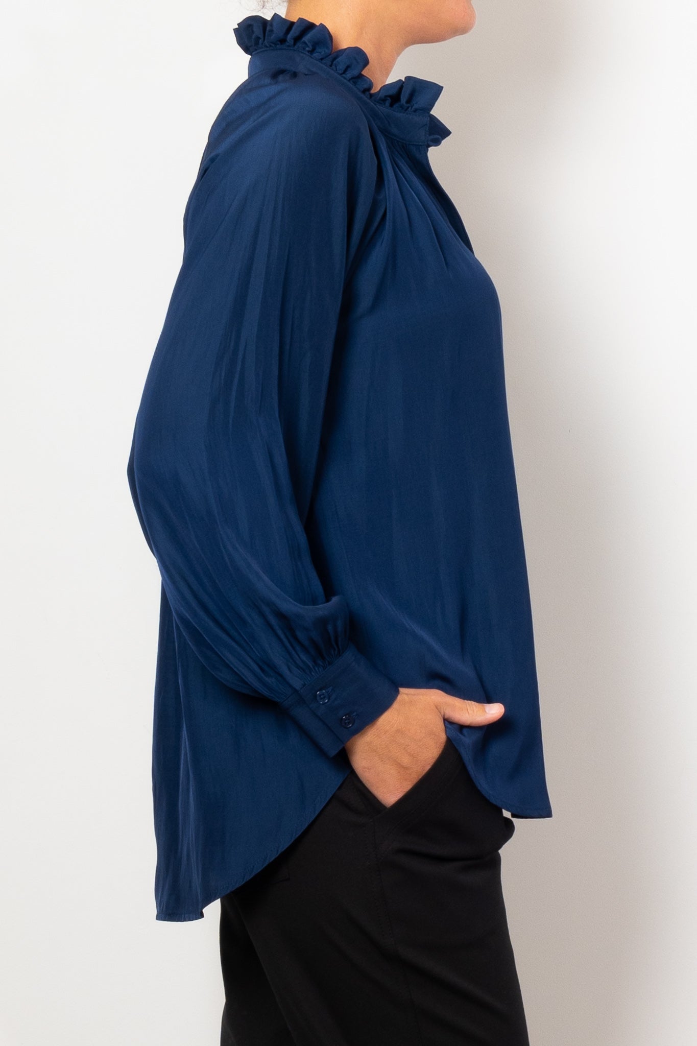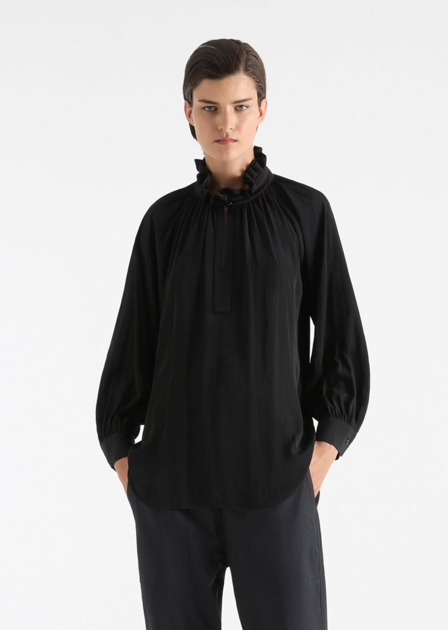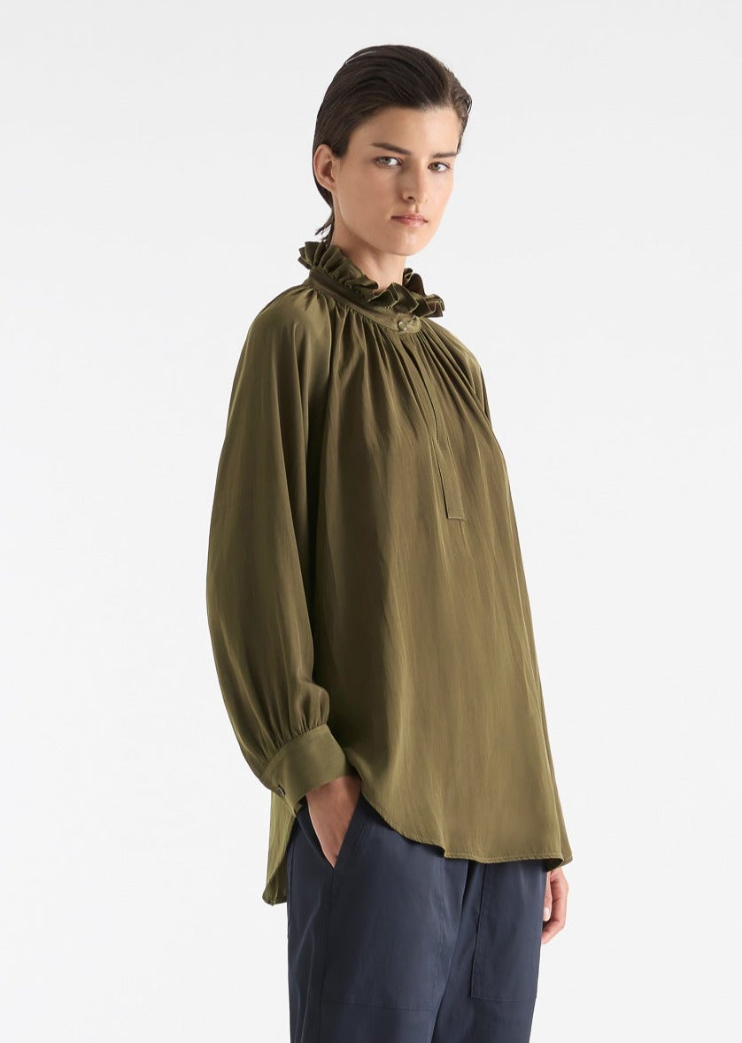 Introducing the Mela Purdie Fleur Blouse in Mache, crafted from luxurious, non-stretch Japanese fabric. This blouse features a relaxed fluidity and smooth lustre surface, perfect for adding an elegant touch to any outfit. With a feminine silhouette and full length button closure. Made with love in Australia.