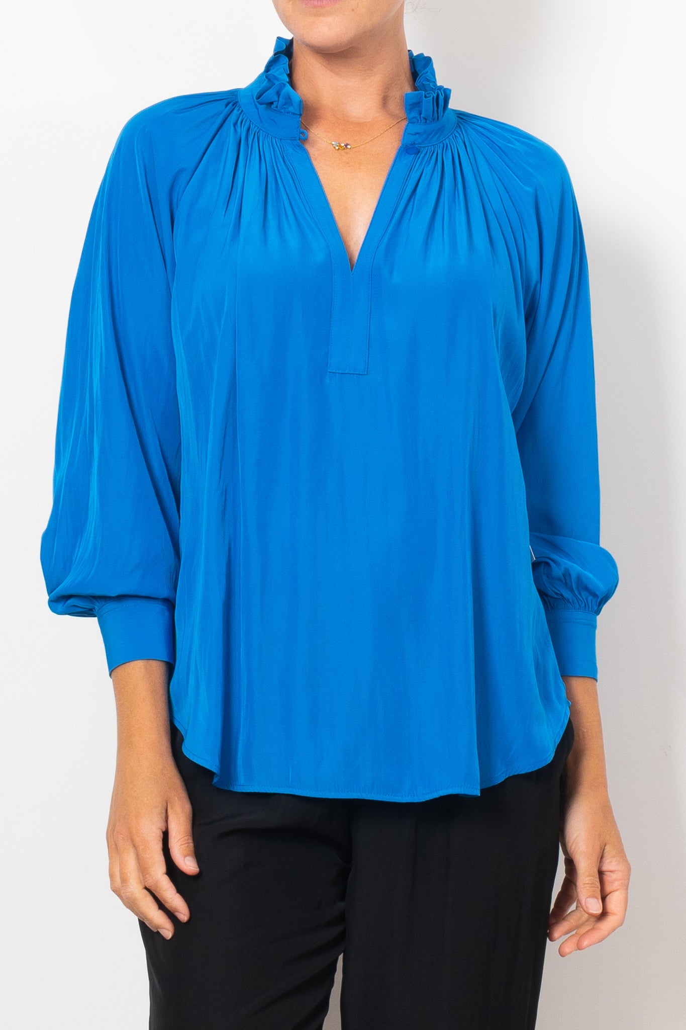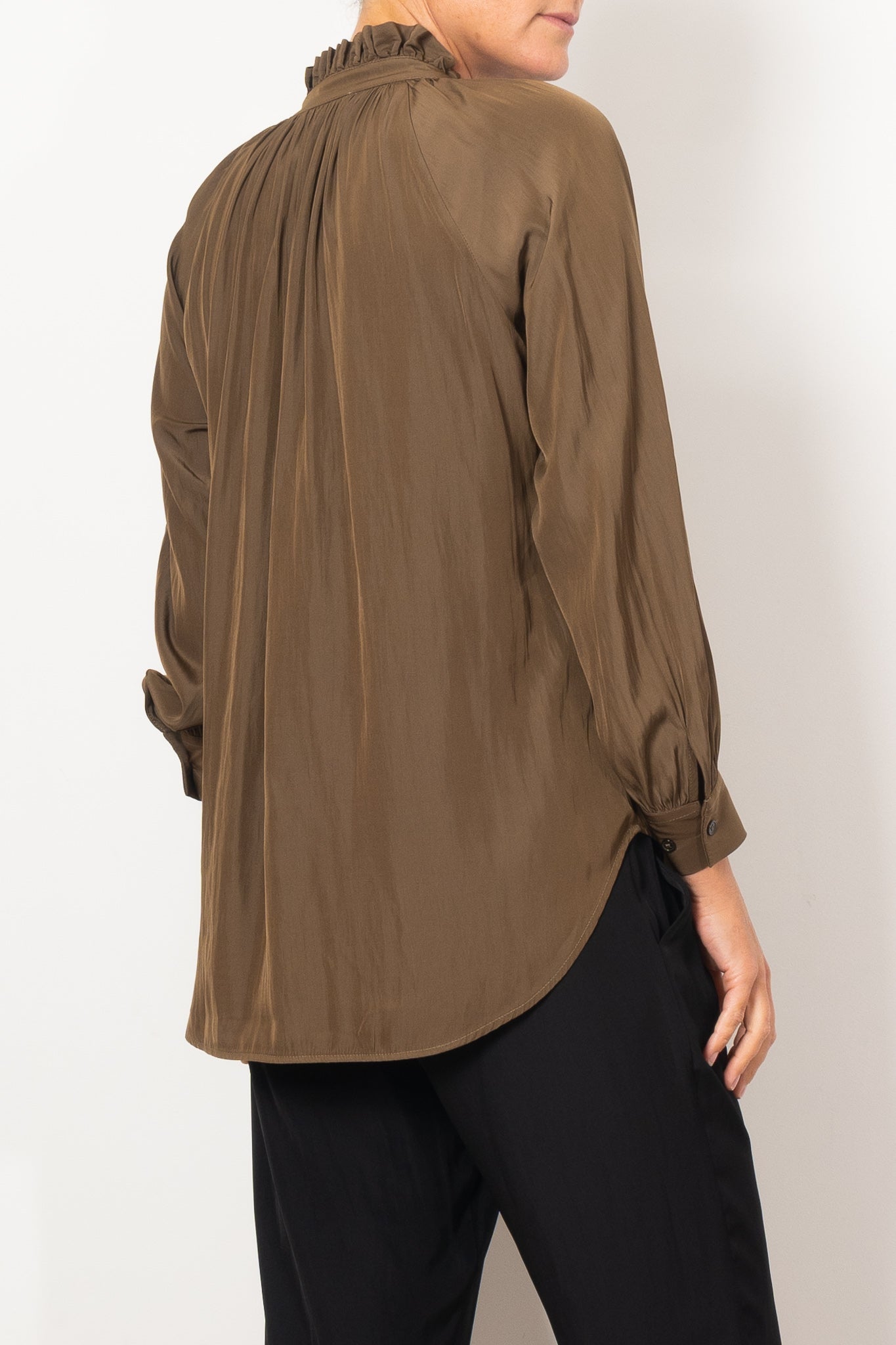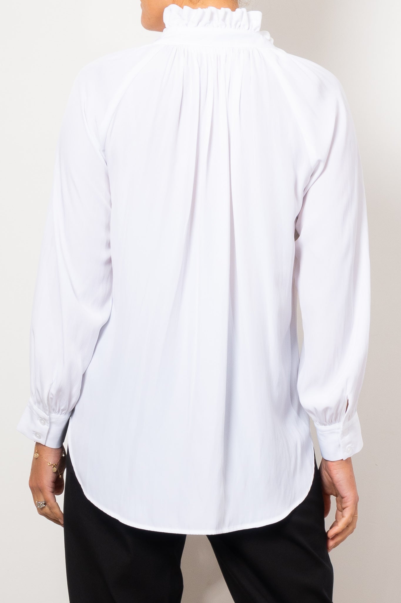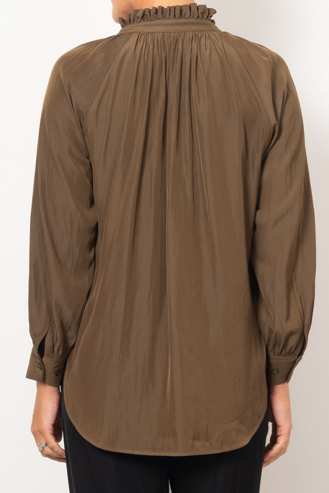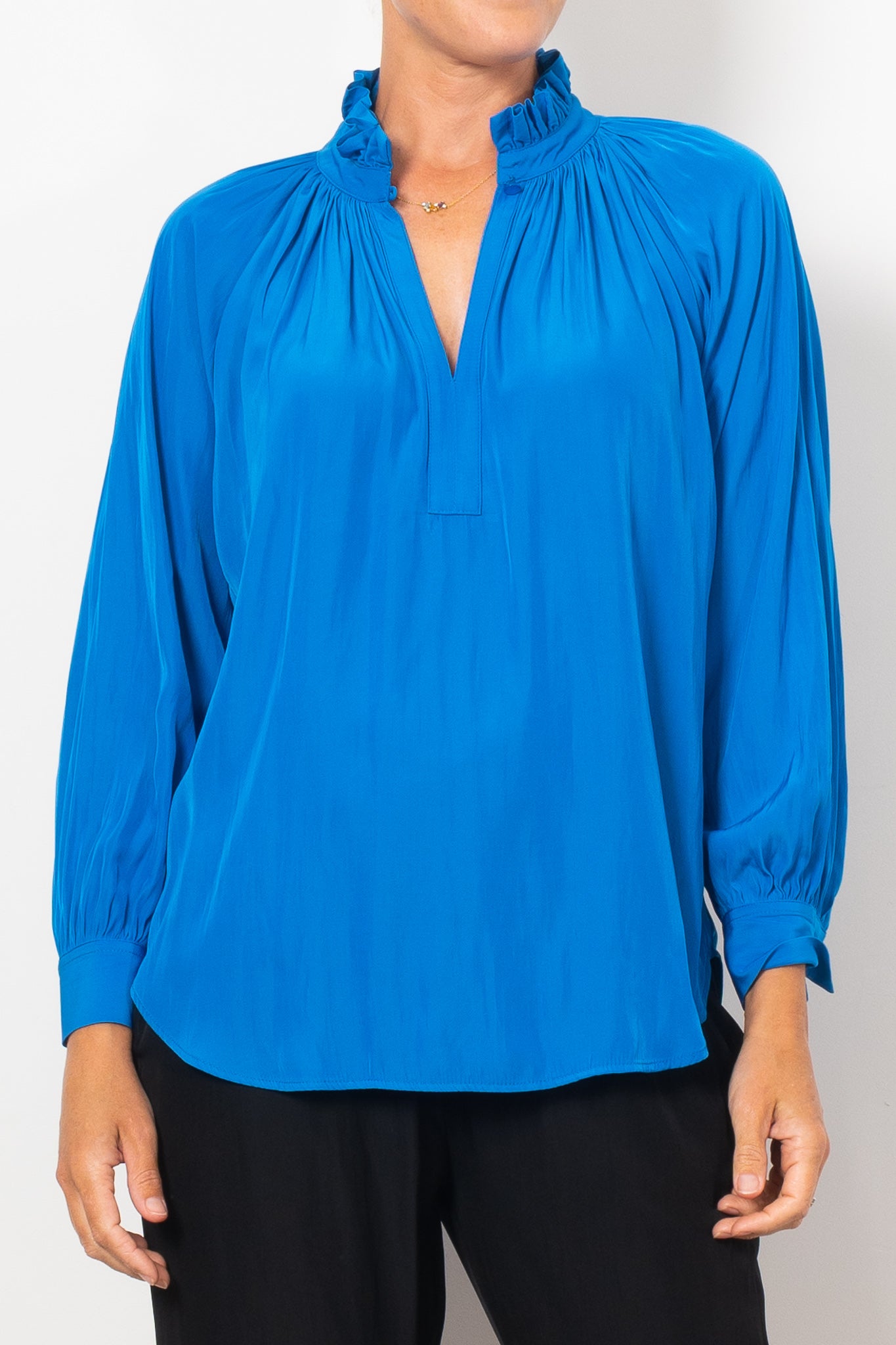 Introducing the Mela Purdie Fleur Blouse in Mache, crafted from luxurious, non-stretch Japanese fabric. This blouse features a relaxed fluidity and smooth lustre surface, perfect for adding an elegant touch to any outfit. With a feminine silhouette and full length button closure. Made with love in Australia.