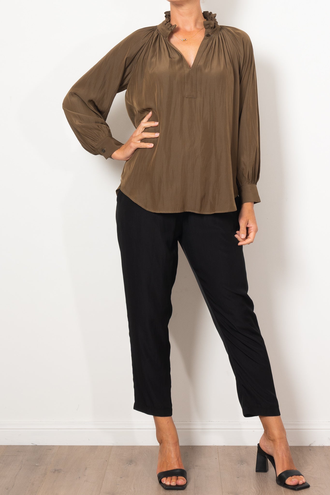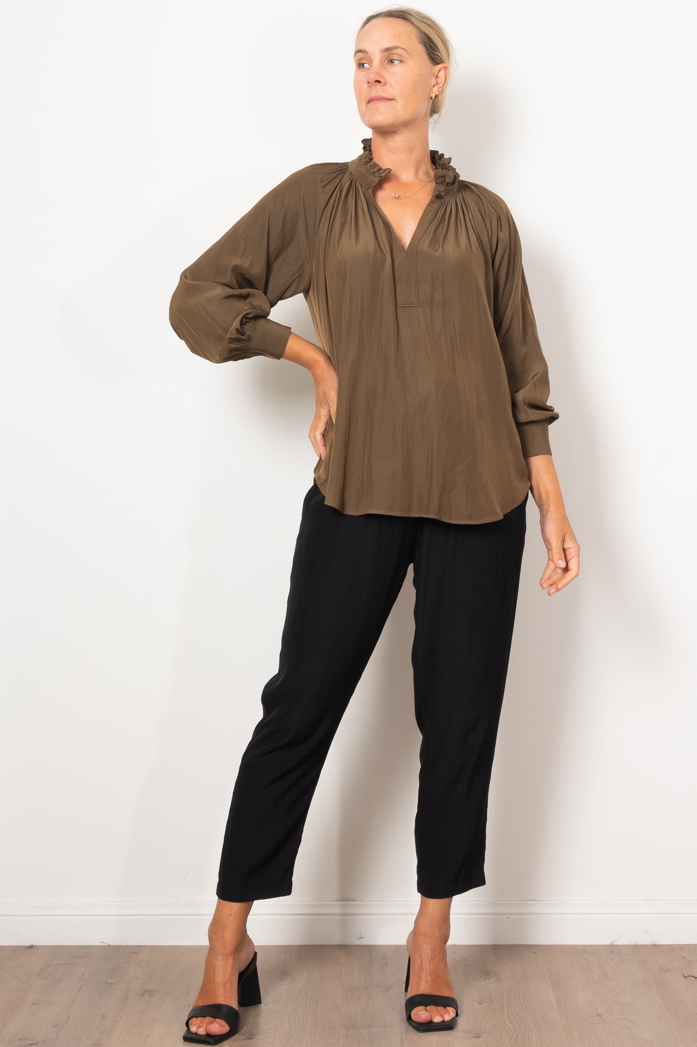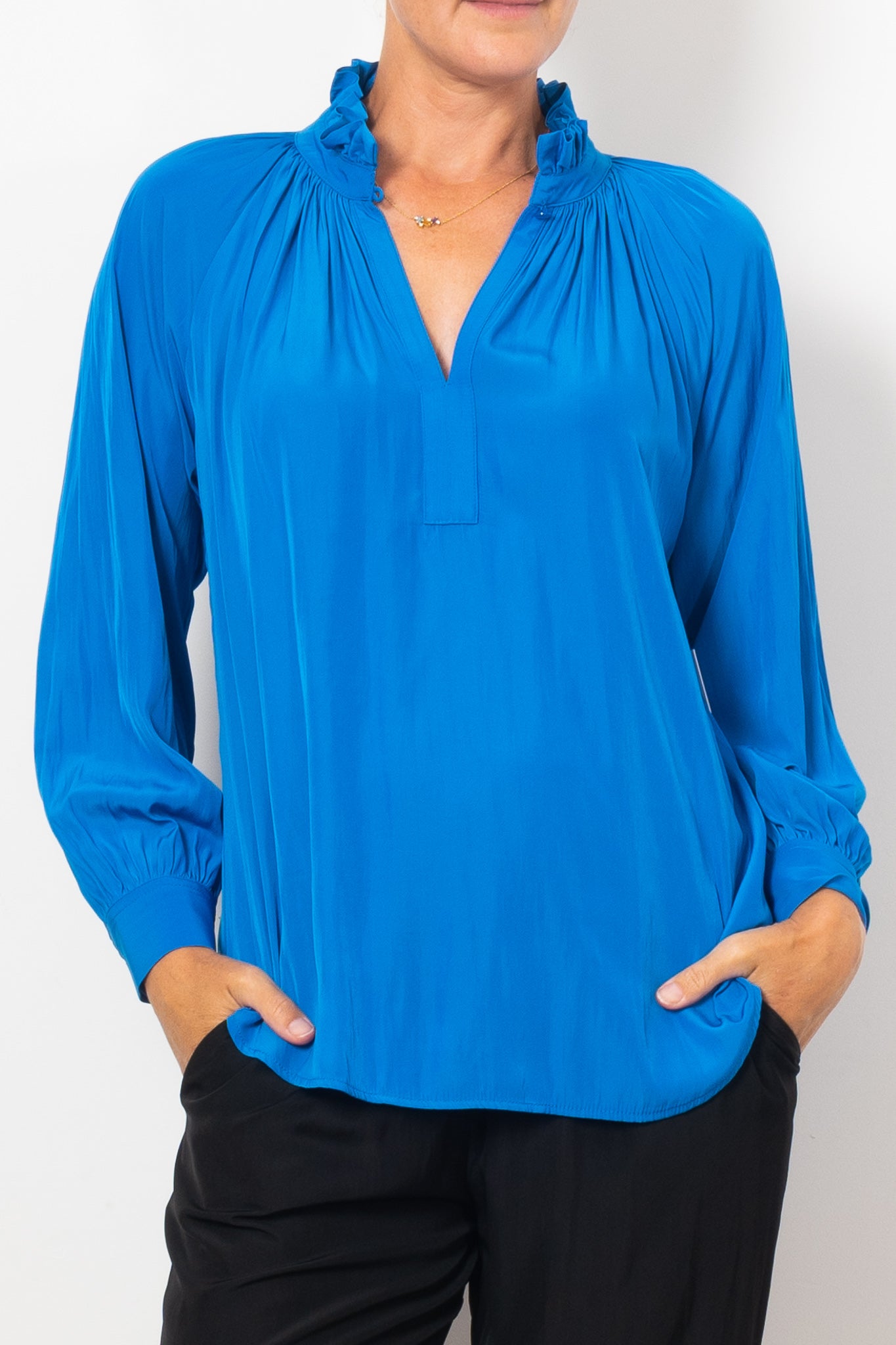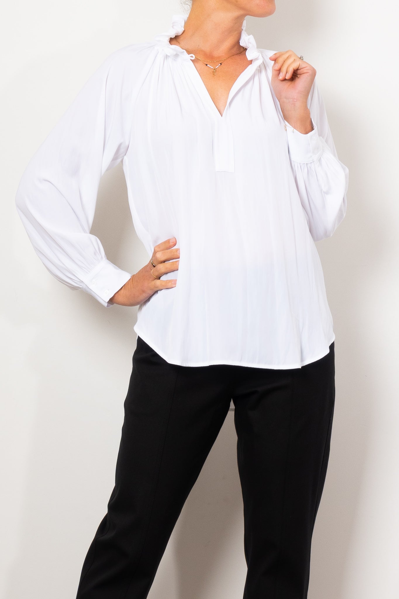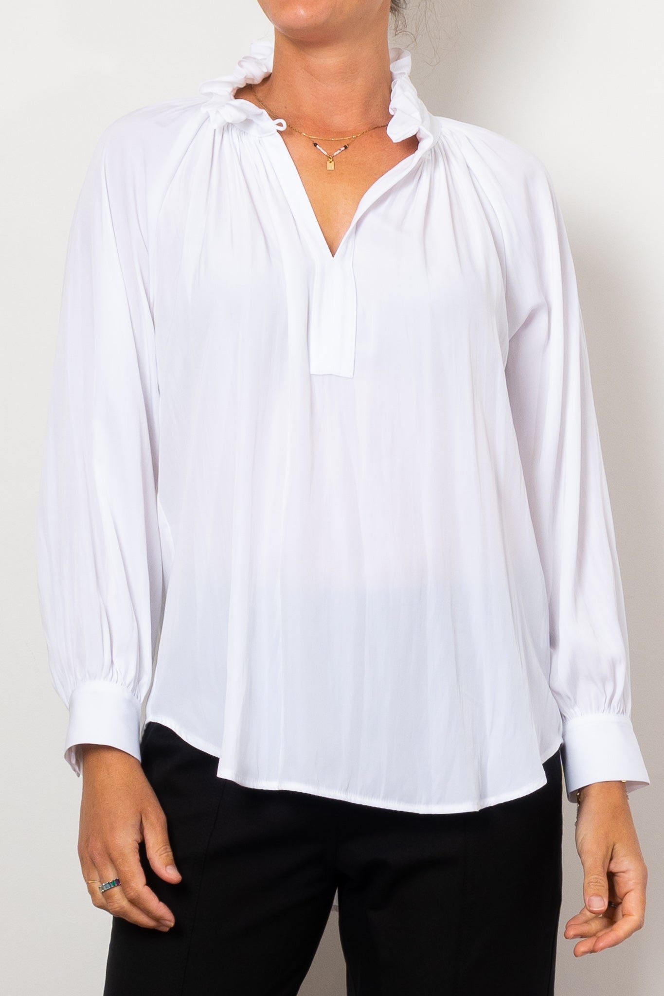 Introducing the Mela Purdie Fleur Blouse in Mache, crafted from luxurious, non-stretch Japanese fabric. This blouse features a relaxed fluidity and smooth lustre surface, perfect for adding an elegant touch to any outfit. With a feminine silhouette and full length button closure. Made with love in Australia.