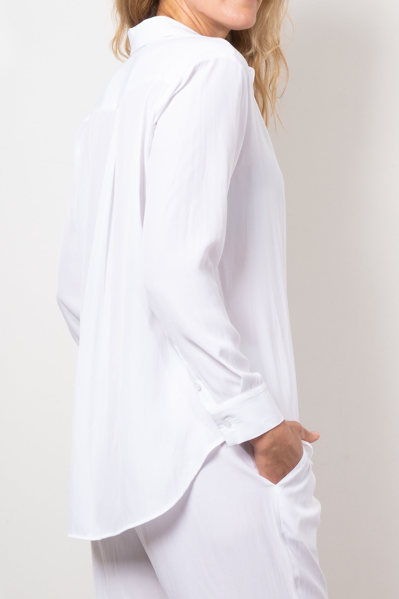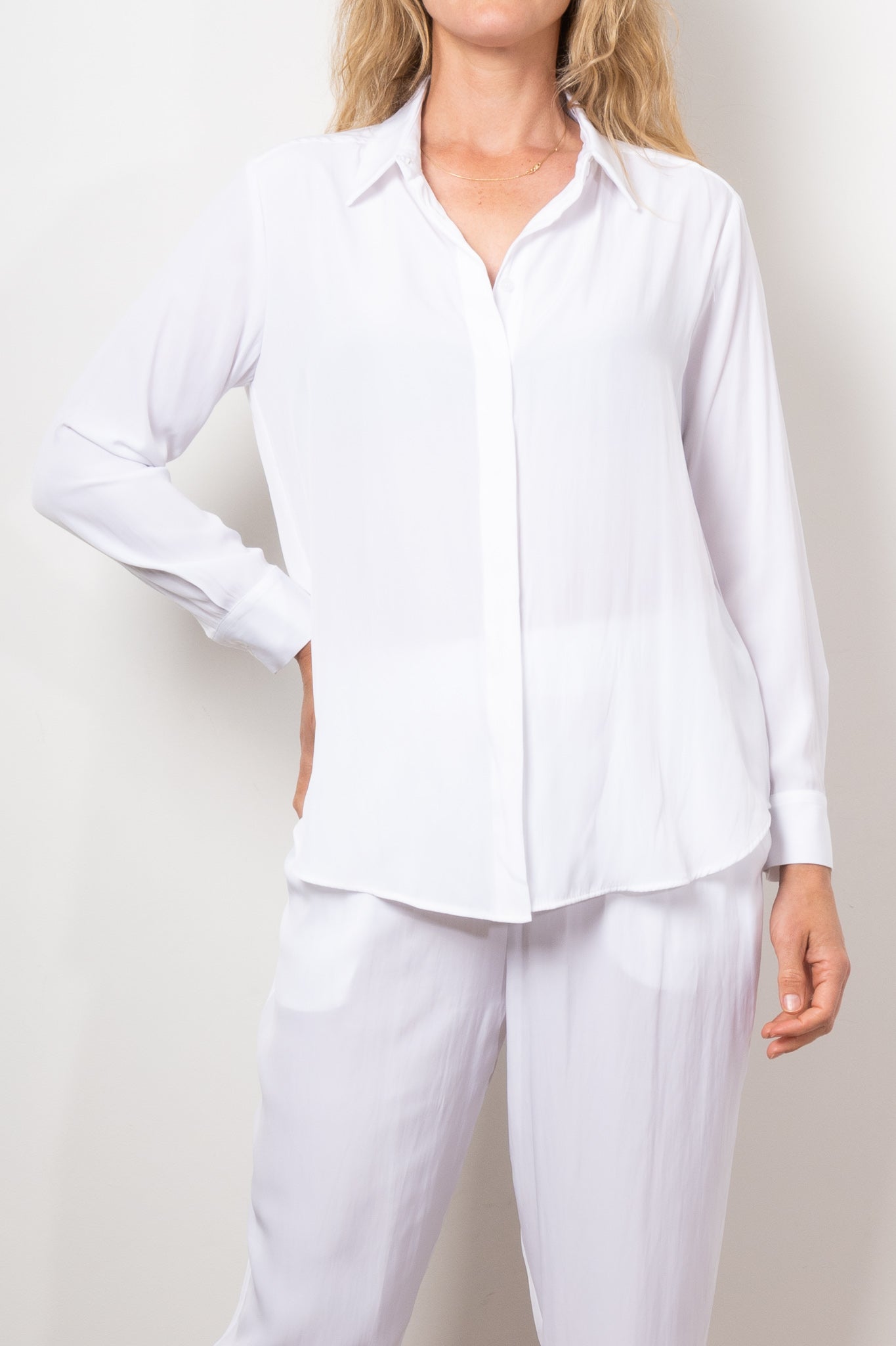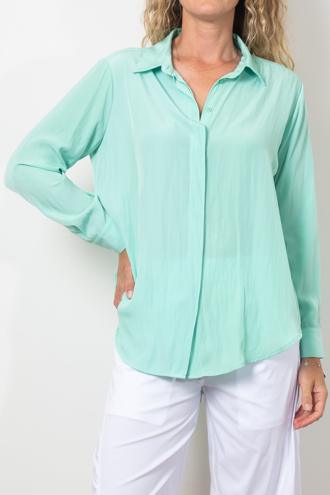 Introducing the Mela Purdie Soft Shirt in Mache - your new go-to for effortless style! Made with luxurious mache fabric, this classic shirt features a concealed front placket, pleat detailing, and a classic collar for a timeless look.