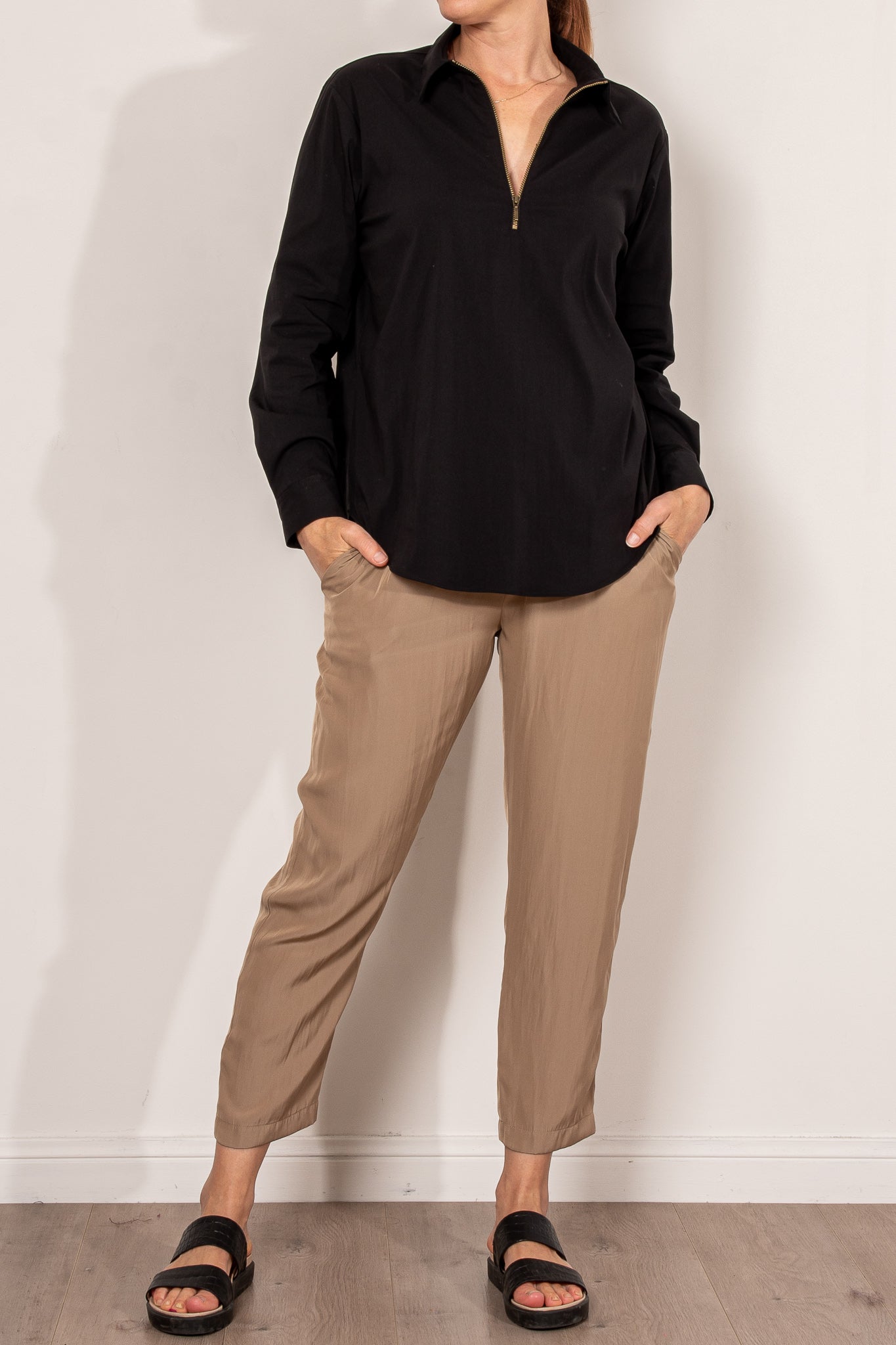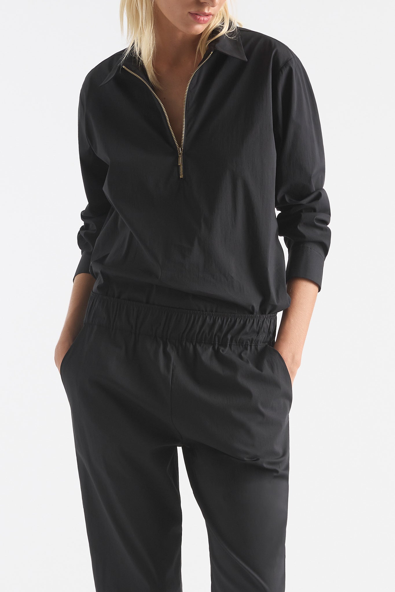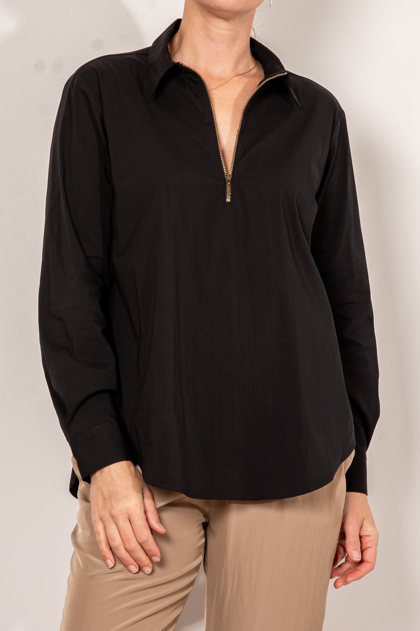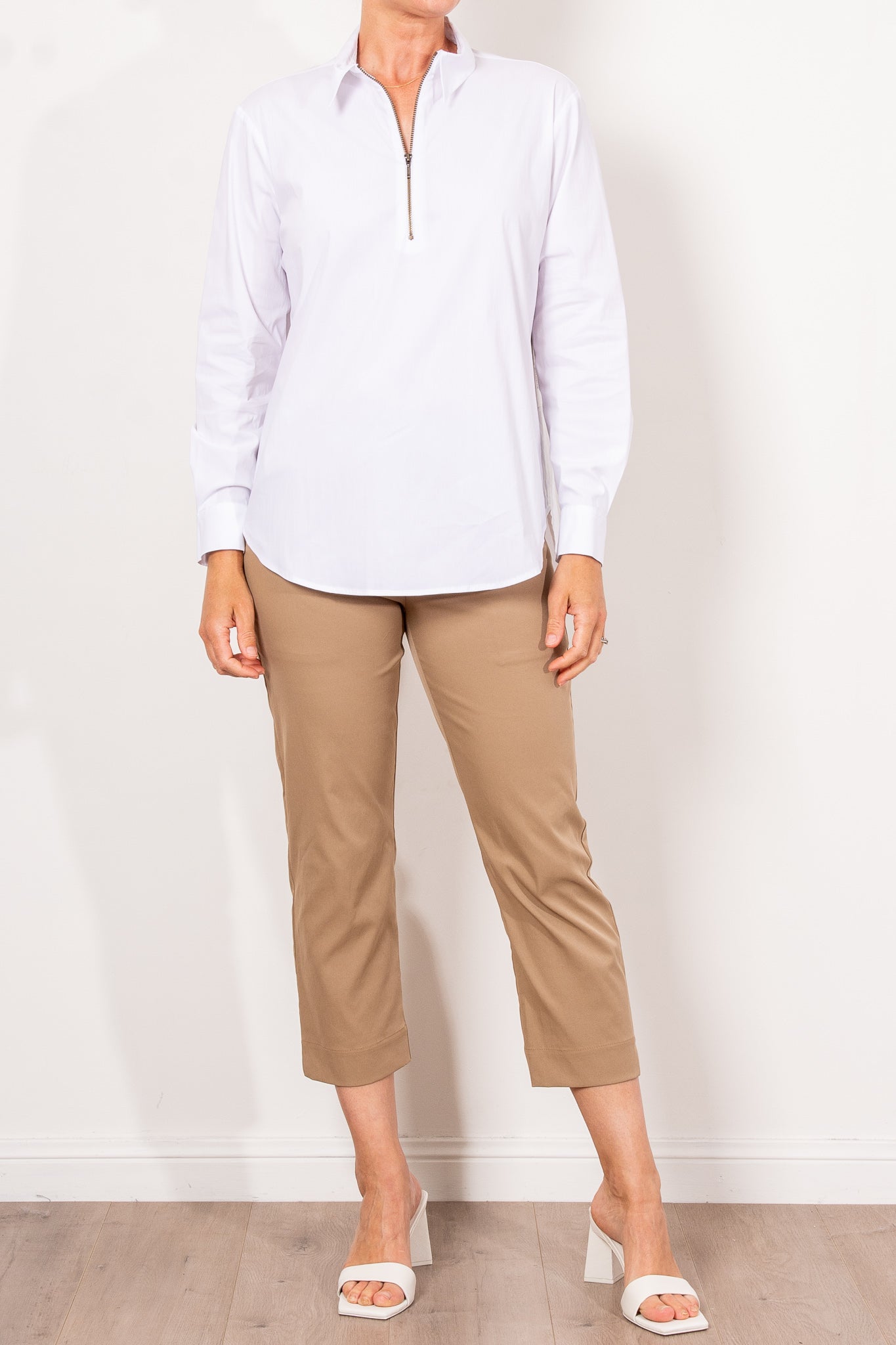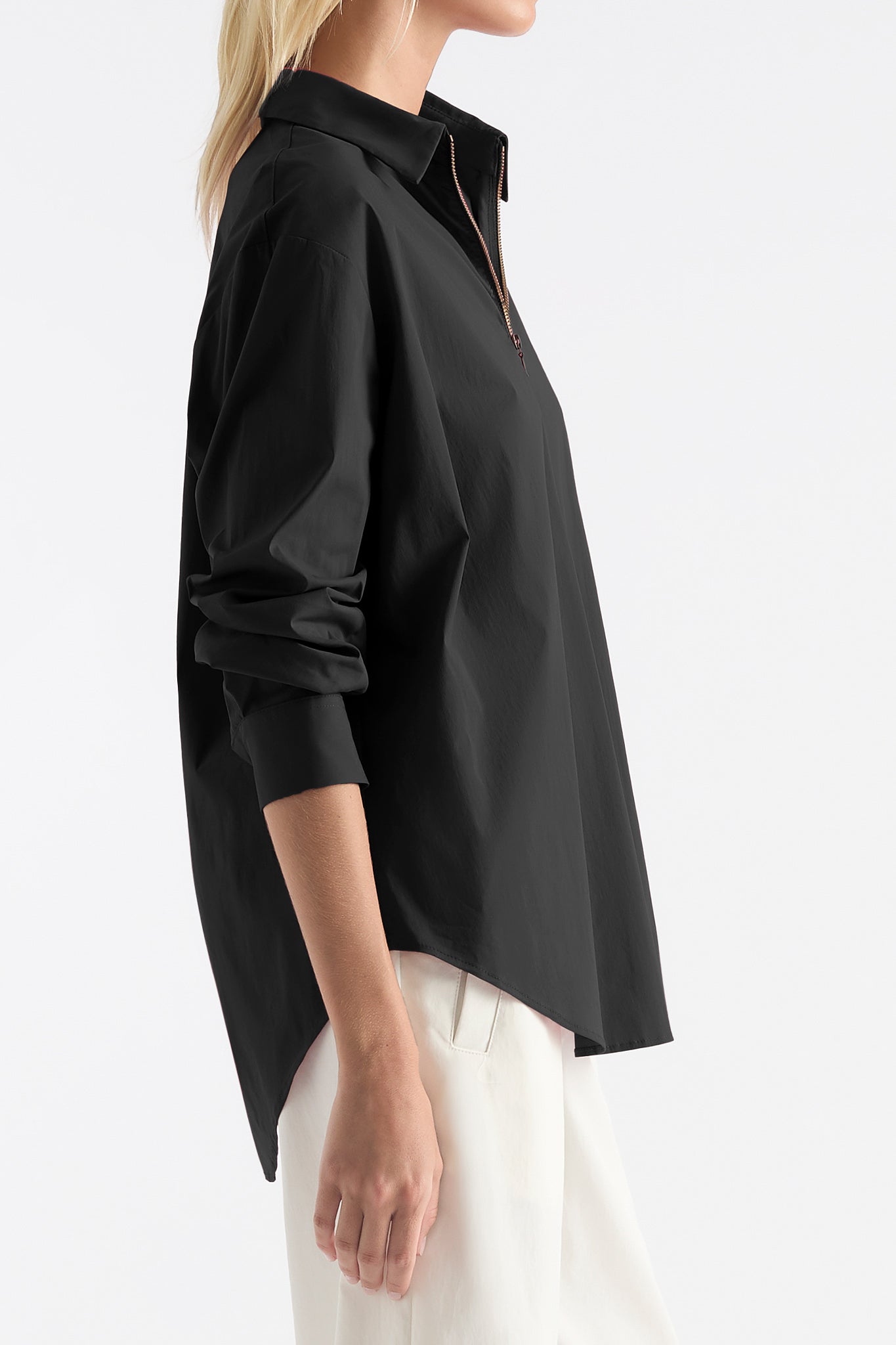 Feel beautiful and confident in the Mela Purdie Zip Front Shirt Microprene. This tailored fit top is made with a cotton-rich European fabrication and high-stretch fabric for ultimate comfort. With a crisp collar, full-length sleeves, and curved hemline, this shirt will have you looking fabulous! Live your best life in your stylish Australian-designed top.