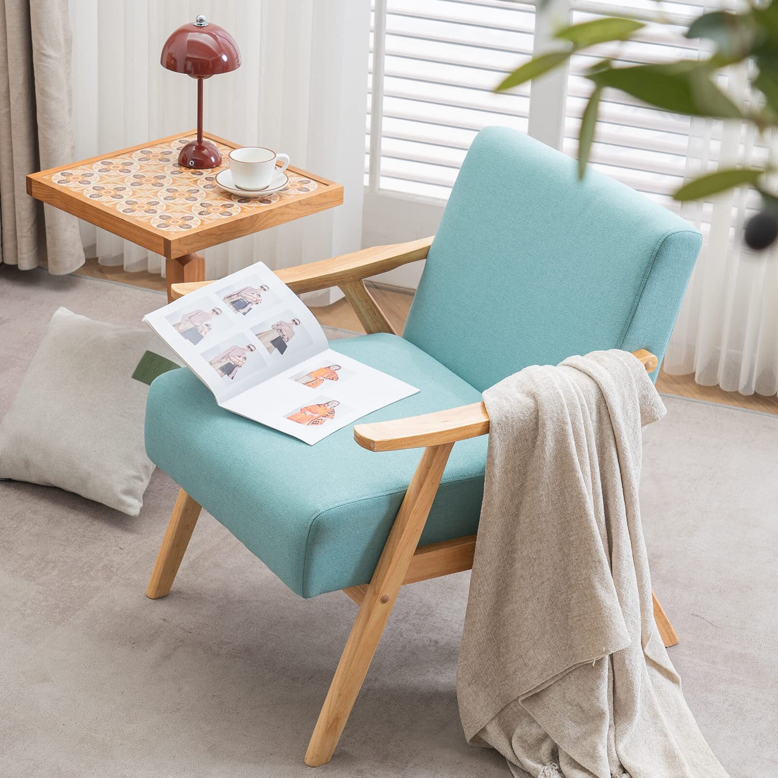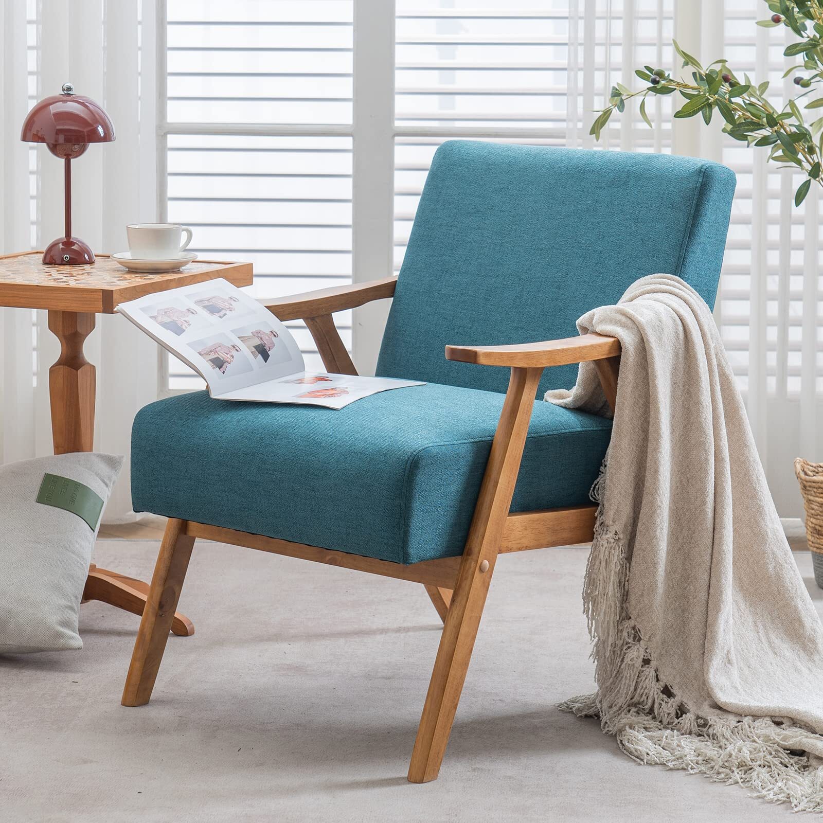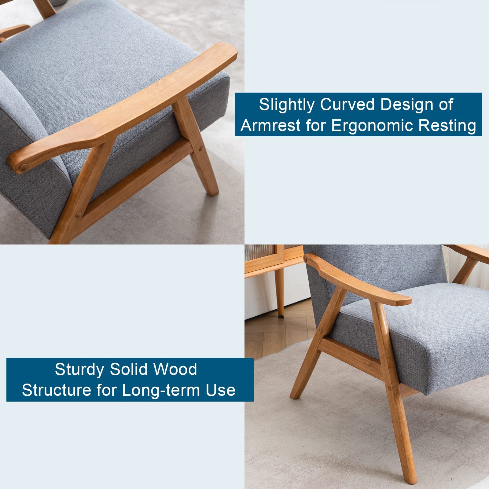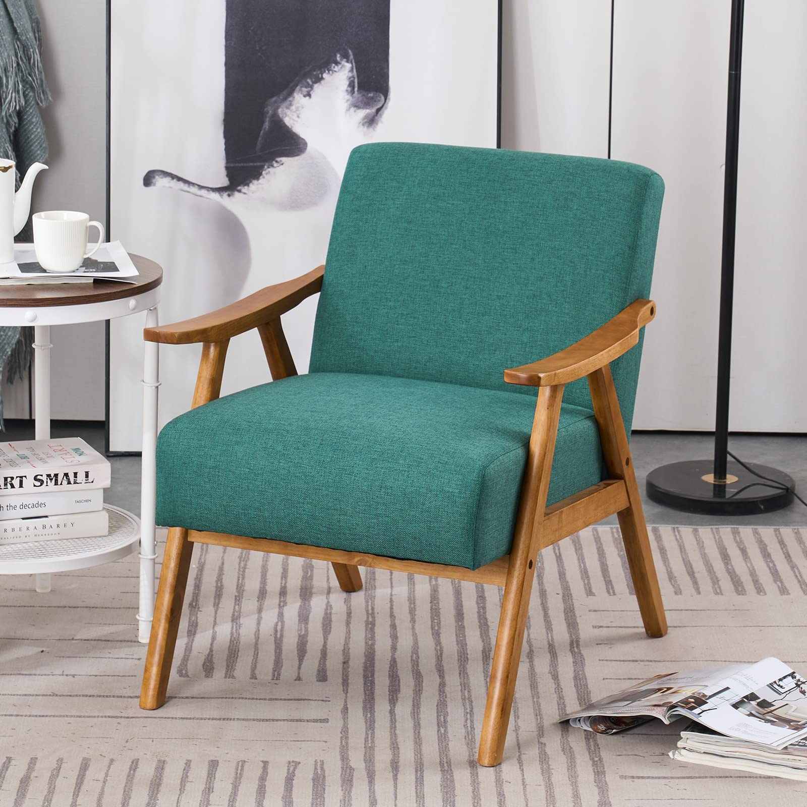 Modern Arm Chair Wooden Accent Chair Upholstered Lounge Chair Grey/Light Blue/Pink/Teal/Beige/Green/Burnt Orange