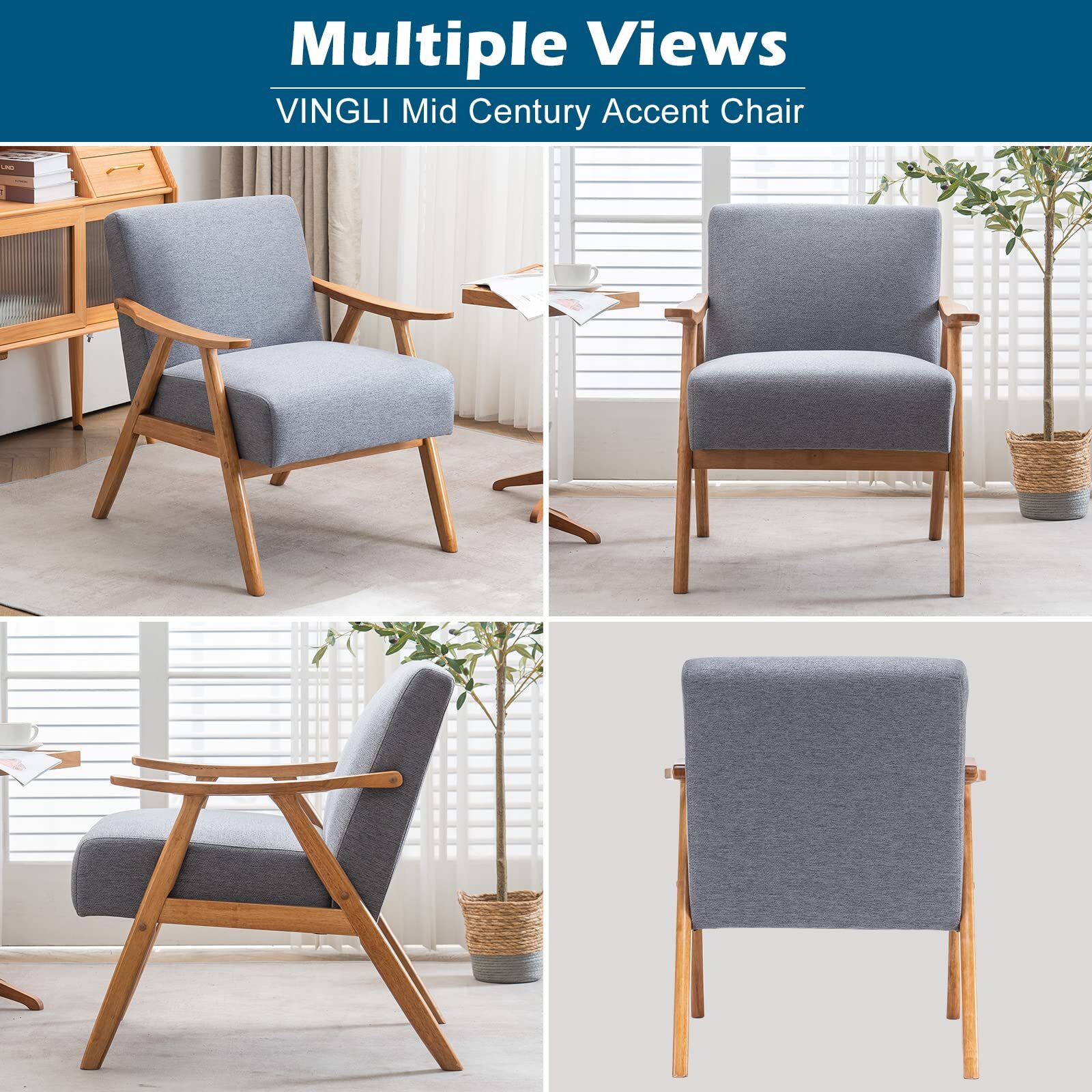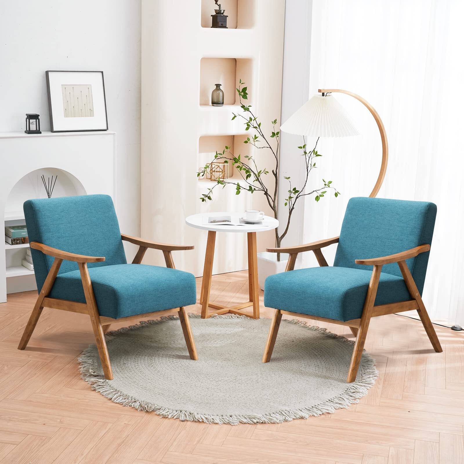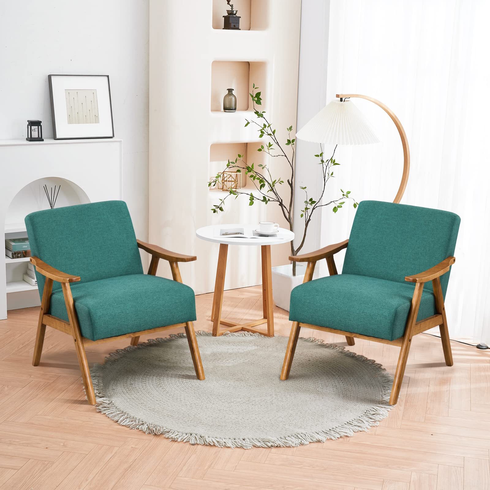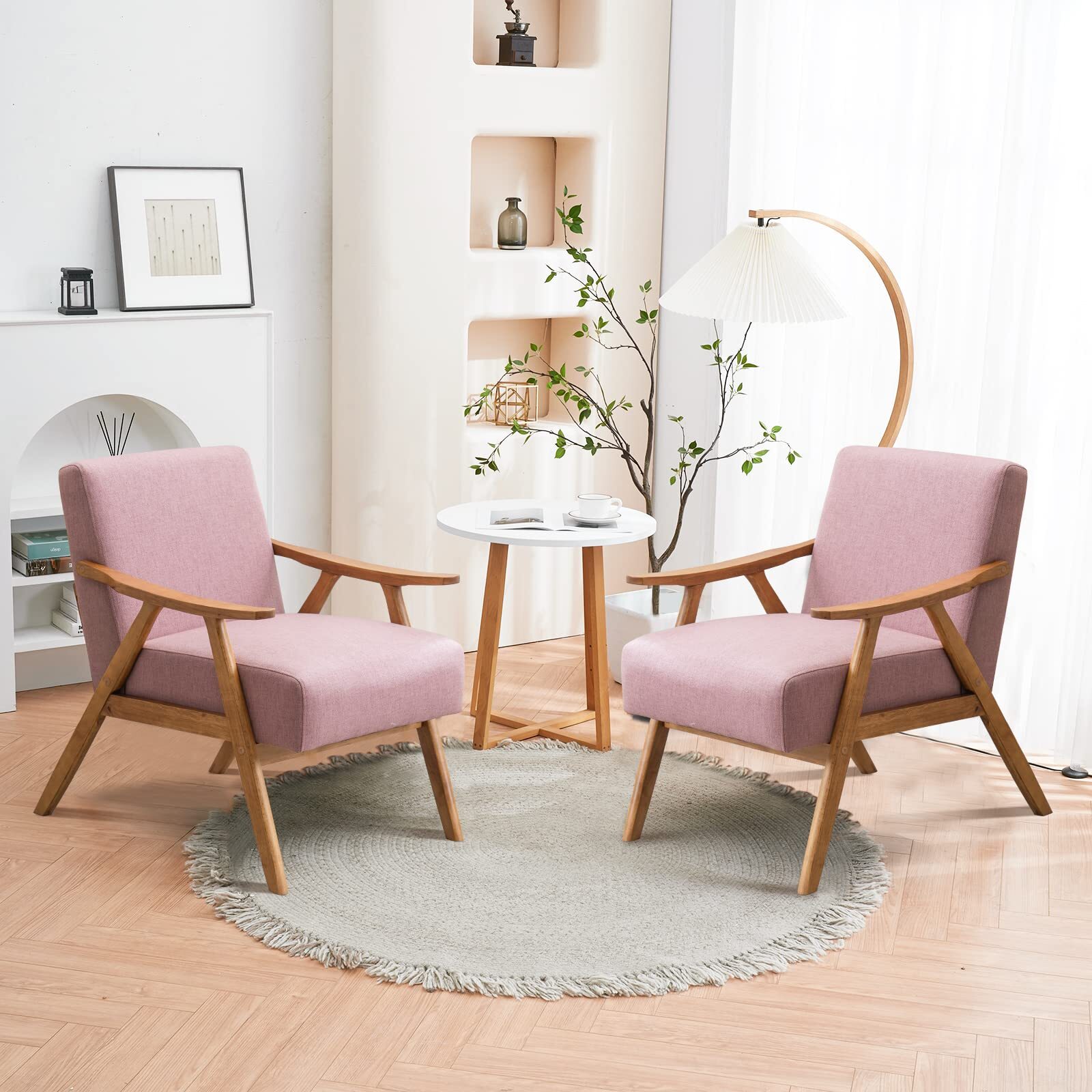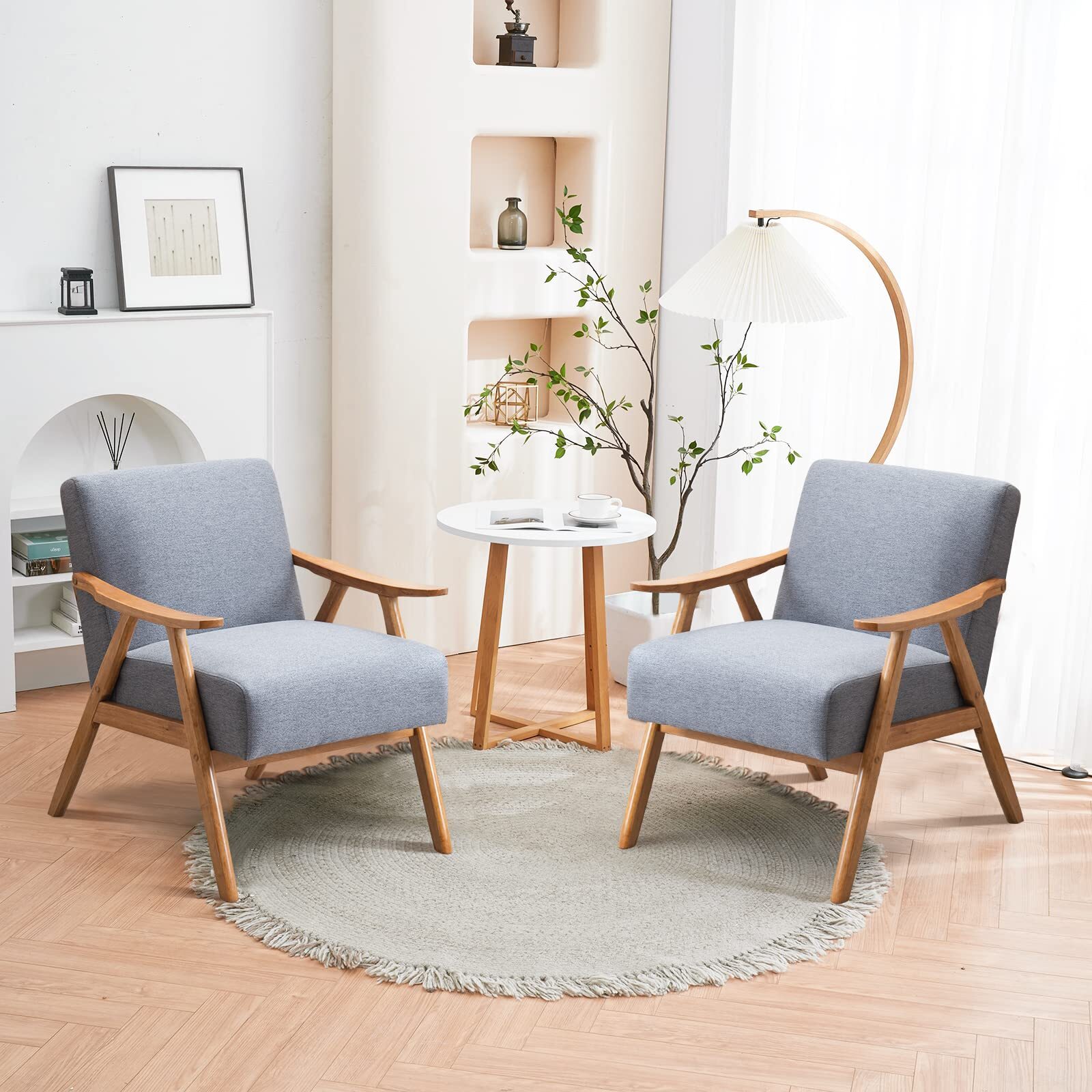 Modern Arm Chair Wooden Accent Chair Upholstered Lounge Chair Grey/Light Blue/Pink/Teal/Beige/Green/Burnt Orange