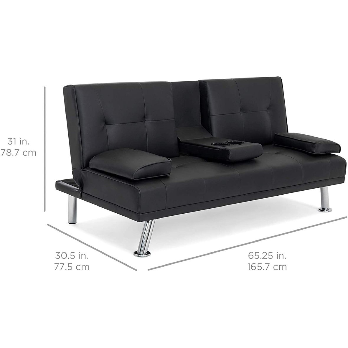 - ROOM FOR 2: This stylish futon sofa has a 500-pound weight limit that lets you lounge in good company while utilizing a fold-down armrest with convenient cupholders in the middle