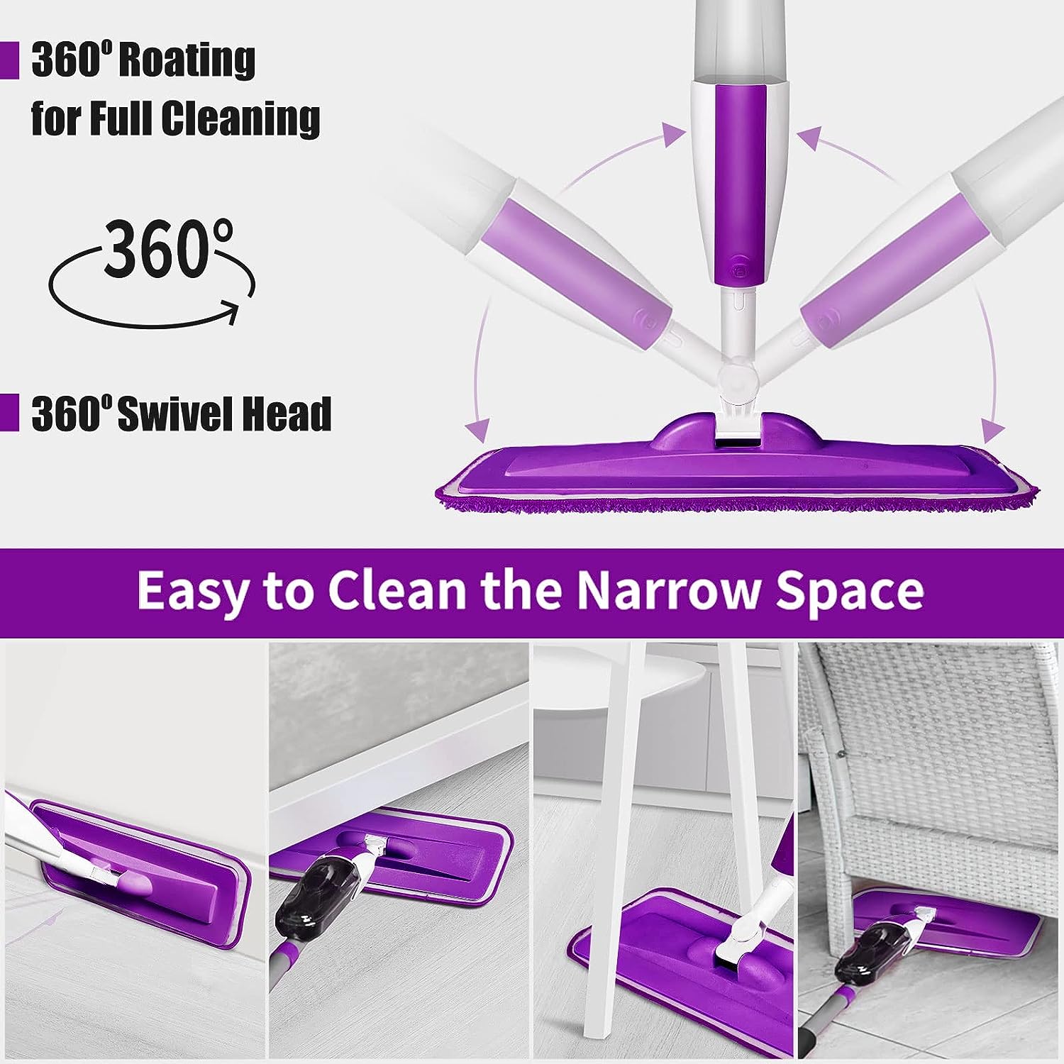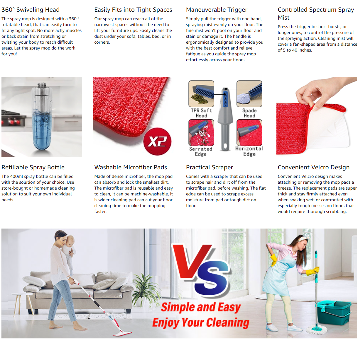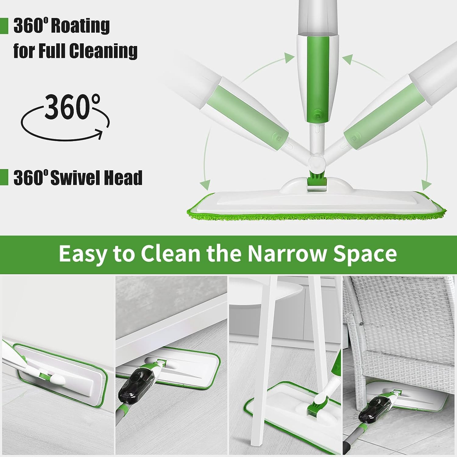 - ❤EASY TO USE: No batteries need, just fill the bottle, pull trigger to spray mist, then mop the floor. Works well even when the pad is dry. Rotating head can easily reach any area. Easily cleans dust from under your sofa, table, bed or any other tight spot. Works well on any flooring.