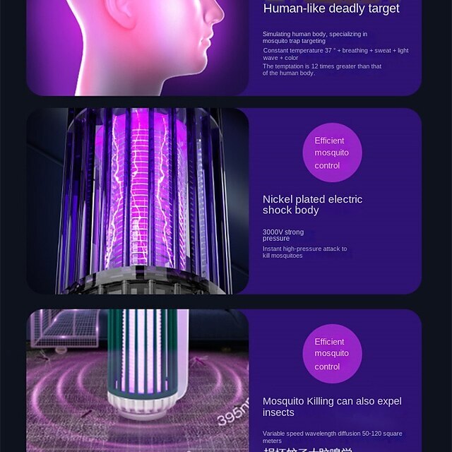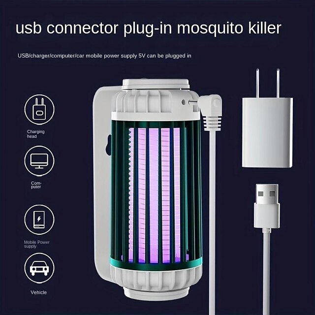 • Mosquito Trap Electric USB Portable Silent Killer Lamp Electric Bug Zapper Inhalation Mosquito Killer Lamp Household Outdoor Rechargeable Mosquito Trap Wall Mountable Desktop Friendly