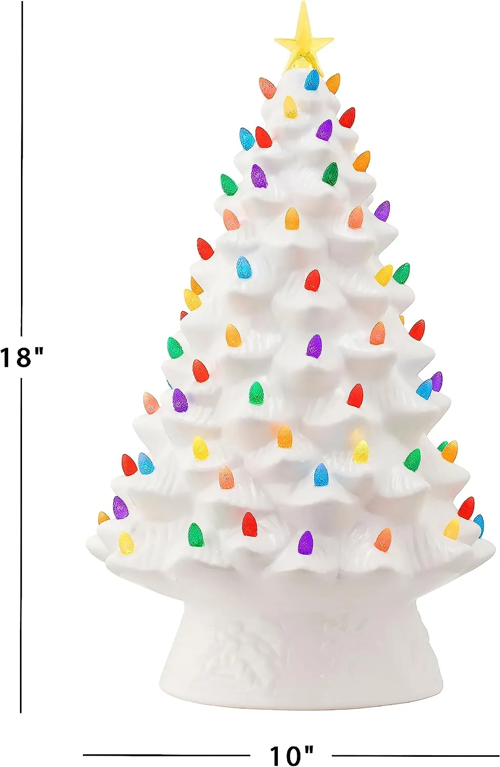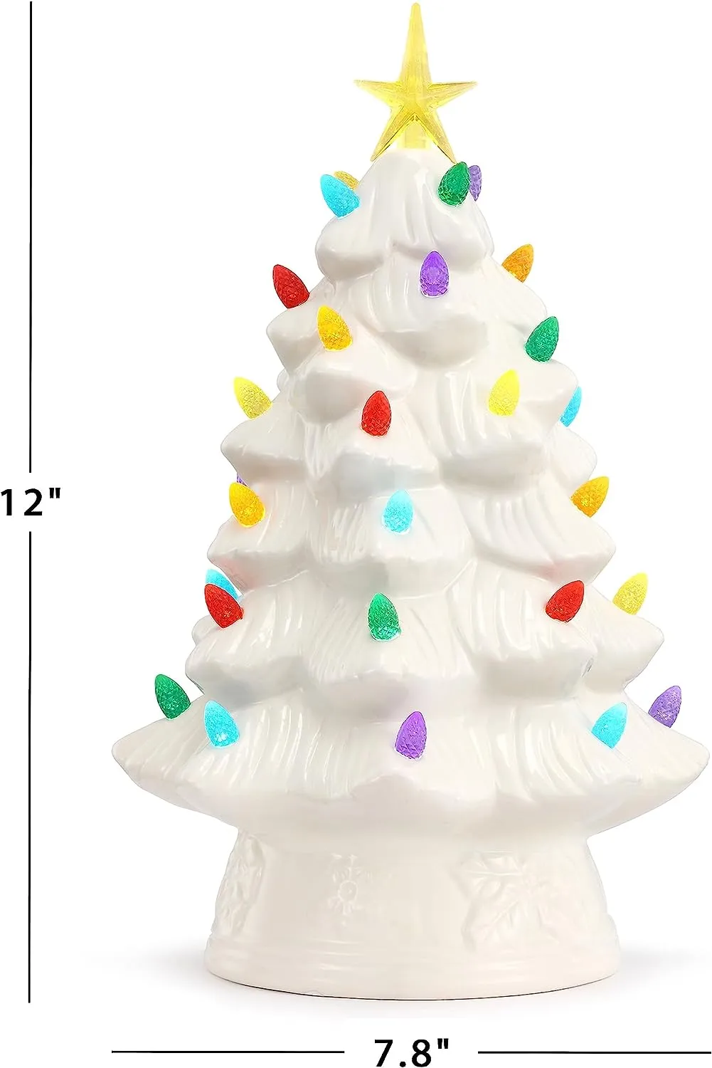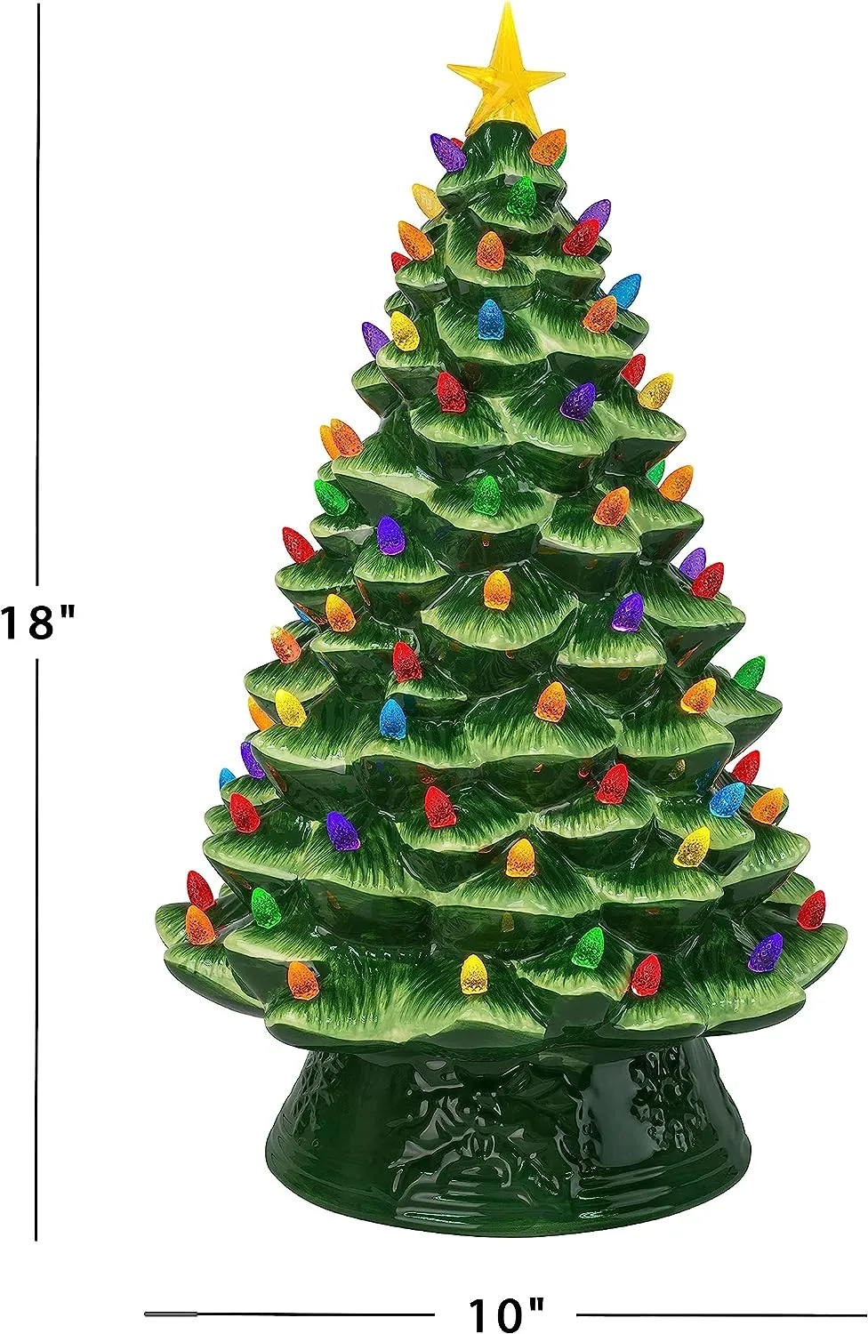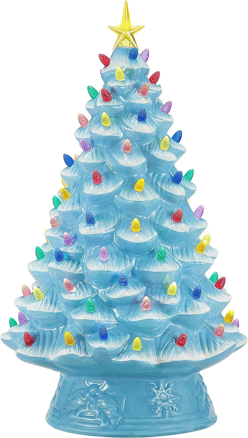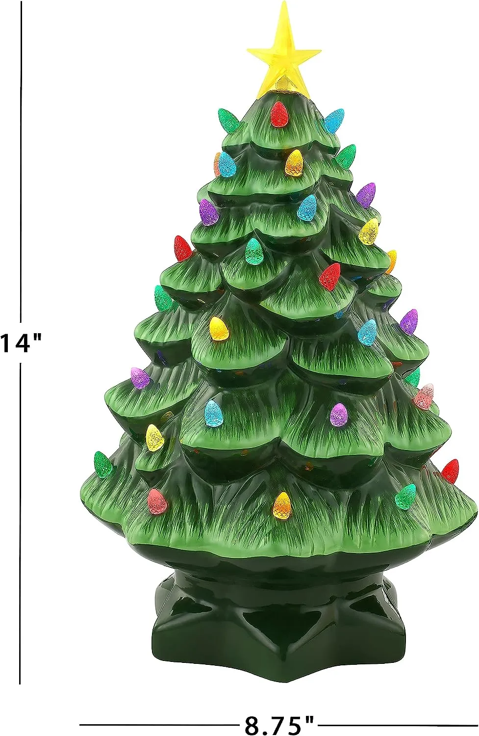 FEATURES LED LIGHTS: LED lights radiate through the multi-colored faceted bulbs, and a bright yellow star illuminates the top of the Christmas tree with a shiny hand-painted finish