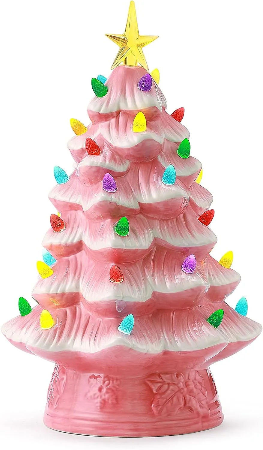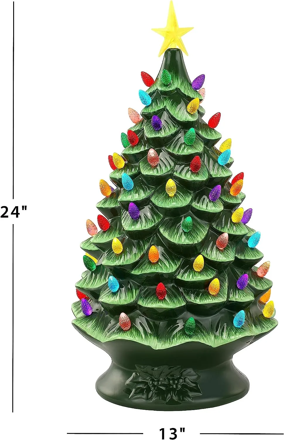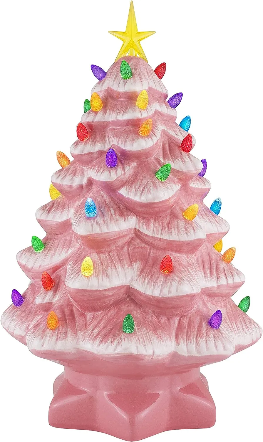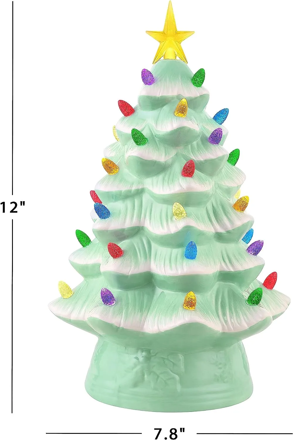 FEATURES LED LIGHTS: LED lights radiate through the multi-colored faceted bulbs, and a bright yellow star illuminates the top of the Christmas tree with a shiny hand-painted finish