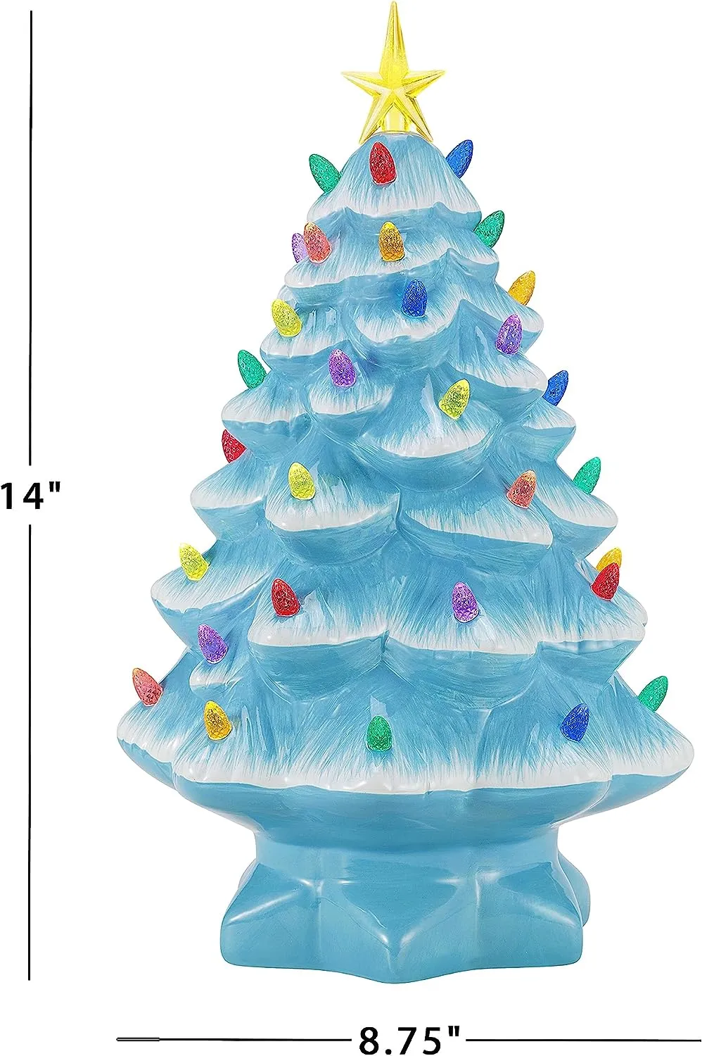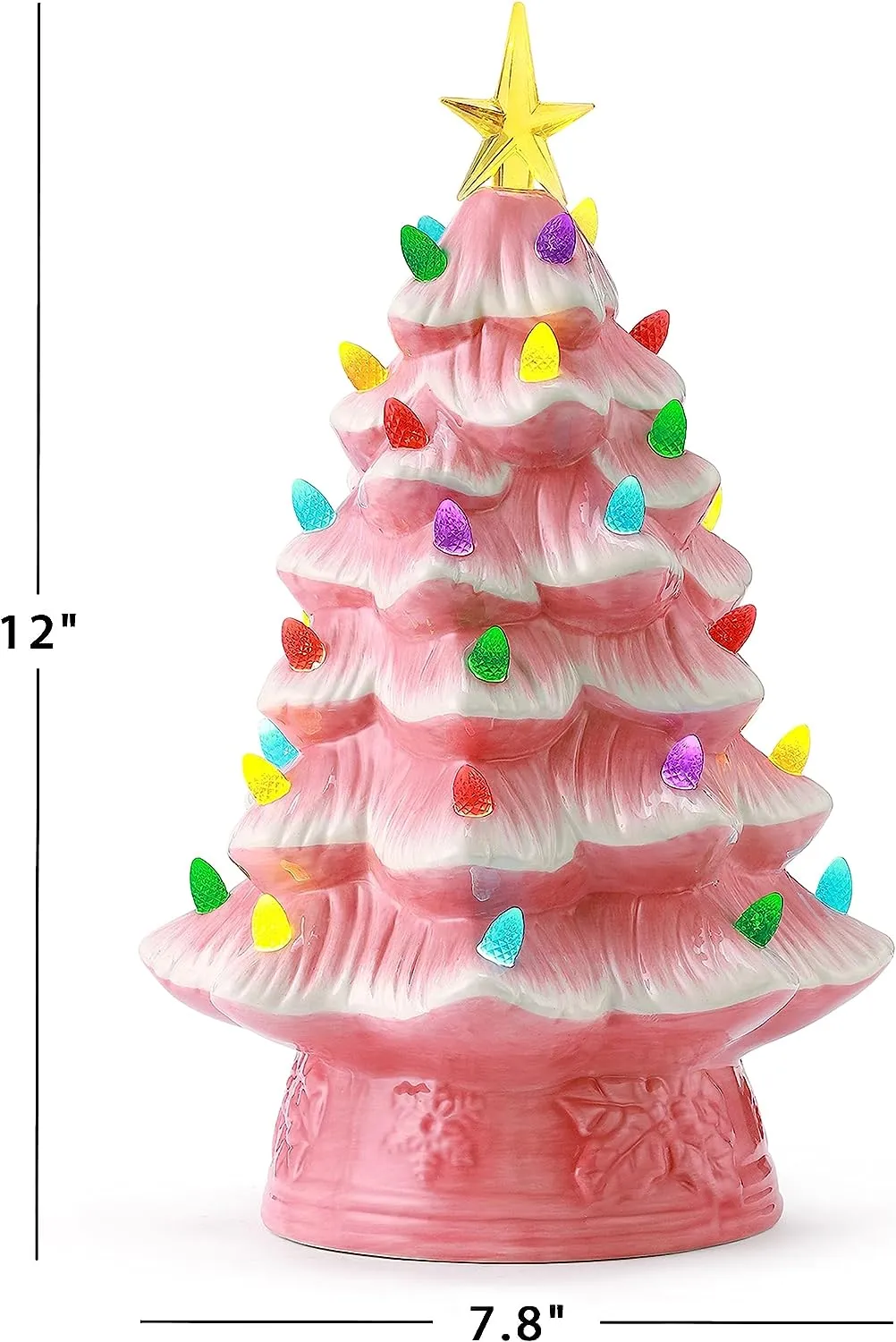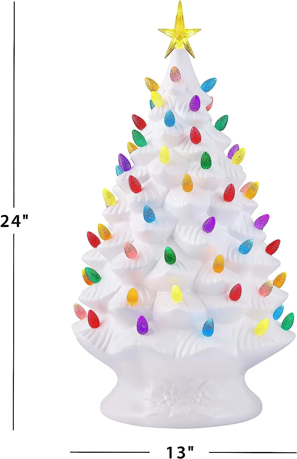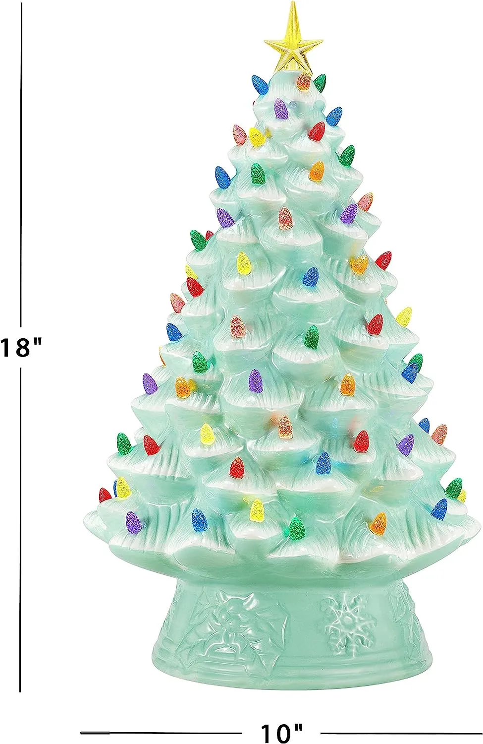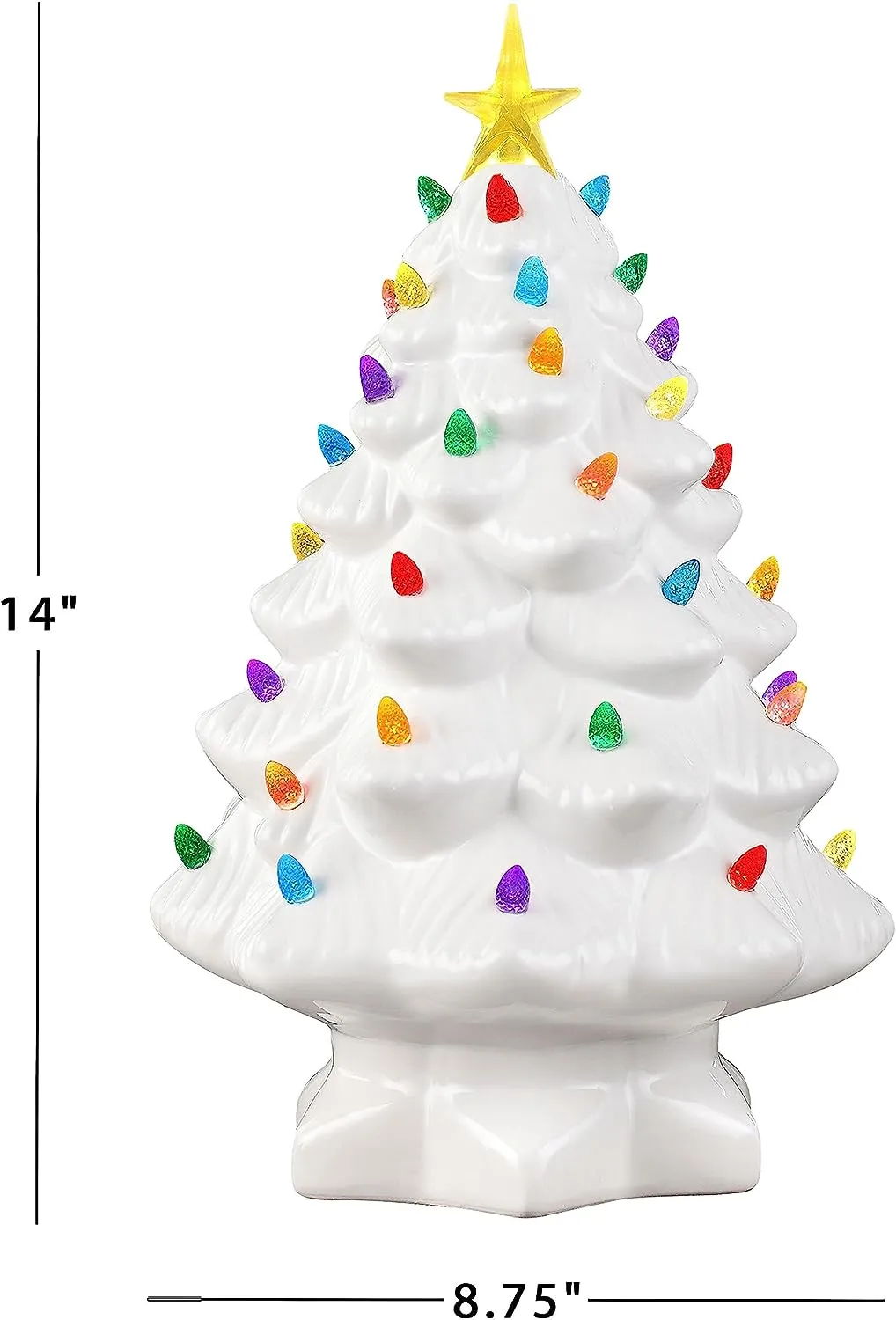 FEATURES LED LIGHTS: LED lights radiate through the multi-colored faceted bulbs, and a bright yellow star illuminates the top of the Christmas tree with a shiny hand-painted finish