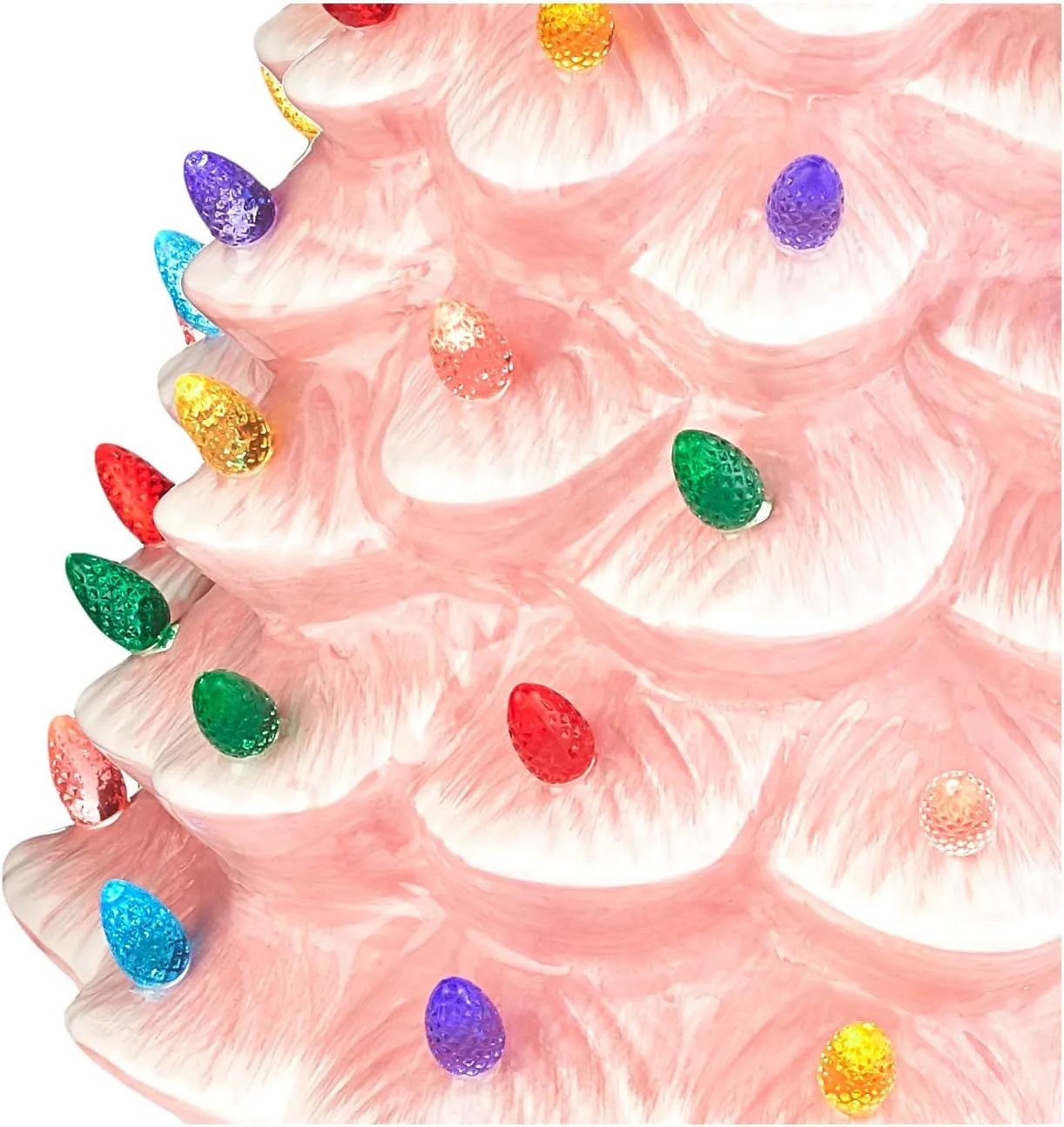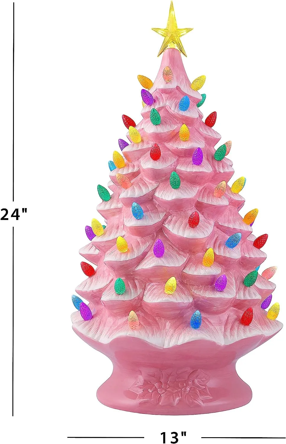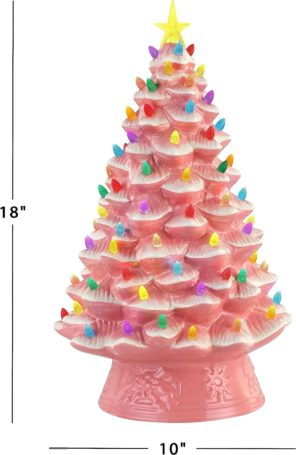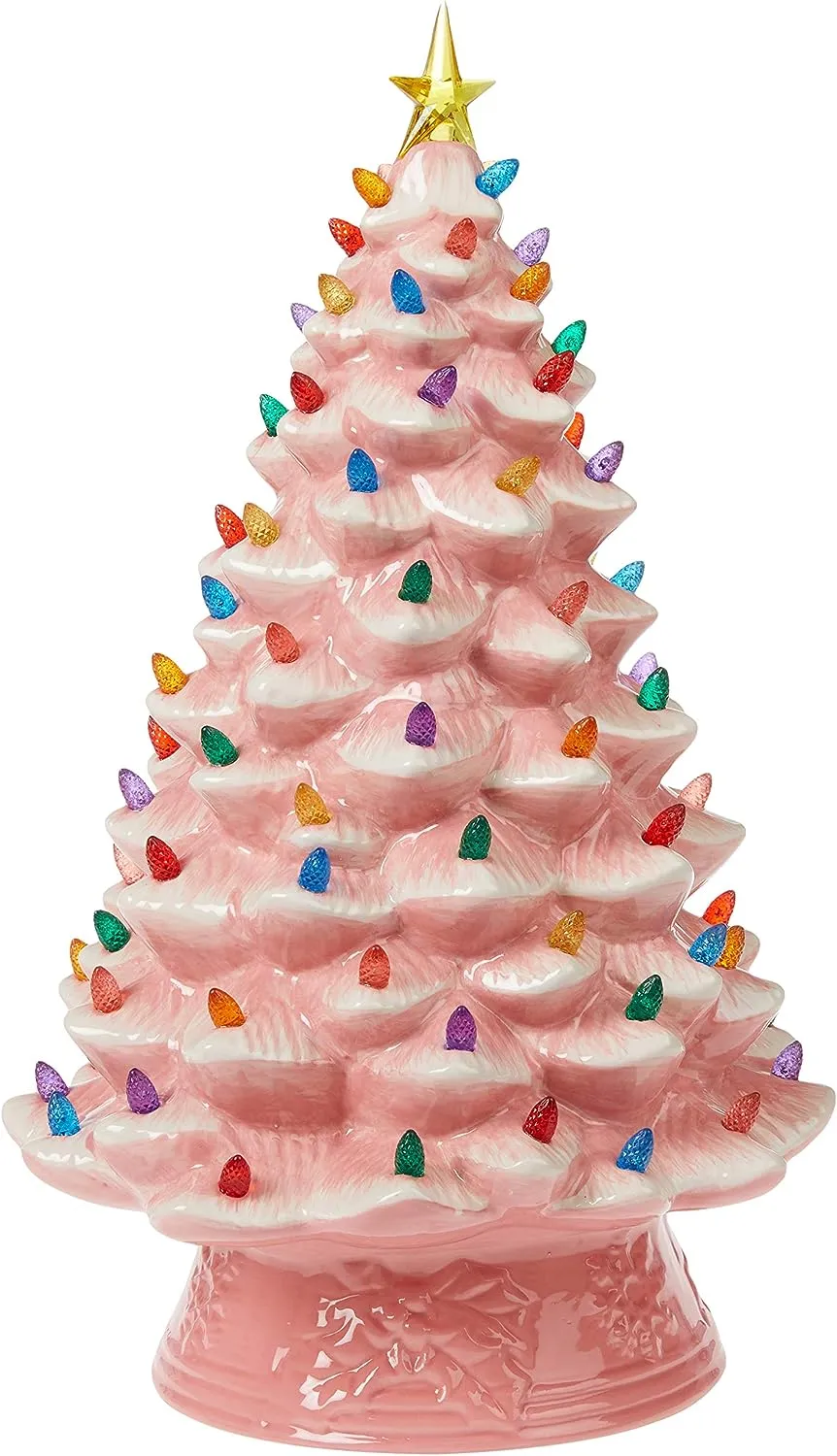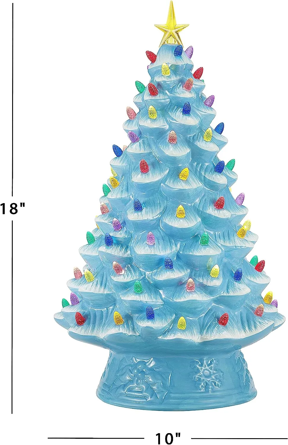 FEATURES LED LIGHTS: LED lights radiate through the multi-colored faceted bulbs, and a bright yellow star illuminates the top of the Christmas tree with a shiny hand-painted finish