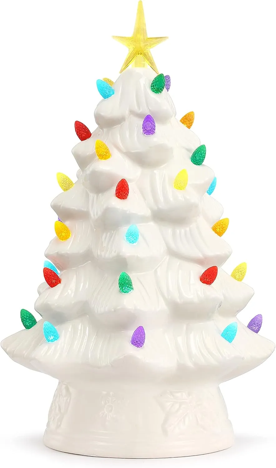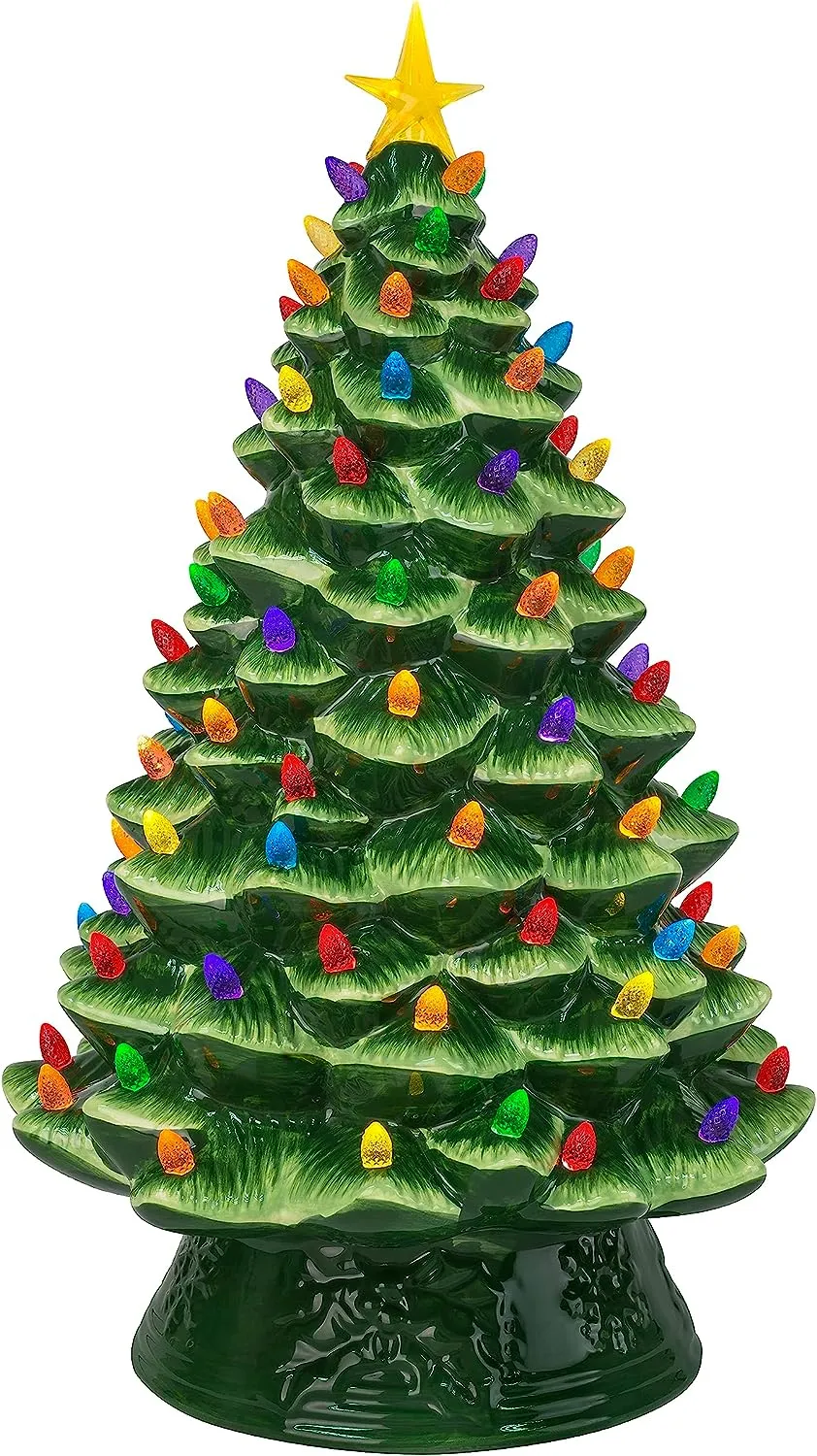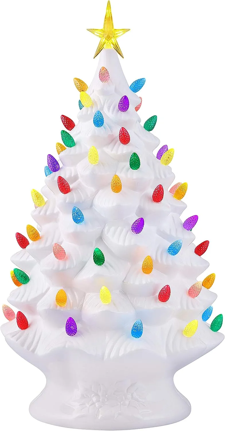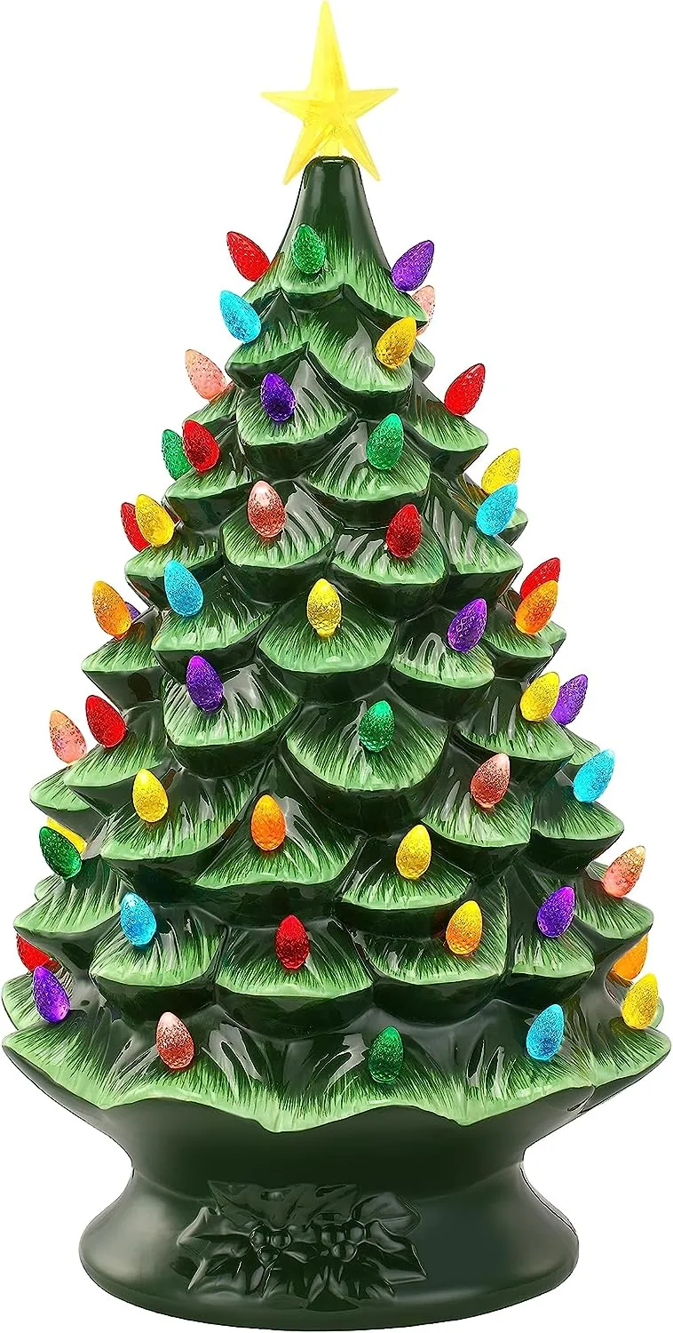 NOSTALGIC CHRISTMAS TREE: Bring back memories from Christmas' past with this vintage-inspired ceramic nostalgic Christmas tree by Mr. Christmas; this classic Christmas decoration has been a focal point of households for generations, now available with modern technology