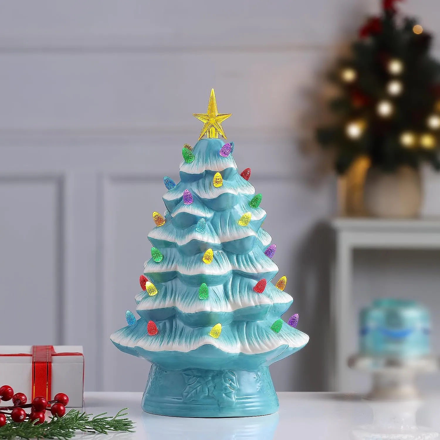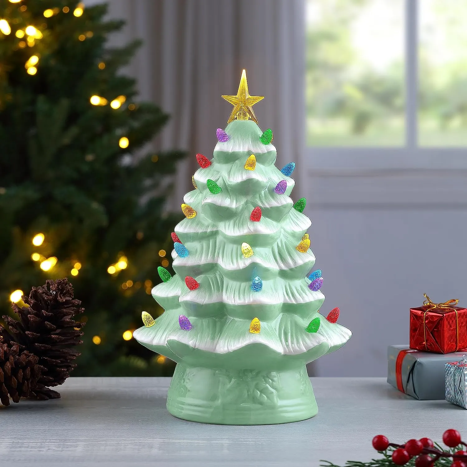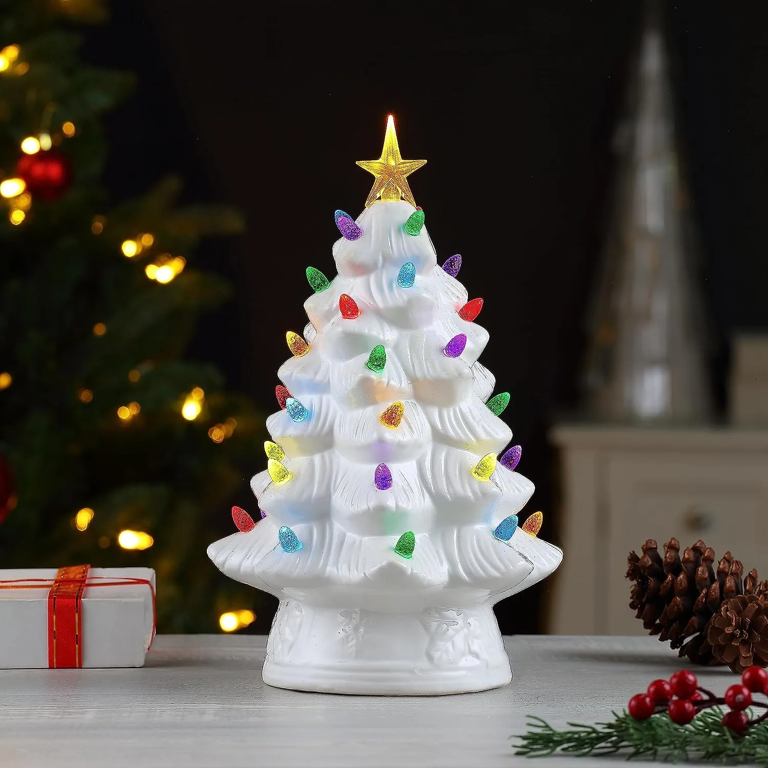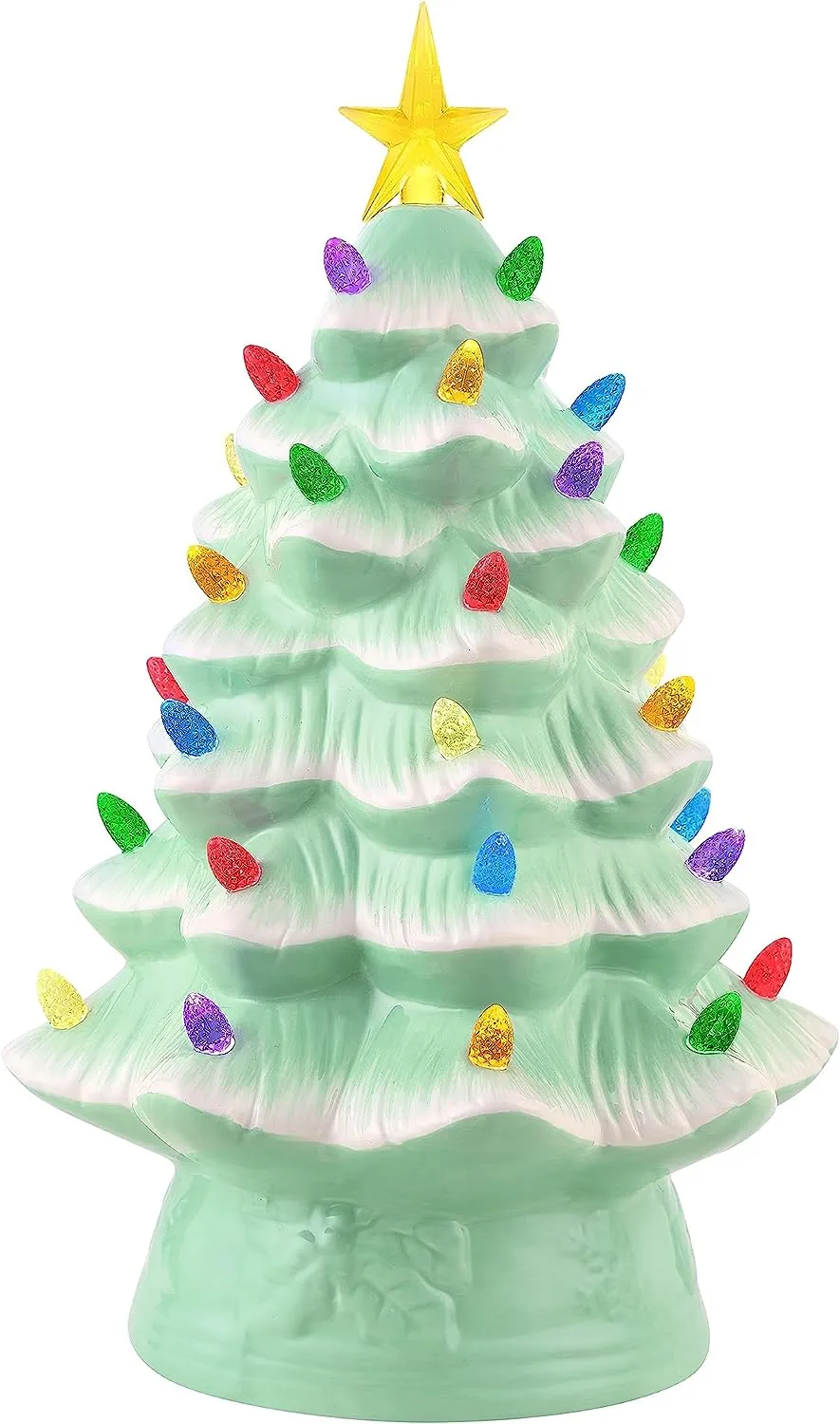 NOSTALGIC CHRISTMAS TREE: Bring back memories from Christmas' past with this vintage-inspired ceramic nostalgic Christmas tree by Mr. Christmas; this classic Christmas decoration has been a focal point of households for generations, now available with modern technology