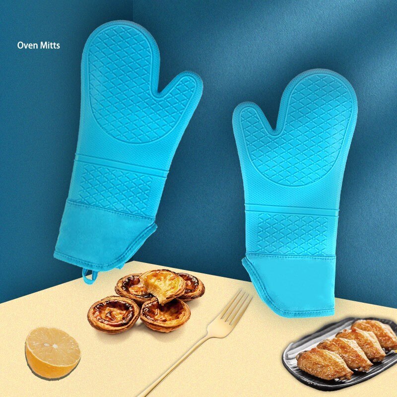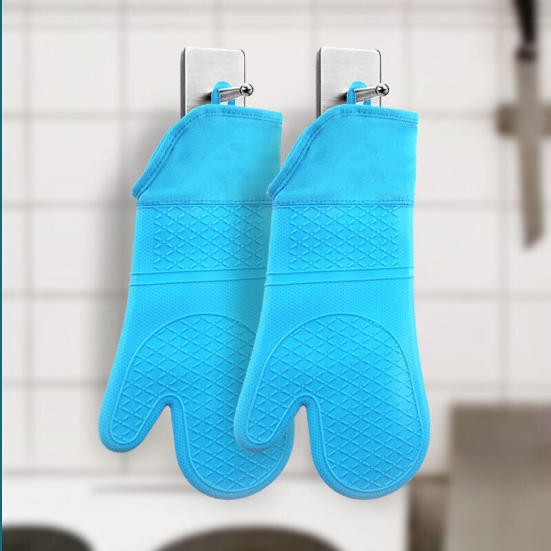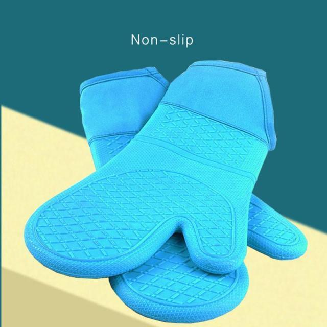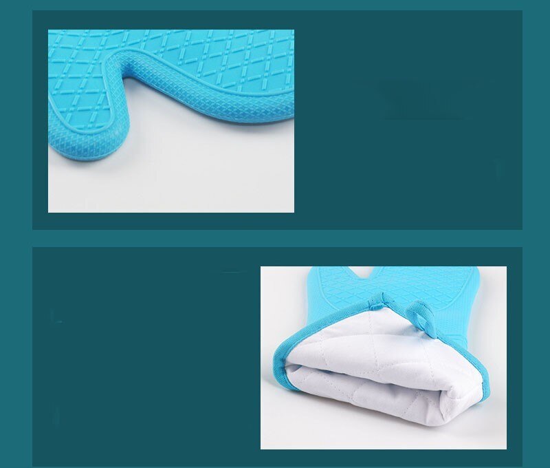 New Cotton Thickened Double-layer Food Grade Lattice Silica Gel Gloves Microwave Oven Insulated Kitchen