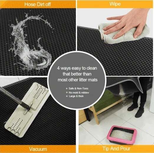 Enjoy a house without odor:our carpet is anti-odor and BPA free! Just shake it or vacuum up excess litter to clean it. No more smelly litter!