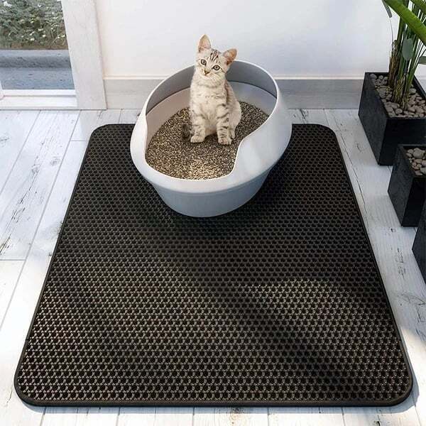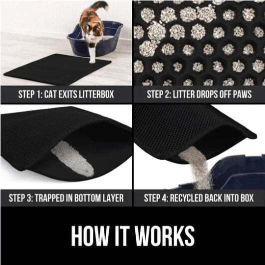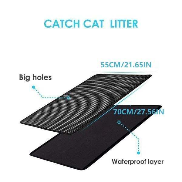 Non-slip:this mat stays where you put it! It retains the litter and thanks to its adhesive side does not move a bit when your cat crosses it.