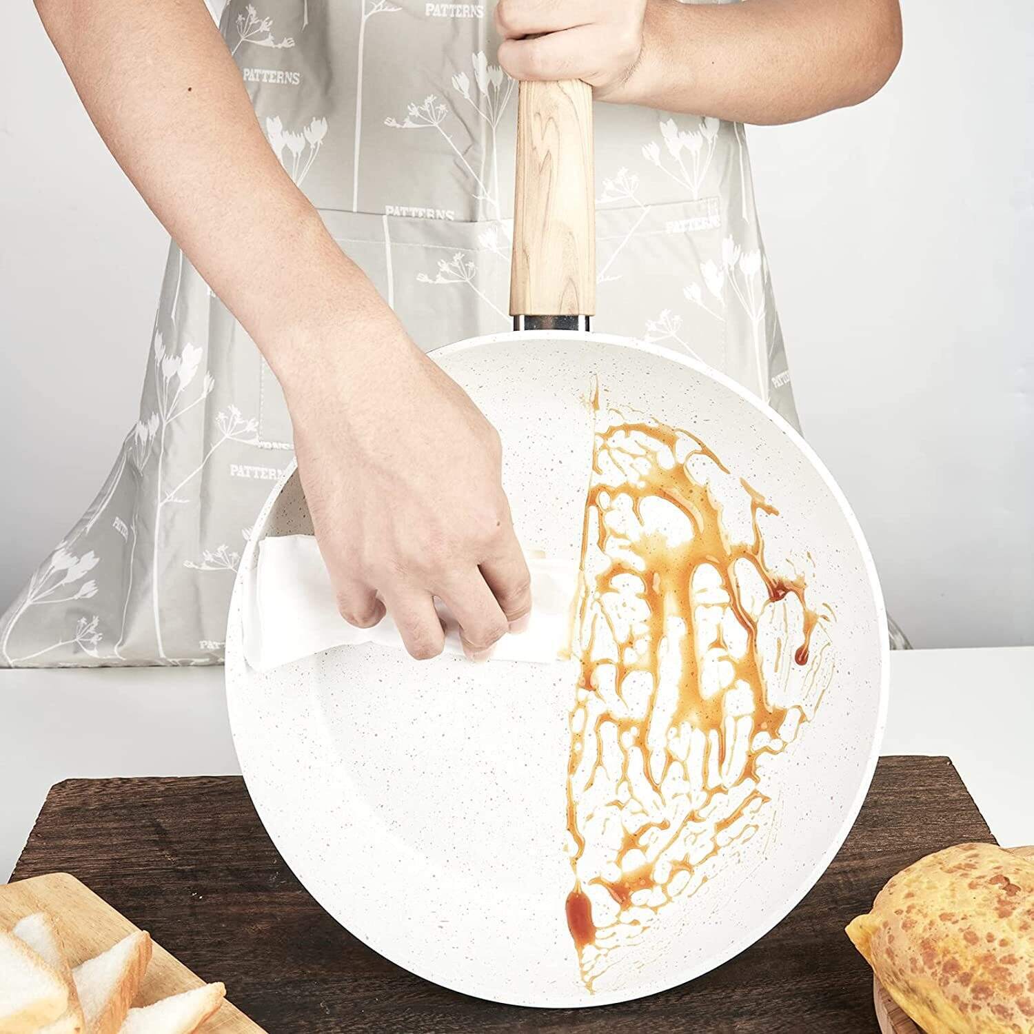 Easy To Clean ¨C Rivetless interior to prevent snags and food buildup. Just wipe it with a paper towel or rinse it with water, The pot body is also suitable for dishwashers (recommended without handle cleaning).