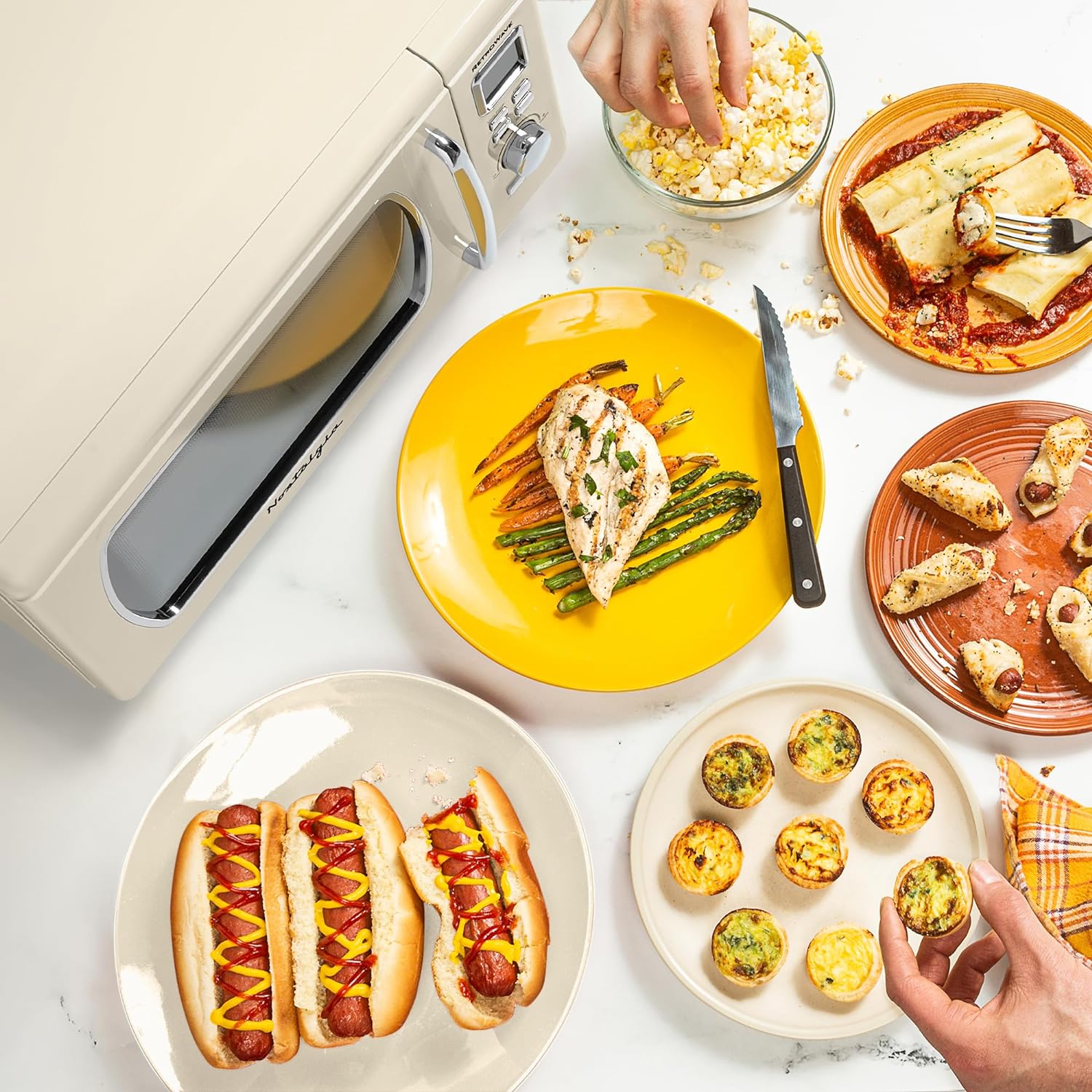 - Retro Accents : A sleek chrome door handle, control panel and accents add fun and flair to this unique retro-styled appliance